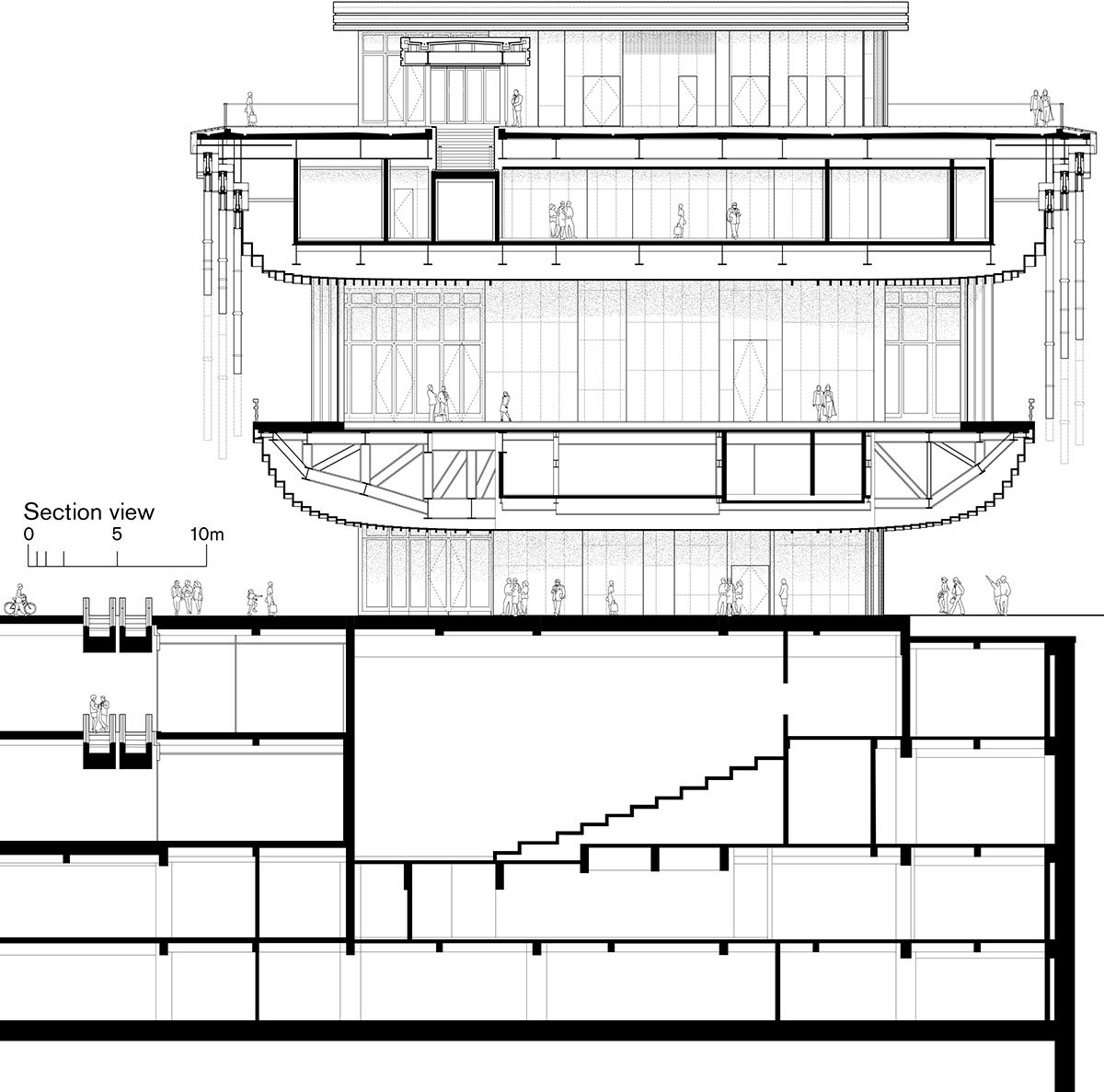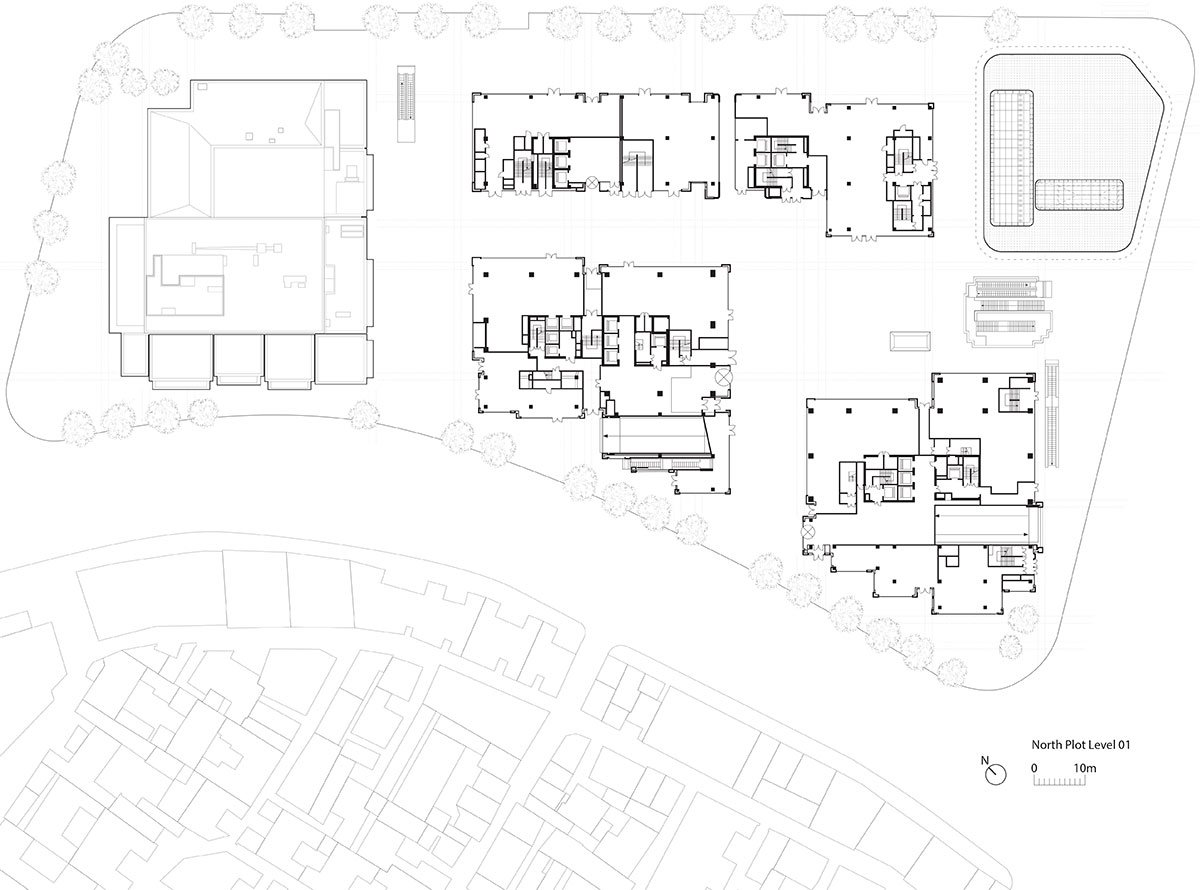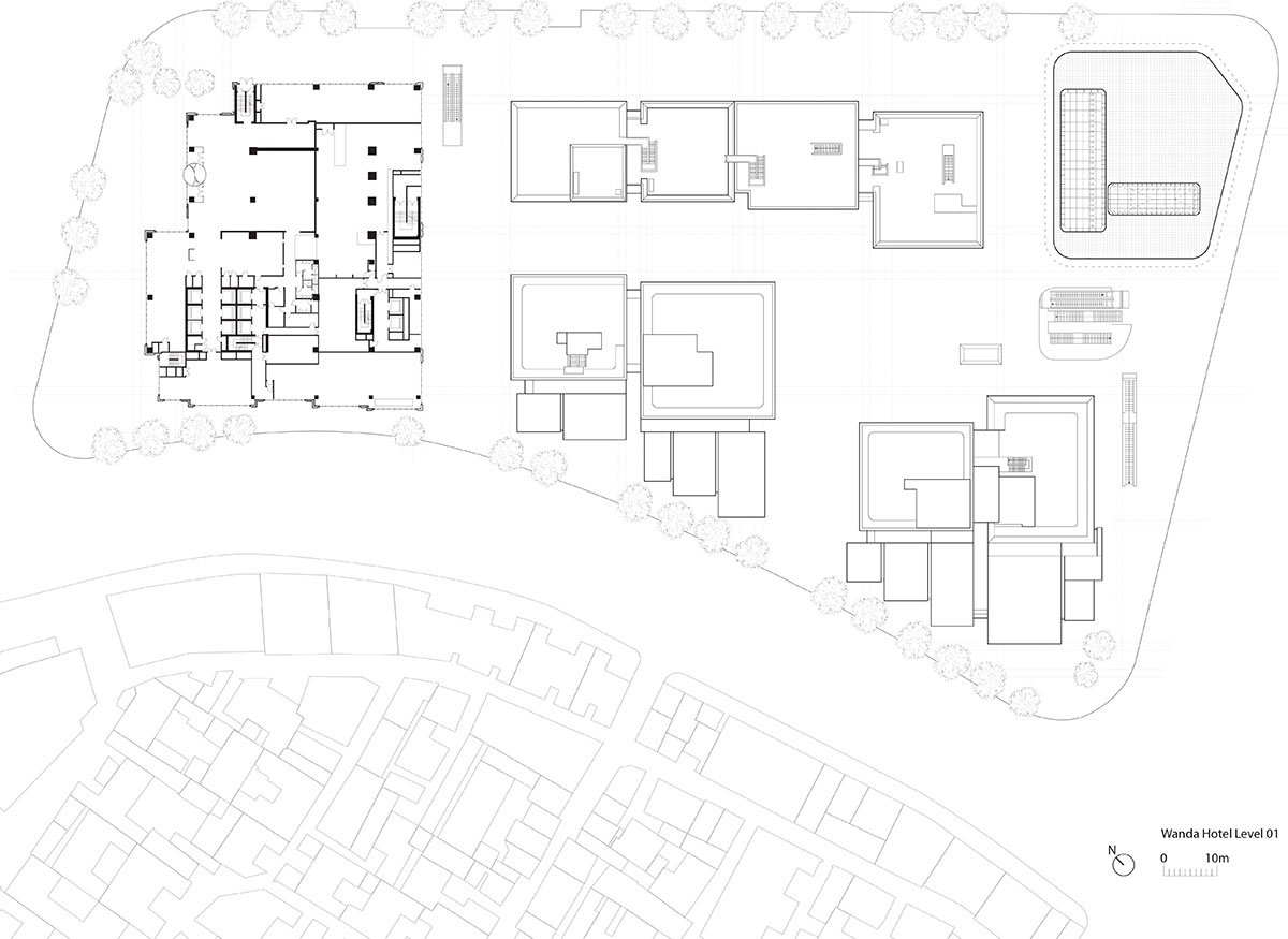 Inspired by this urban context, two 180-metre landmark towers are placed in the south of the site, while the buildings facing the waterfront are staggered in height and relate in scale and rhythm to the grand nineteenth-century landmarks along the Bund. At the heart of the scheme is a flexible arts and cultural centre, home to the Fosun Foundation, which combines exhibition and events halls with a performance venue, inspired by the open stages of traditional Chinese theatres.