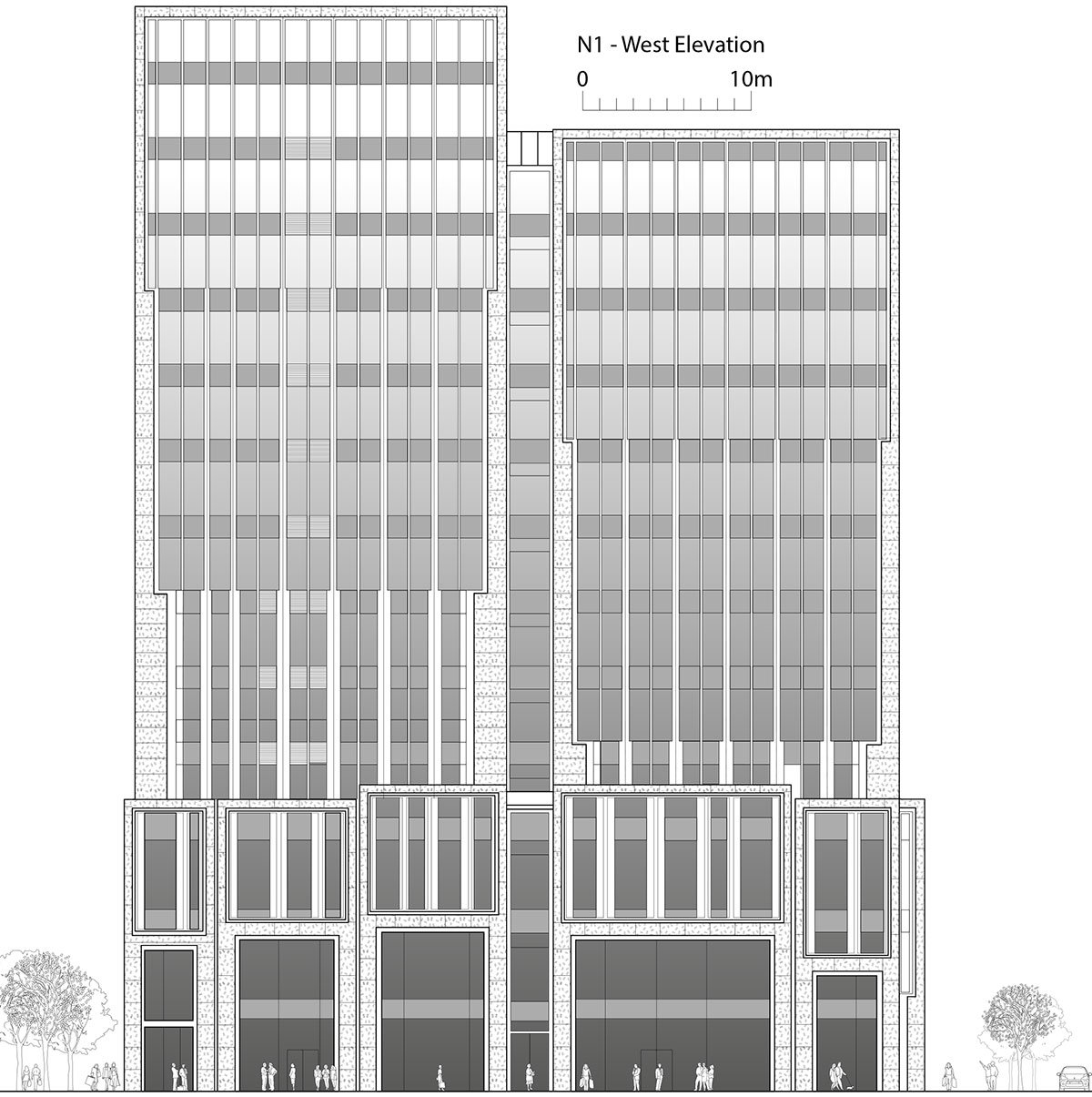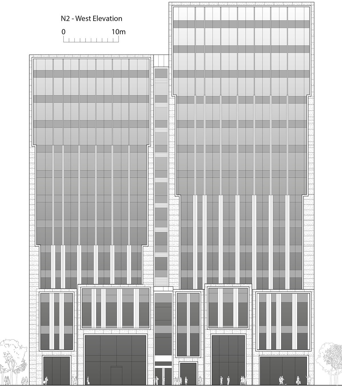 The 420,000-square-metre development of eight buildings combines premium offices with a boutique hotel, a cultural centre and a wide variety of luxury retail spaces, all arranged around a landscaped public plaza. The retail spaces are vertically layered with boutiques, concept stores for international brands, a luxury shopping mall and restaurants. A palette of crafted stone and bronze details gives the buildings a jewel-like quality. The edges of each volume are made of richly textured, hand-crafted granite and become slimmer as they rise, giving the impression of solidity at the base and transparency at the top.