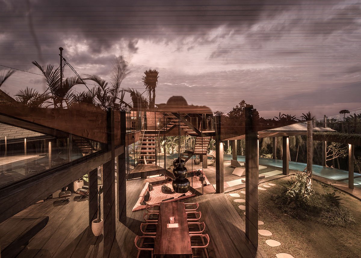 The material palette is dominated by the appearance and use of reclaimed wood of different kinds. Intricately textured walls through different patterns, sculptures, artwork and plants create an artistic environment. The oft-like character makes a lively, scenic built and curated landscape in the context of tropical modernism.
