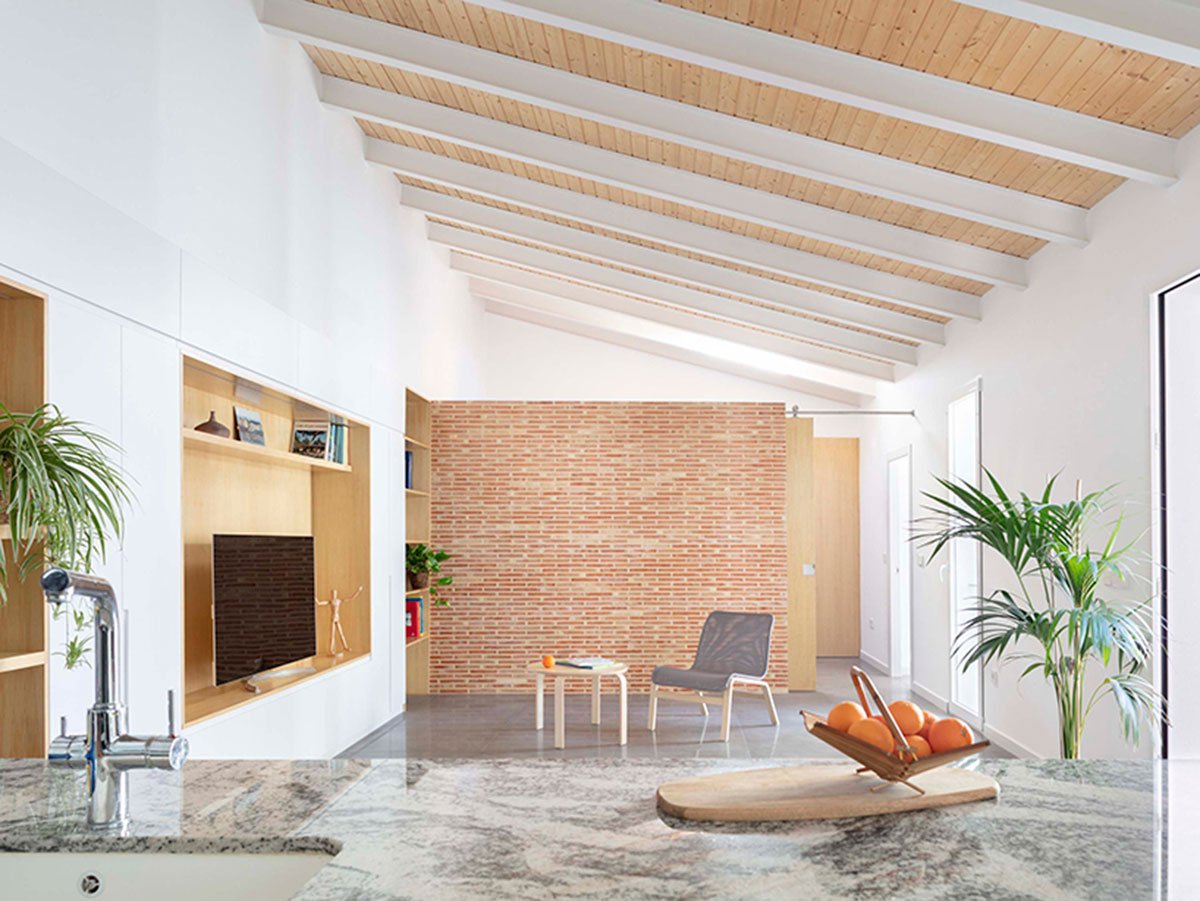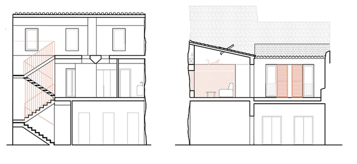 This traditional patio house had been modified through the years and each generation had been adding fragments to this former house. As a result the Mediterranean patio house couldn’t be recognized anymore. The previous succession of enclosed rooms becomes a fluid and changing space, thus allowing cross ventilation and bringing light to the core of the house. The rest of the space is organized by light. All of the house’s rooms are moved to the first and second floor so that the ground floor can be entirely occupied by the family business. The connection with the exterior is emphasized by a series of openings on the walls that frame the views towards the surrounding landscape.