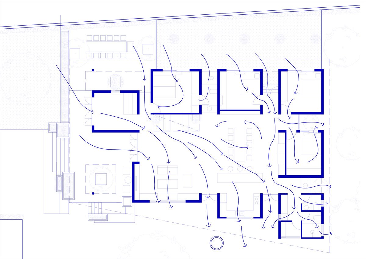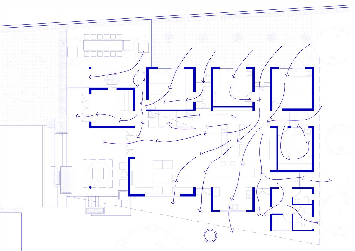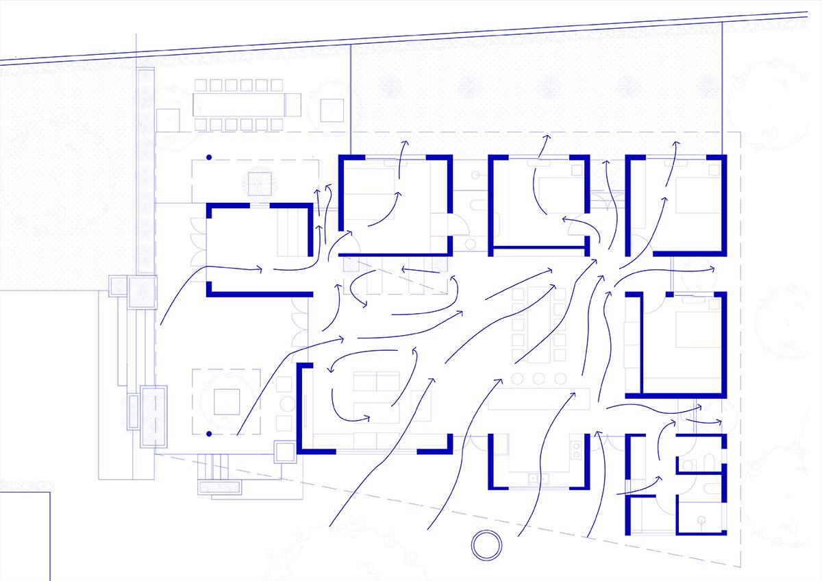 2- In addition to prioritizing heat protection solutions, ventilation considerations are also crucial when researching space layout solutions for the house. It is essential to ensure that fresh air circulates throughout all areas of the house effectively. To address ventilation concerns comprehensively, attention must be given to both ground-level and cross-sectional ventilation strategies: