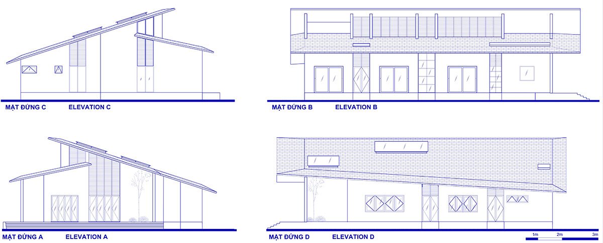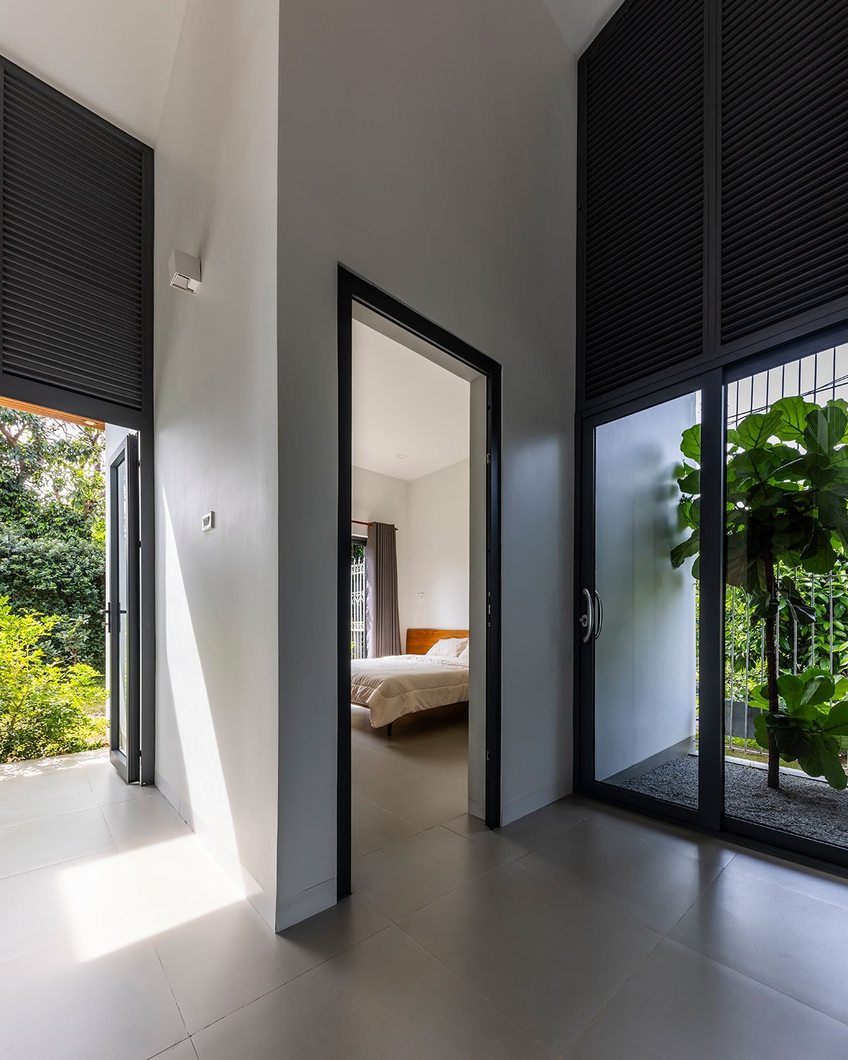 In organizing functional spaces, a block separation approach was employed, where functional blocks are separated yet connected by wind corridors. This layout ensures that light and air can permeate the interior space from all four directions, maintaining a consistently cool and well-lit indoor environment, helping the house remain naturally illuminated and ventilated, promoting a comfortable and refreshing atmosphere for its occupants.