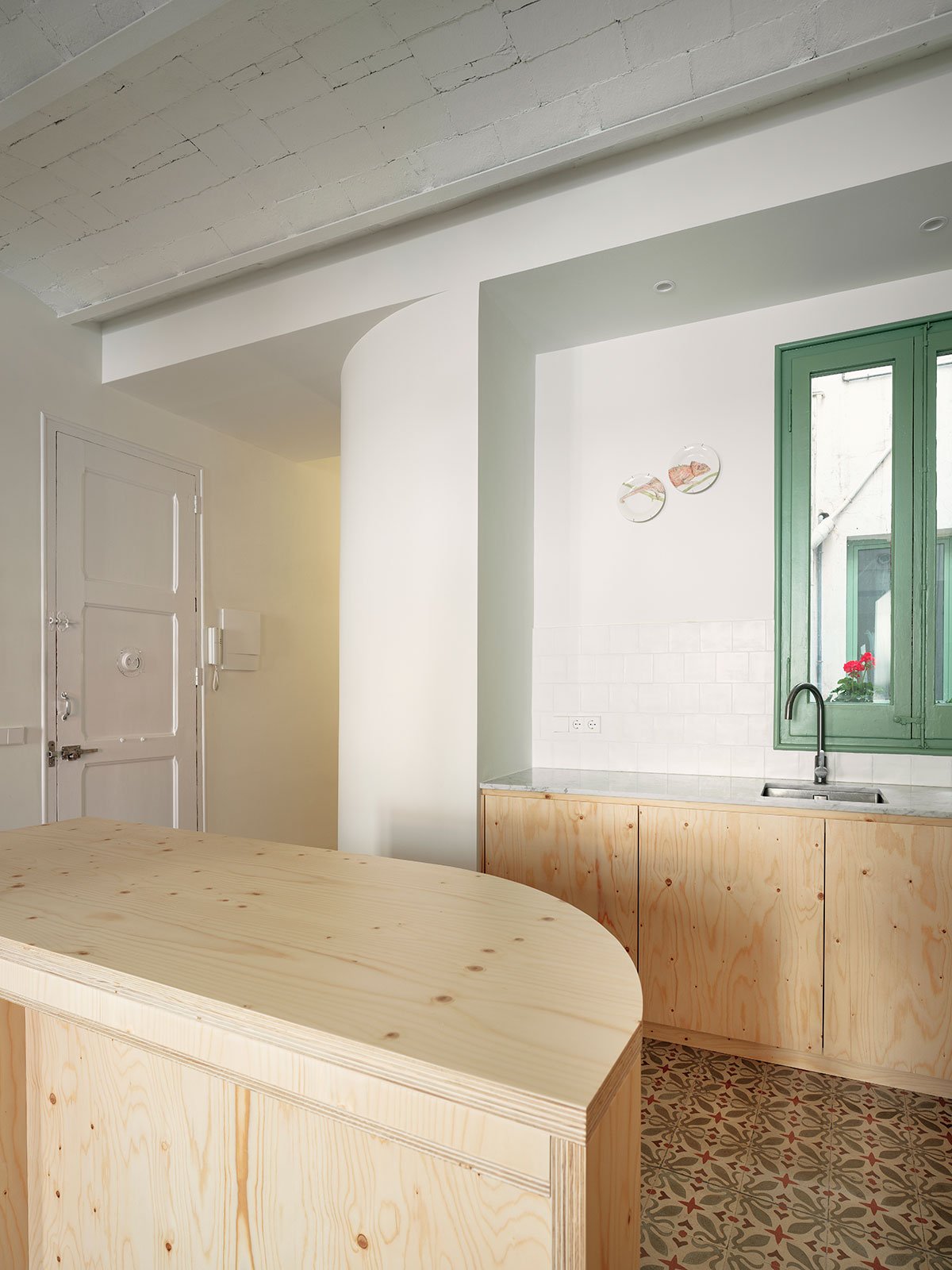 [Text as submitted by architect] The intervention consists of the interior refurbishment of an old flat located in the Poblenou district of Barcelona. It is a passing apartment, with one façade on the street and the other on the inside of the block. It also has two interior courtyards.
