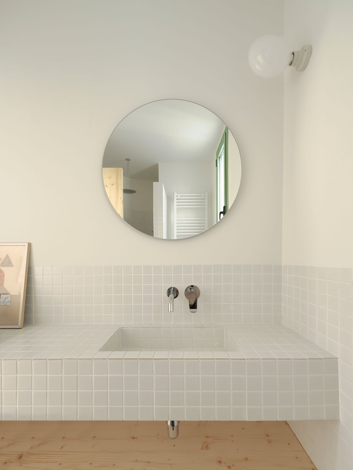 In relation to materiality, it is chosen to value the original elements. The floor is restored and the ceramic vaults are painted and left as they were. This decision proposes a formal and colorful game, leaving a track record of time.