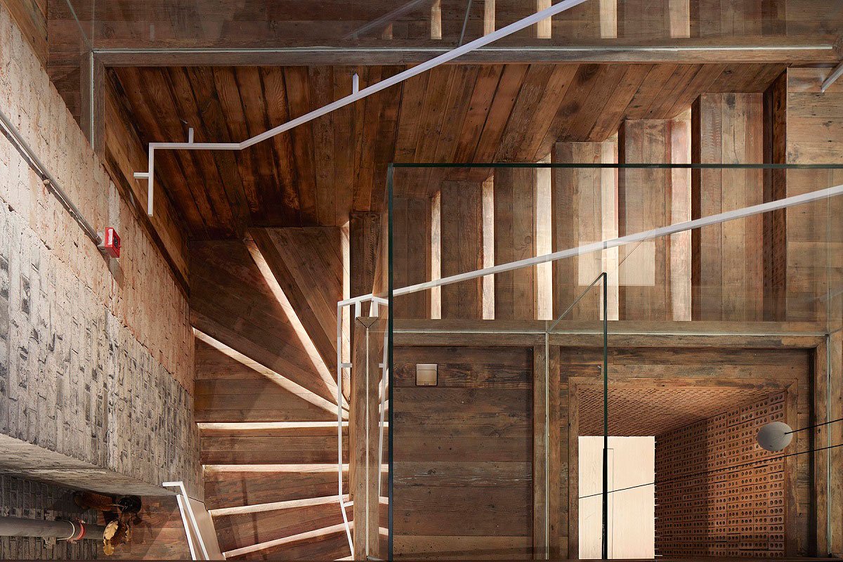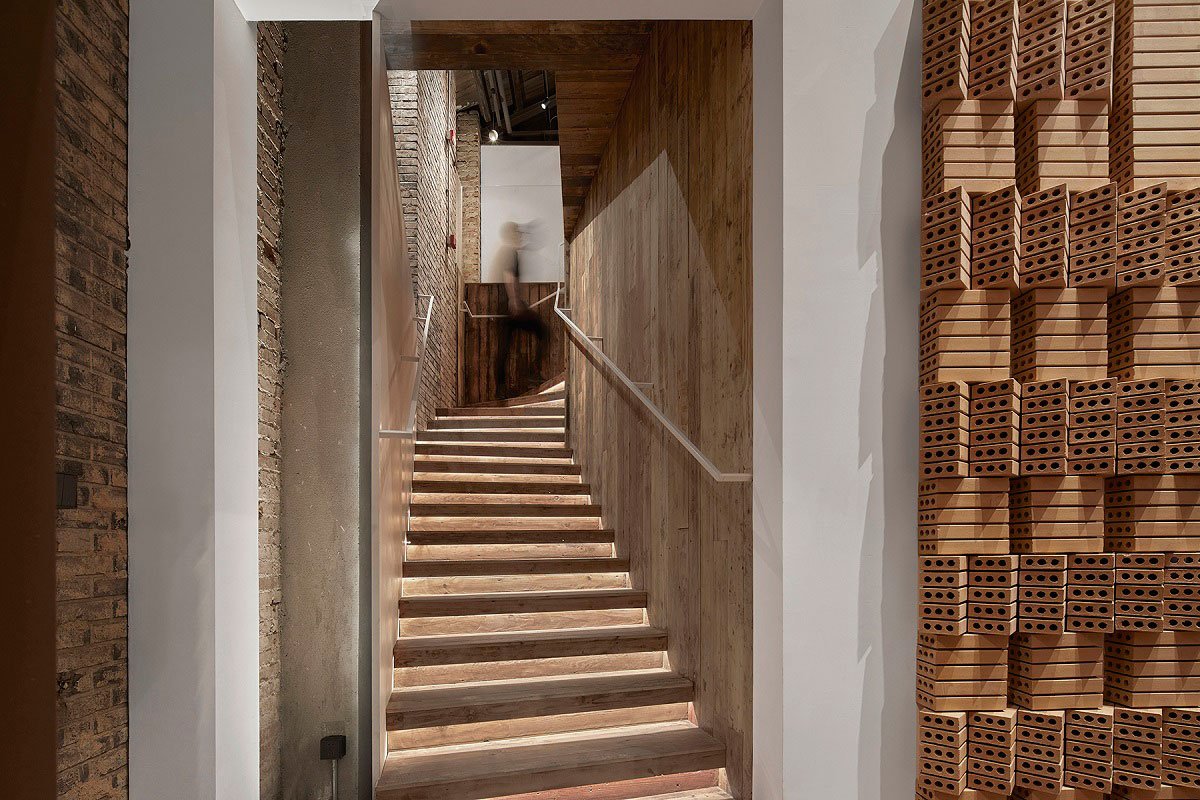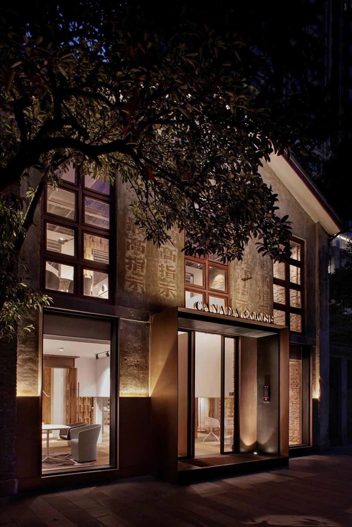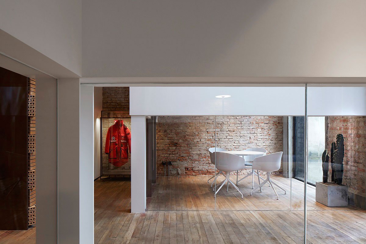 [Text as submitted by architect] SHANGHAI — Extreme weather outerwear brand Canada Goose asked local studio RooMoo to turn a pair of historical buildings in a renovated office park into its first Chinese headquarters. The designers preserved the tones and textures of the original architecture whilst reinvigorating it with minimalist modern elements. ‘The intention is to respect the old architectural spirit,’ says the team, ‘while at the same time give it a new life.’