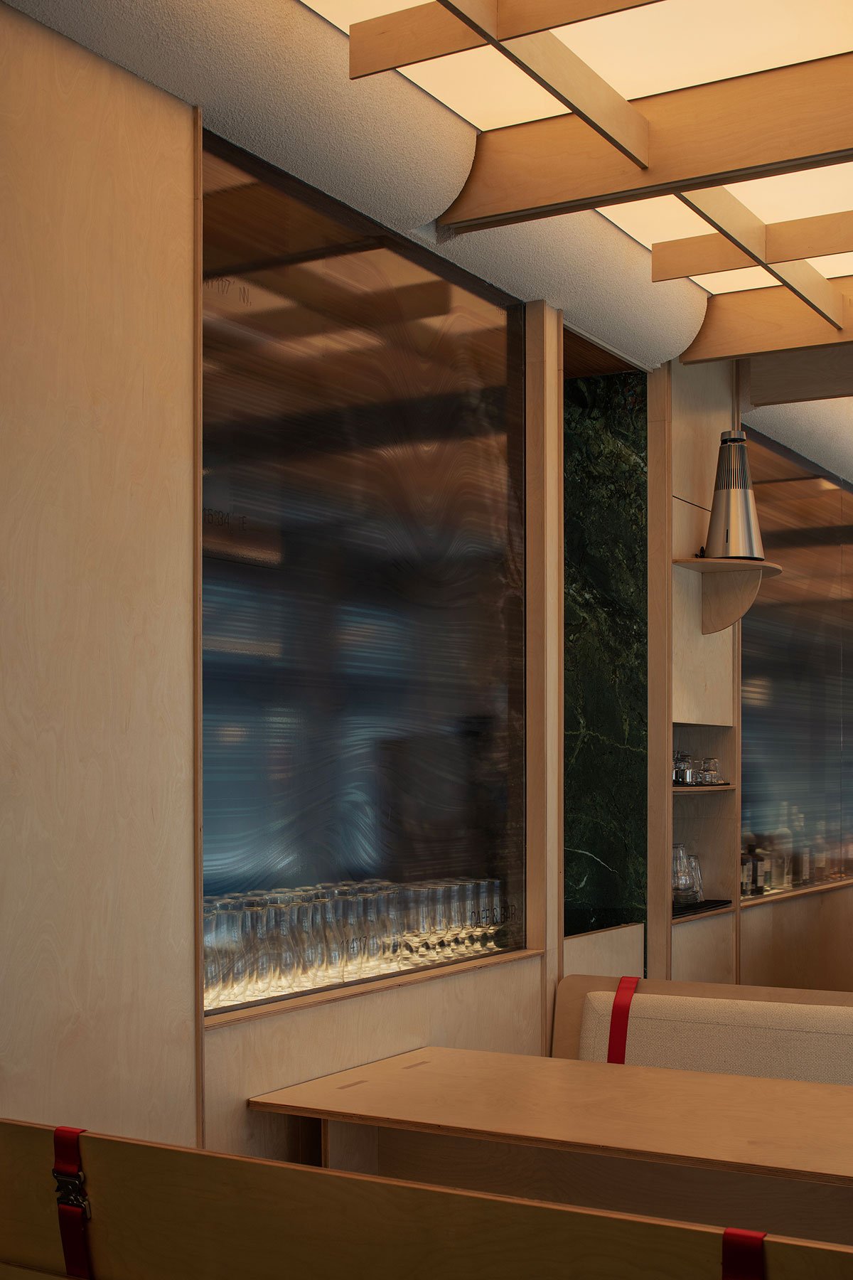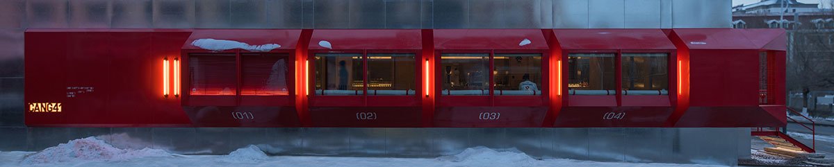 Excerpt: Cang 41 by Jumgo Creative is an interior design project that features a visually striking storefront in the snowy context. The “inside” and “outside” relationship is established through an “indifferent” door, revealing a warm scene contrasted with a cold snowy world. The spatial planning effectively divides daylight and darkness, forming a daytime café and nighttime bar, allowing visitors to experience a gradual transition of spatial functions within the limited space.