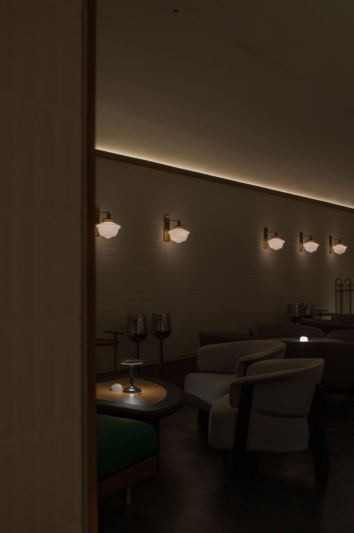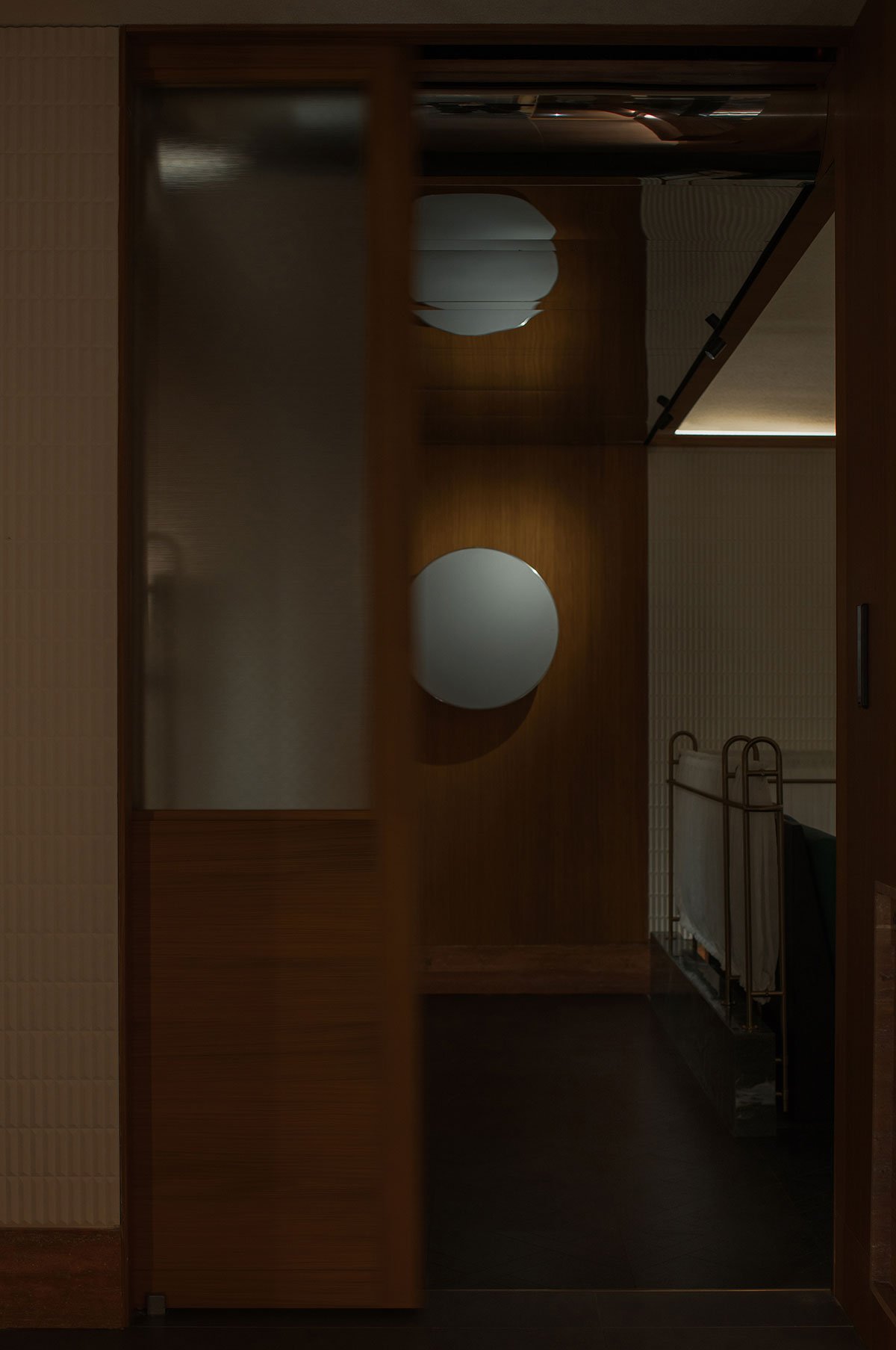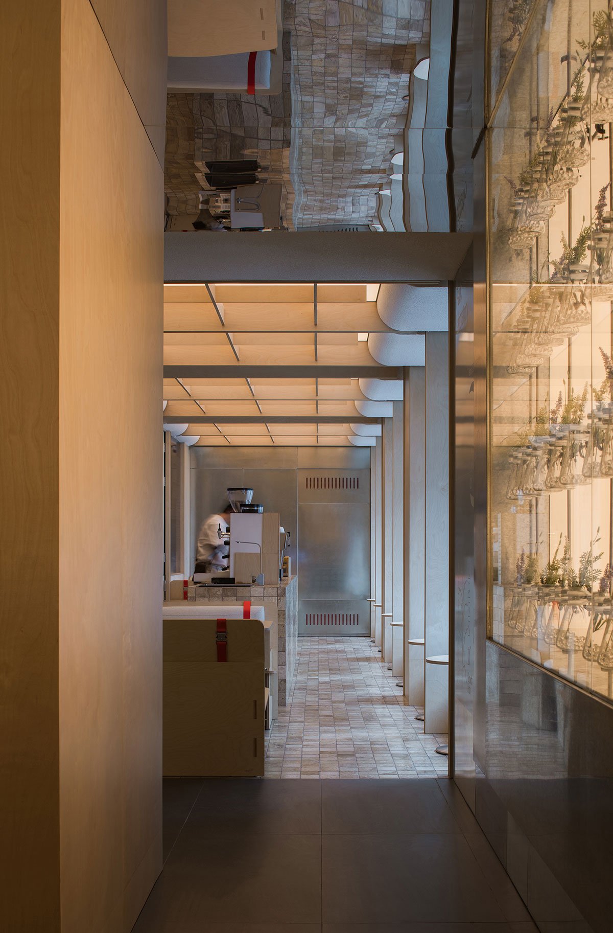 The spatial planning clearly separates the areas of darkness and lightness, catering to the form of a daytime café and a nighttime bar. Visitors can experience the gradual transition of spatial functions within the limited space.