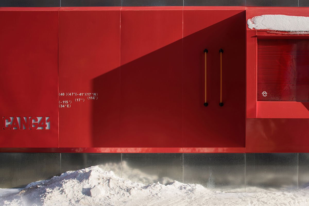 The first step in attracting consumers is to have an appealing storefront. In addition to that, an excellent brand needs to integrate with the local environment. Considering the prime operating season of Cang 41 undoubtedly is the snowy season, the designer comes up with the concept of a “sanctuary in snow,” drawing inspiration from “polar research stations.” With this concept, the storefront of Cang 41 has been designed to be the most visually striking in a snowy world.