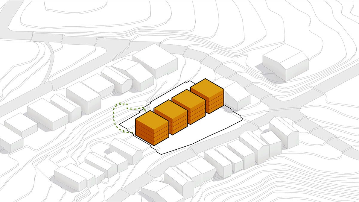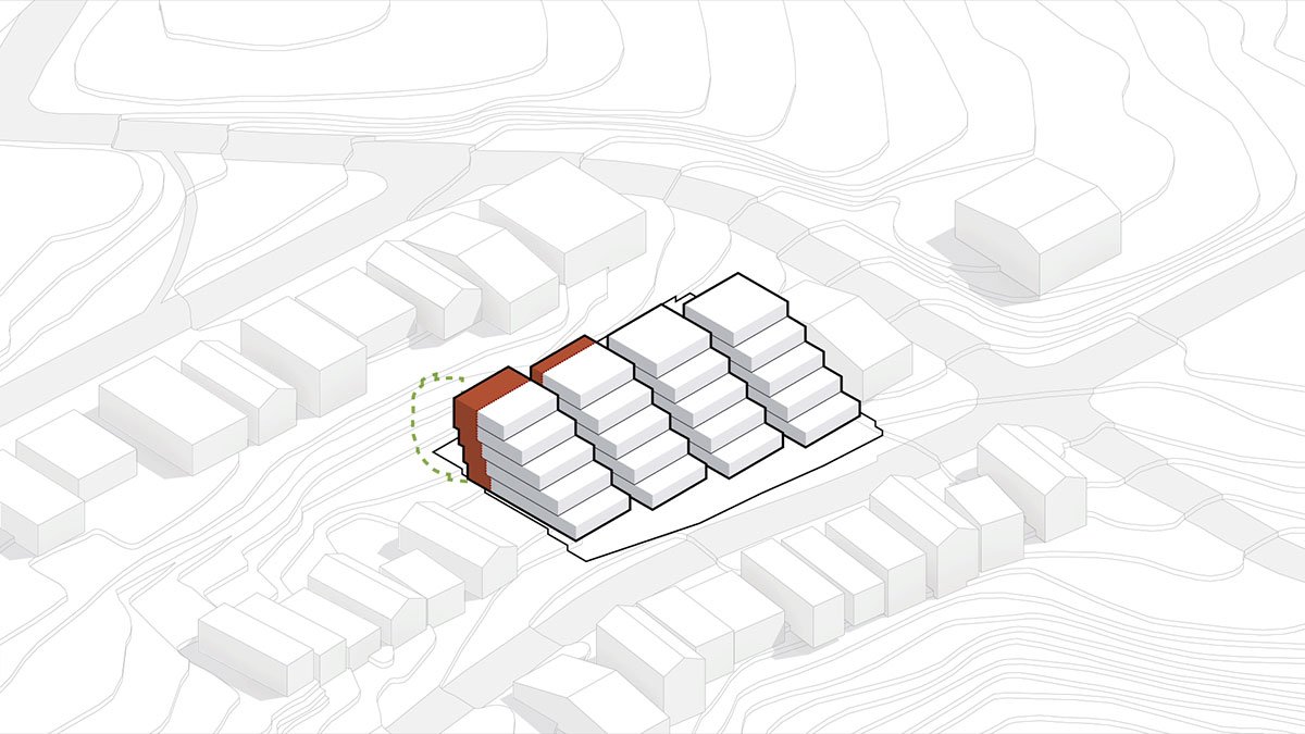 [Text as submitted by architect] Located in a bucolic and predominantly single-family residential neighborhood, Cap. 1 Três Figueiras is a development that proposes the concept of suspended houses. The terrain in question, on a slope, features one of the fig trees that gives the Três Figueiras neighborhood its name. As a premise of the project, all units are oriented towards the front, ensuring east and west orientations, as well as views of the remarkable tree.