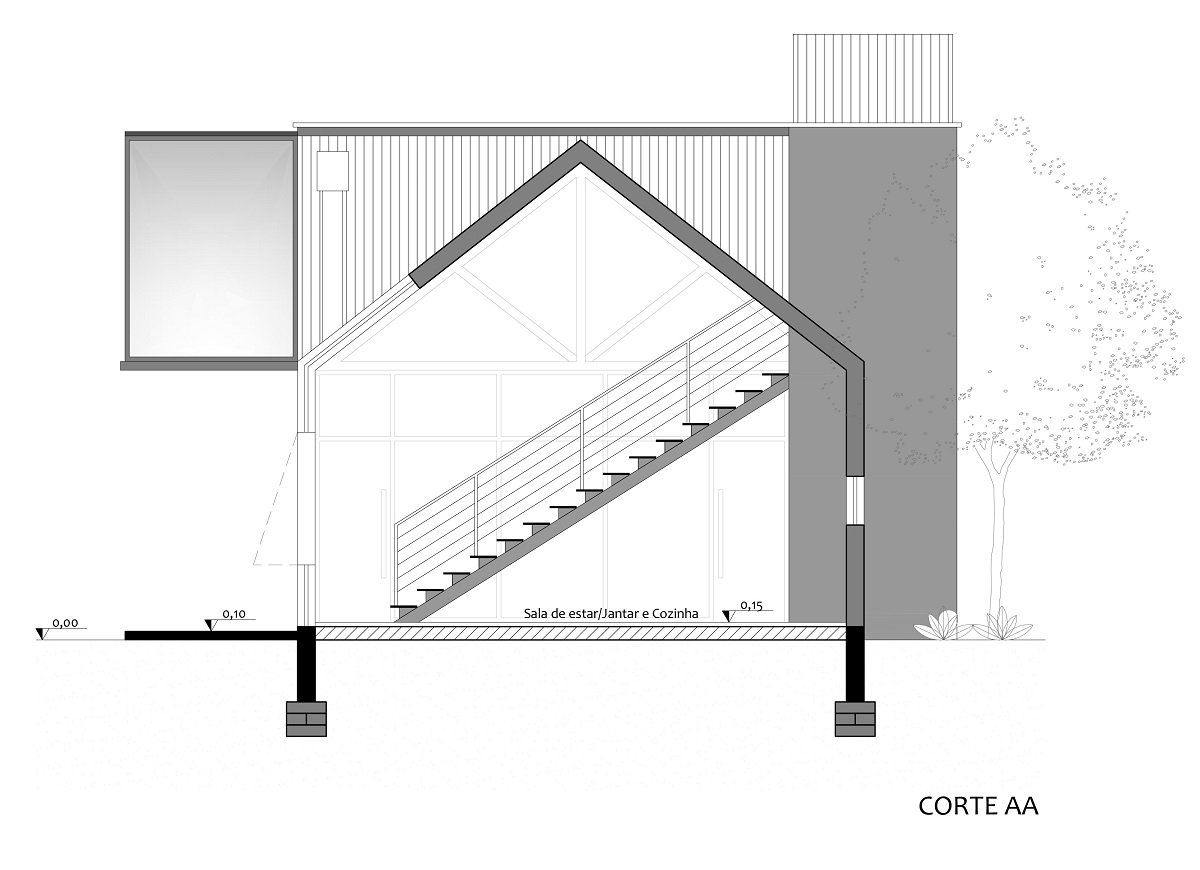 It took five months to complete the work, considering the structural stages, the masonry bathroom block and the steel frame. The cabin has a fireplace and air conditioning sized for both areas, allowing comfort in winter and summer. The openings were strategically designed for air circulation, thus, reducing energy expenditure with air conditioning. Lots of natural light during the day, and LED with 3000k color temperature for more coziness in the evenings.