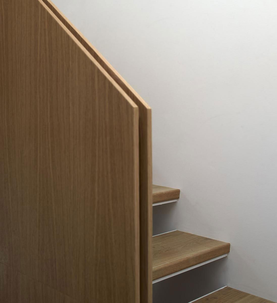 The night area is located on the second floor, it aims to create a pleasant route and to take advantage of the most favorable orientations for all the rooms. The house is perceived as a set of volumes where the white of the facade is mixed with the interior oak wood details, and with de Green of the vegetation. An apparently irregular approach but balanced in its decisions.