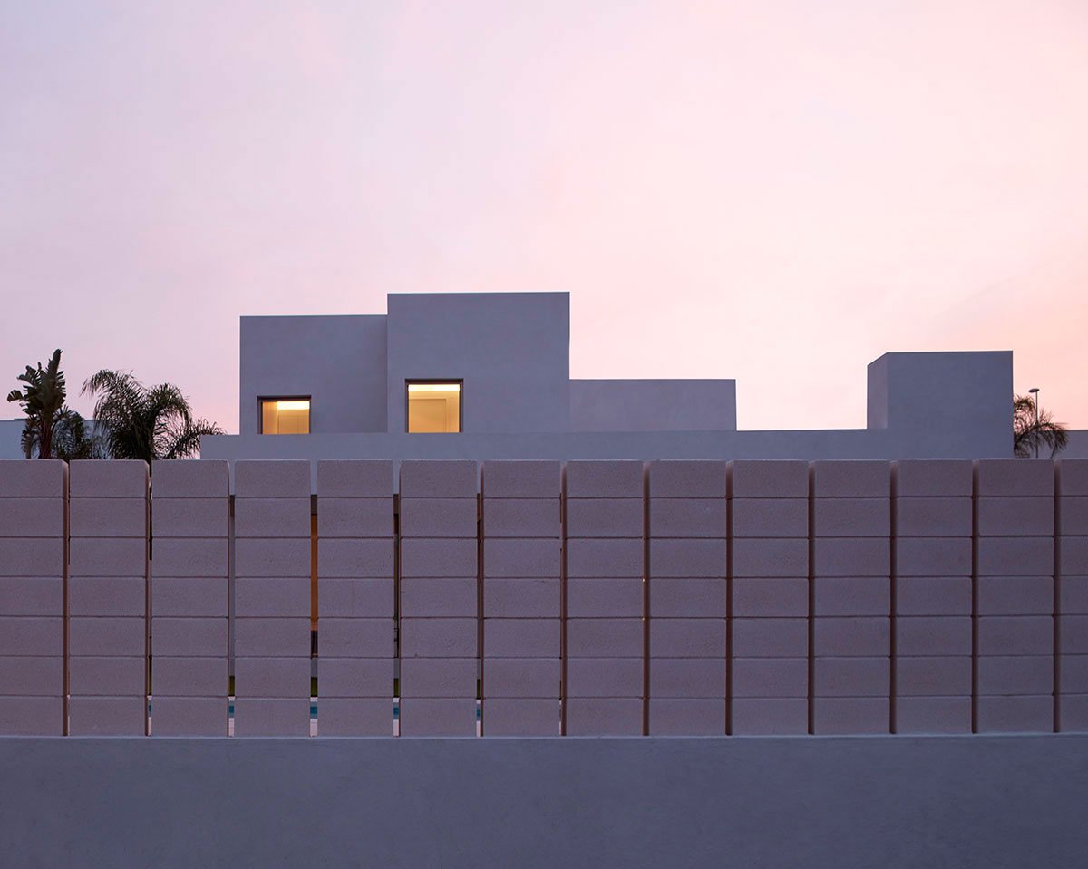 [Text as submitted by architect] The project starts with an urban singularity that allows locating the house attached to one of its boundaries. The implementation of the proposal already starts from the advantage of knowing the location of its neighbors and is positioned on its opposite side in order to achieve clearer views and more fluid ventilation. From the street, a barrier crowned with concrete blocks provides privacy to the interior and allows to visualize the traces of the white volume which shapes the house.