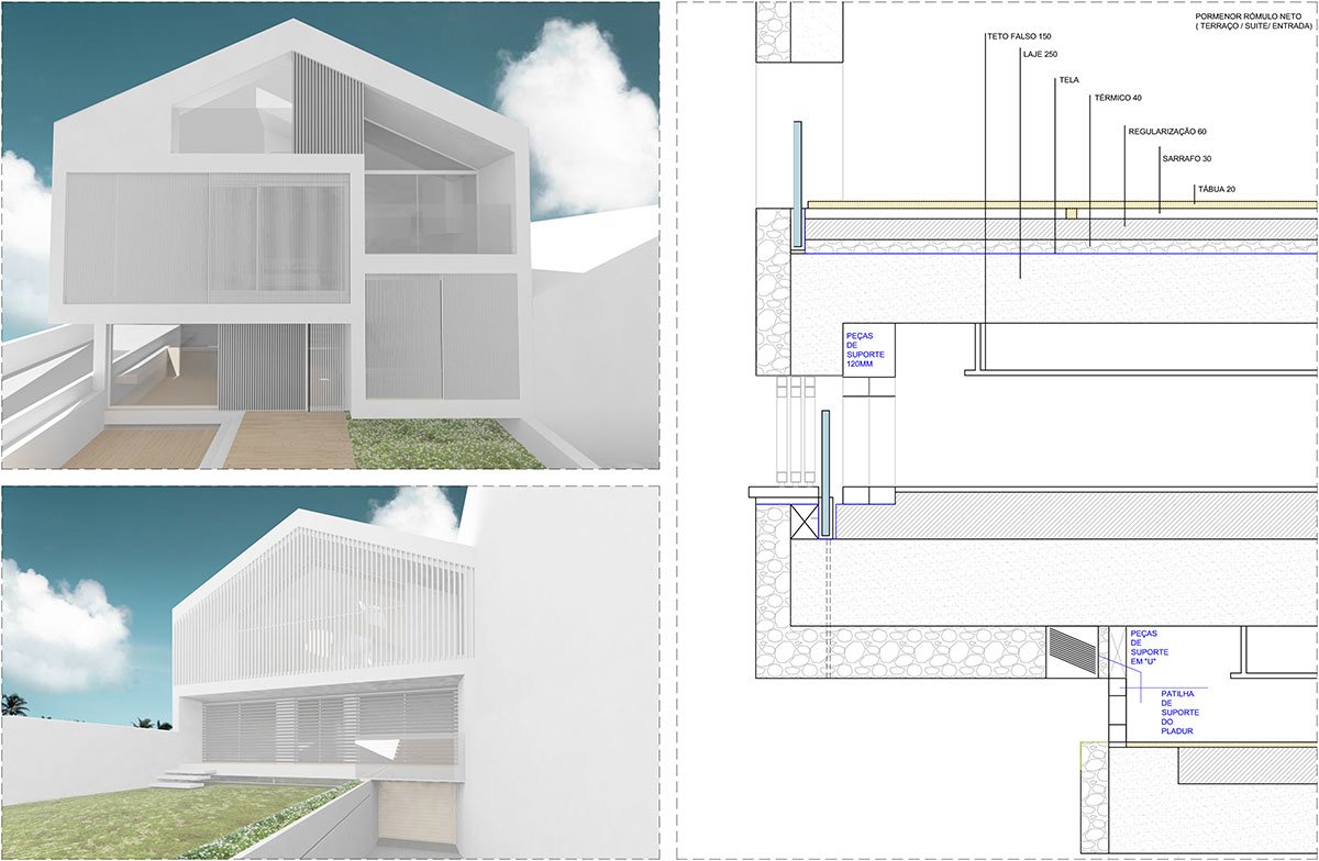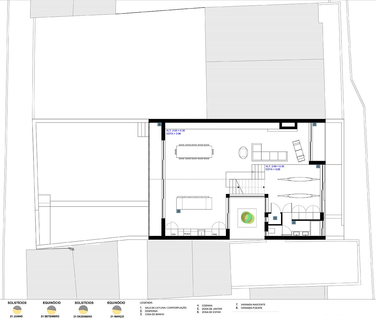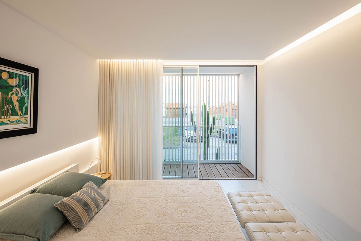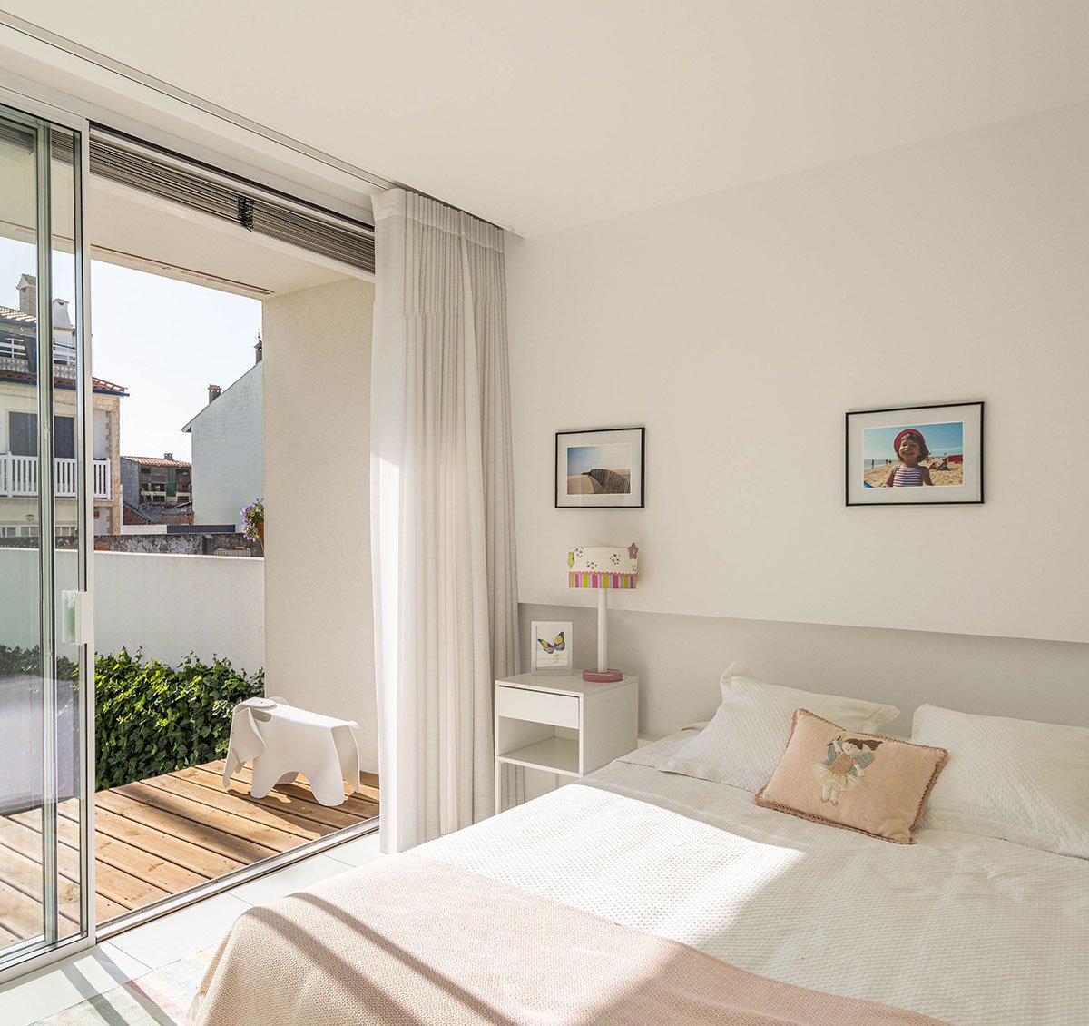 The social area was located on the upper floor, an area that was wide and with a very generous ceiling height, looking out over the estuary. Space to receive family and friends on festive days, articulated with the terrace on the roof, the lighthouse of the house, where the users can enjoy more.
