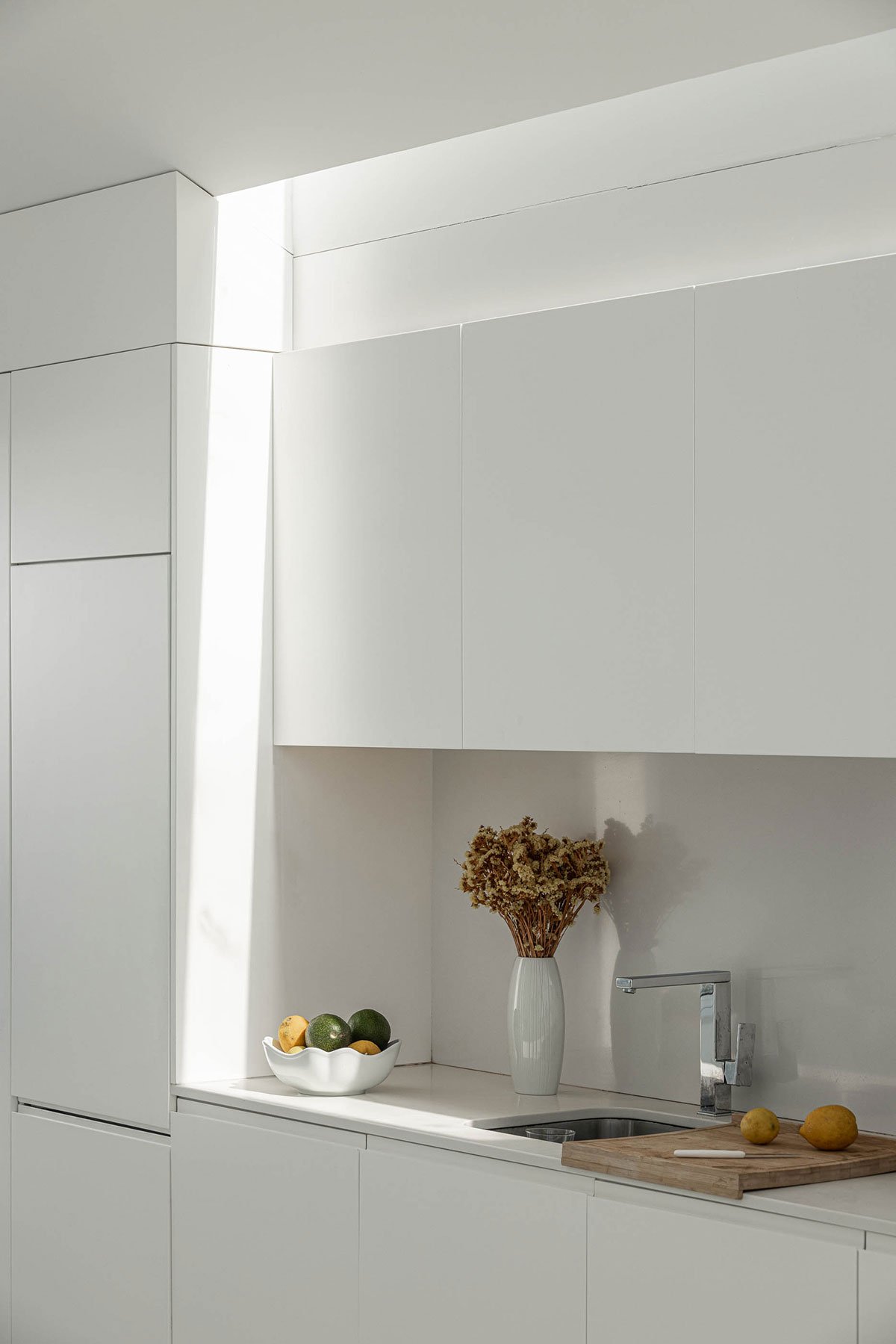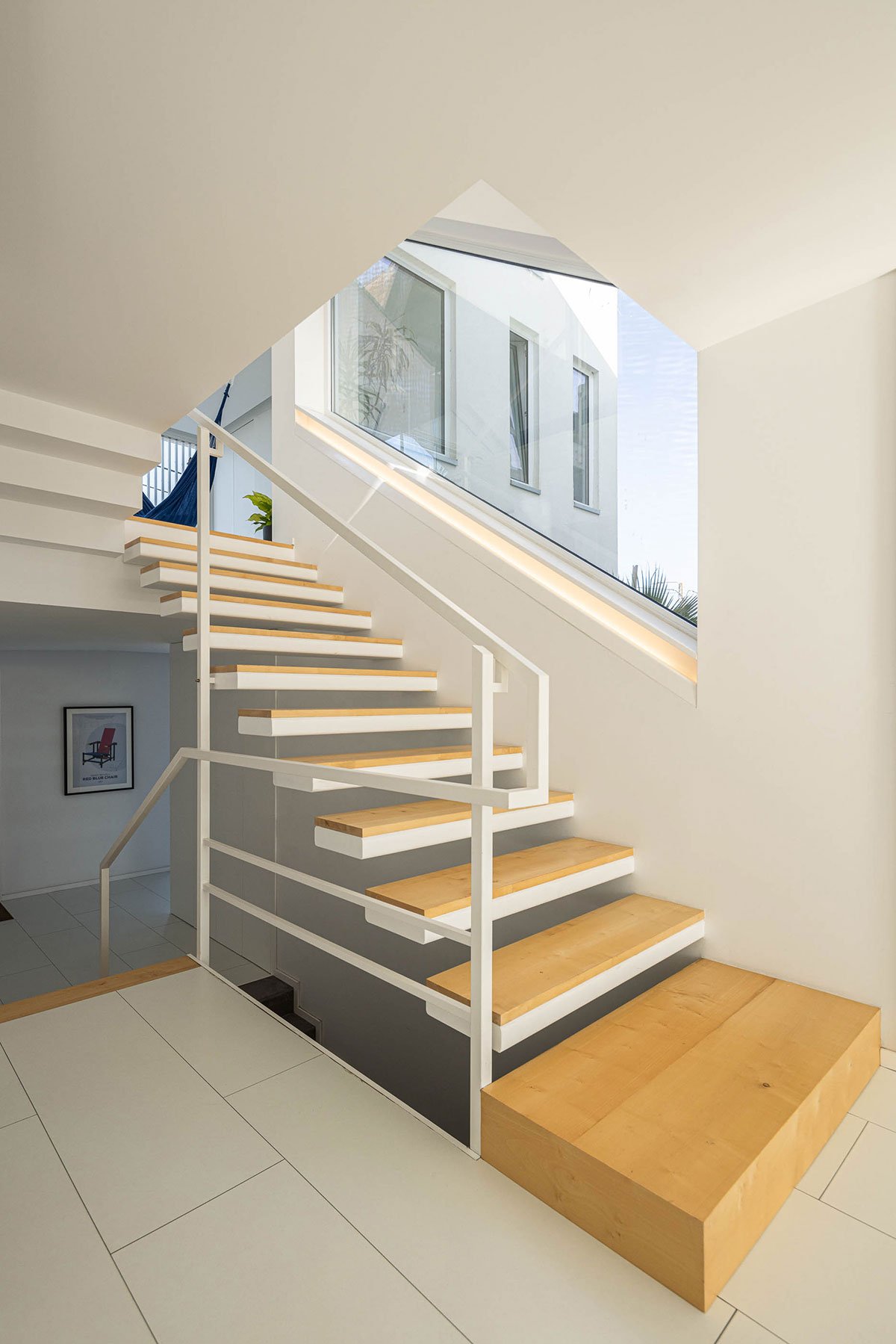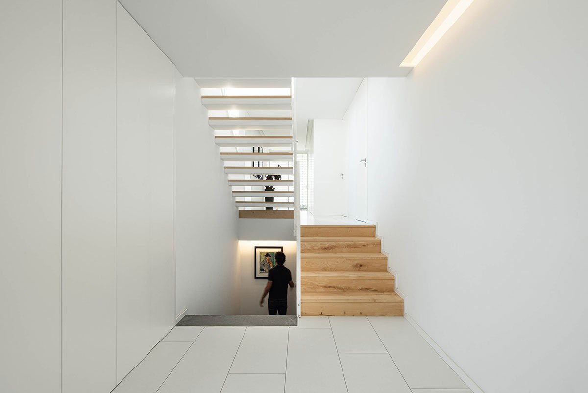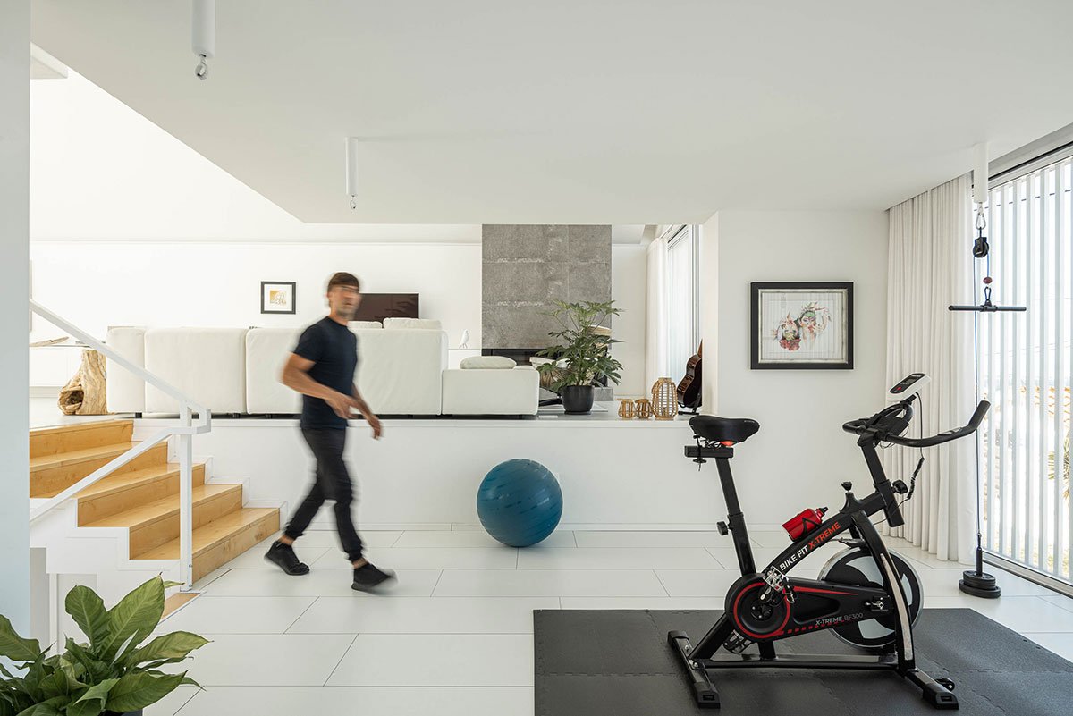 The materials chosen for the construction revolved around ceramics, wood, and aluminum. In the colors, white predominated as the primary element of the entire house, salting it in almost all its corners with baskets of white. It was essential to create an intimate relationship between the interior and the exterior. For this purpose, an interior patio was designed to create a bridge with the south facade of the house and achieve a natural light gambier for all its compartments. Half floors were created, so that the basement floor was not exposed to possible flooding due to the rise in the water table and that vertical dynamics existed between the floors.