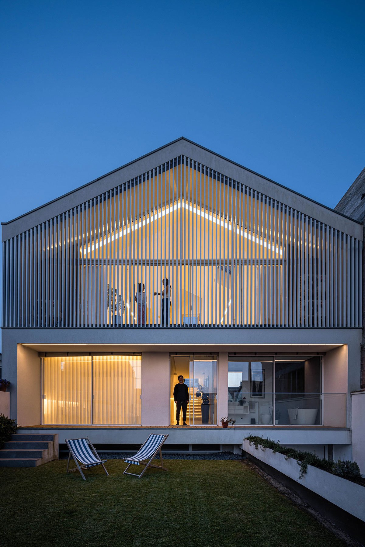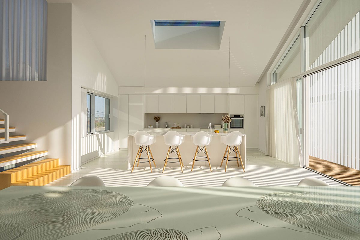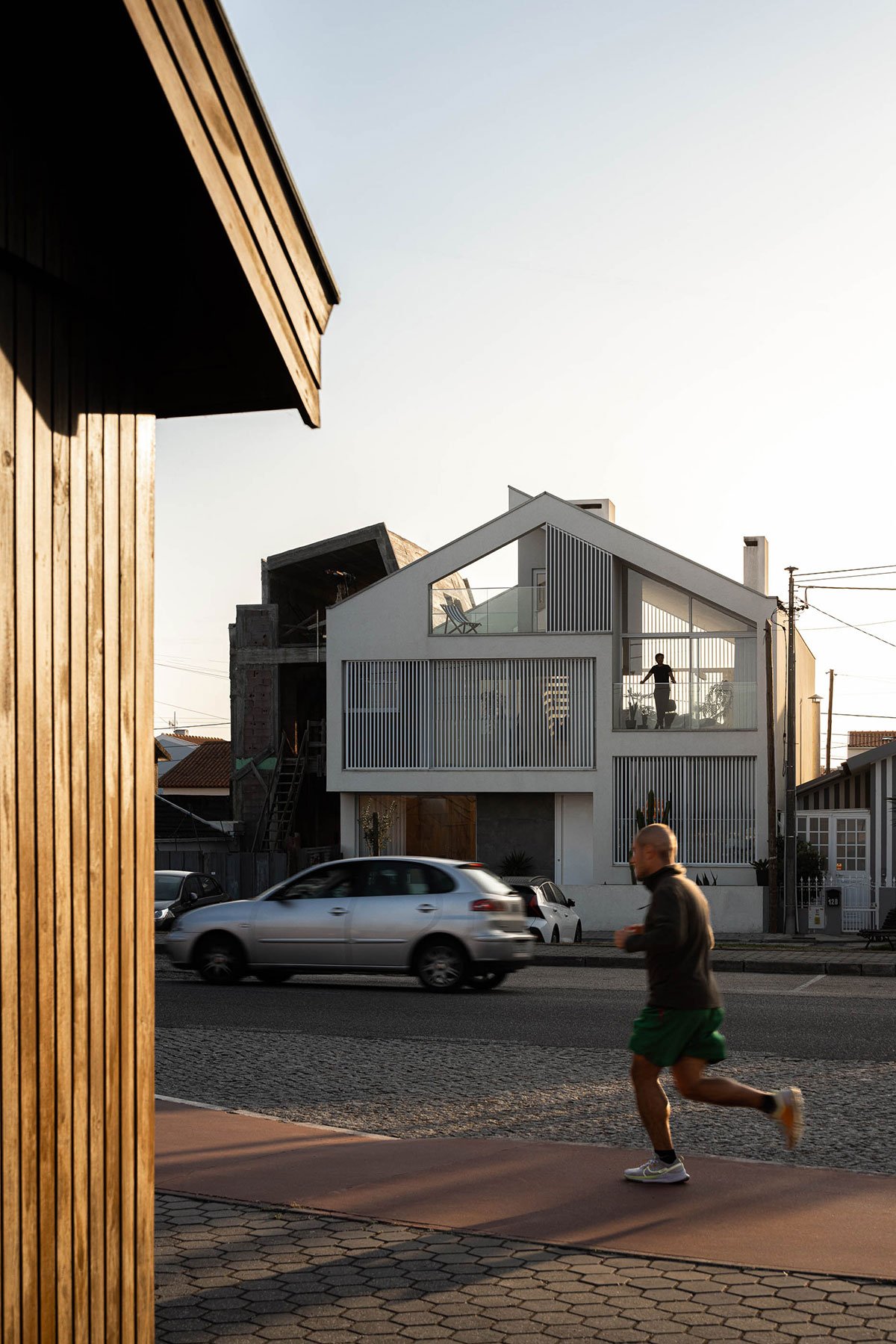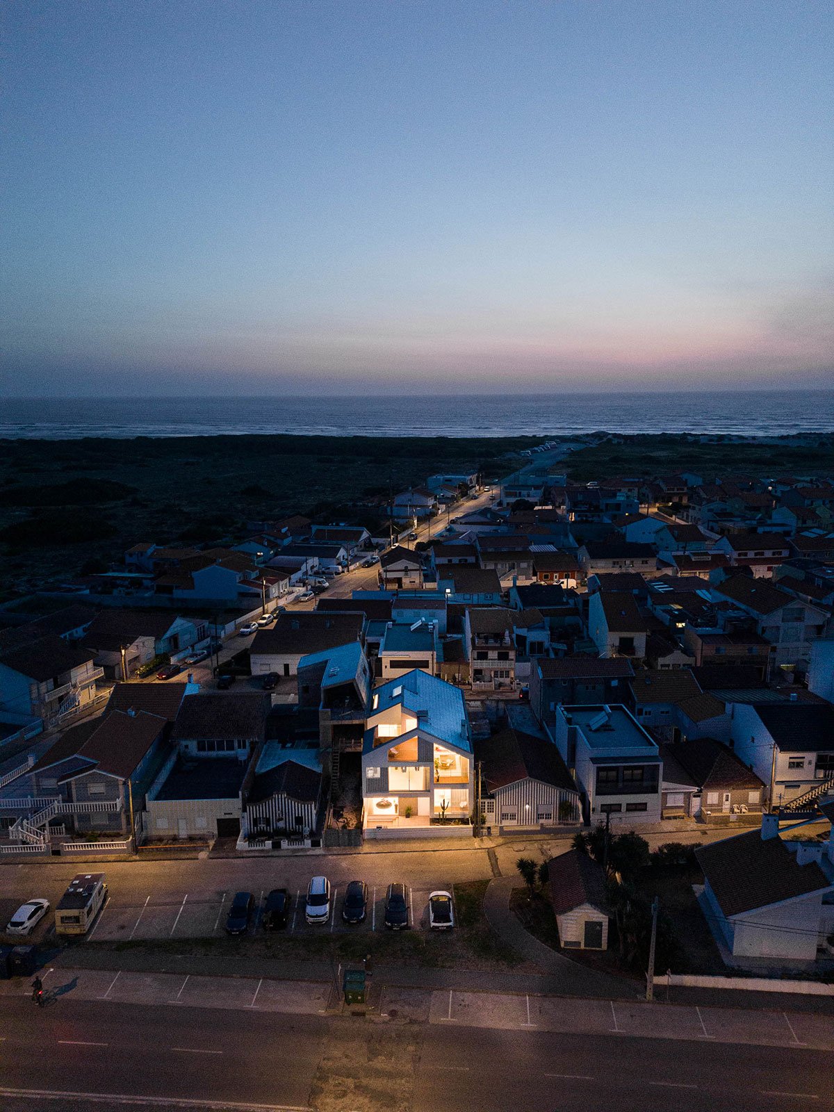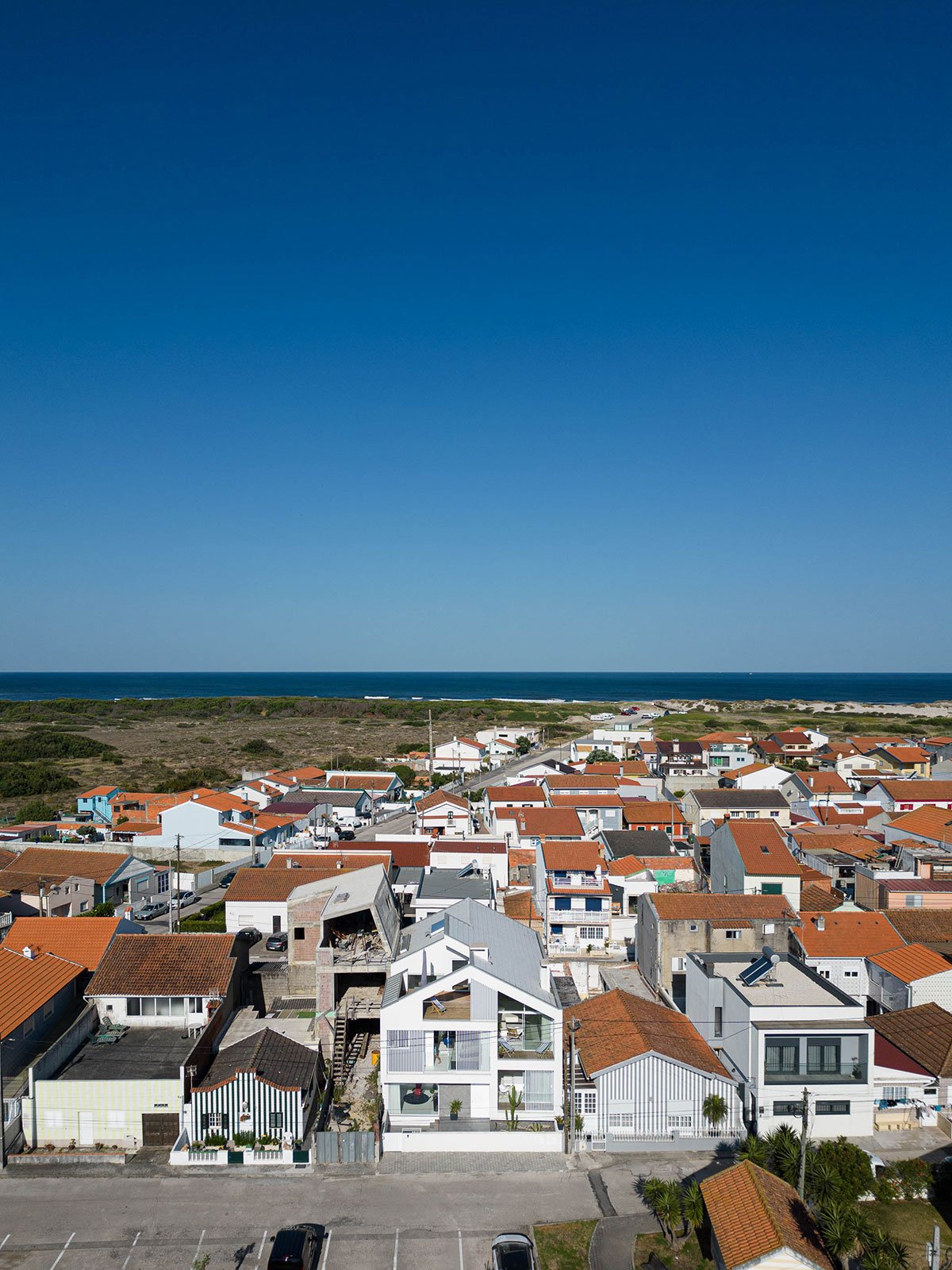 [Text as submitted by architect] The “Salt Color House” is in front of the so-called Mira channel in Costa Nova do Prado. Due to the salinity of its waters and the surrounding vegetation, along with the colors and scents that fill the air, this place evokes memories of the past, recalling the architect’s childhood home where they grew up and lived for many years in an atmosphere shaped by the marine environment.