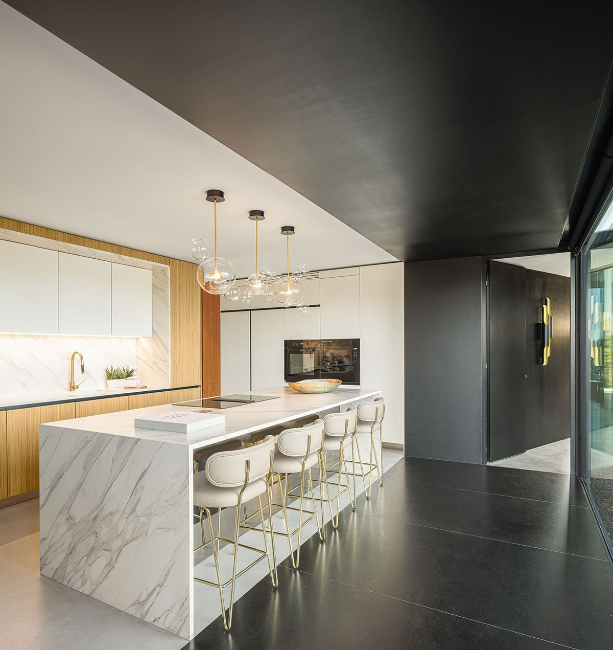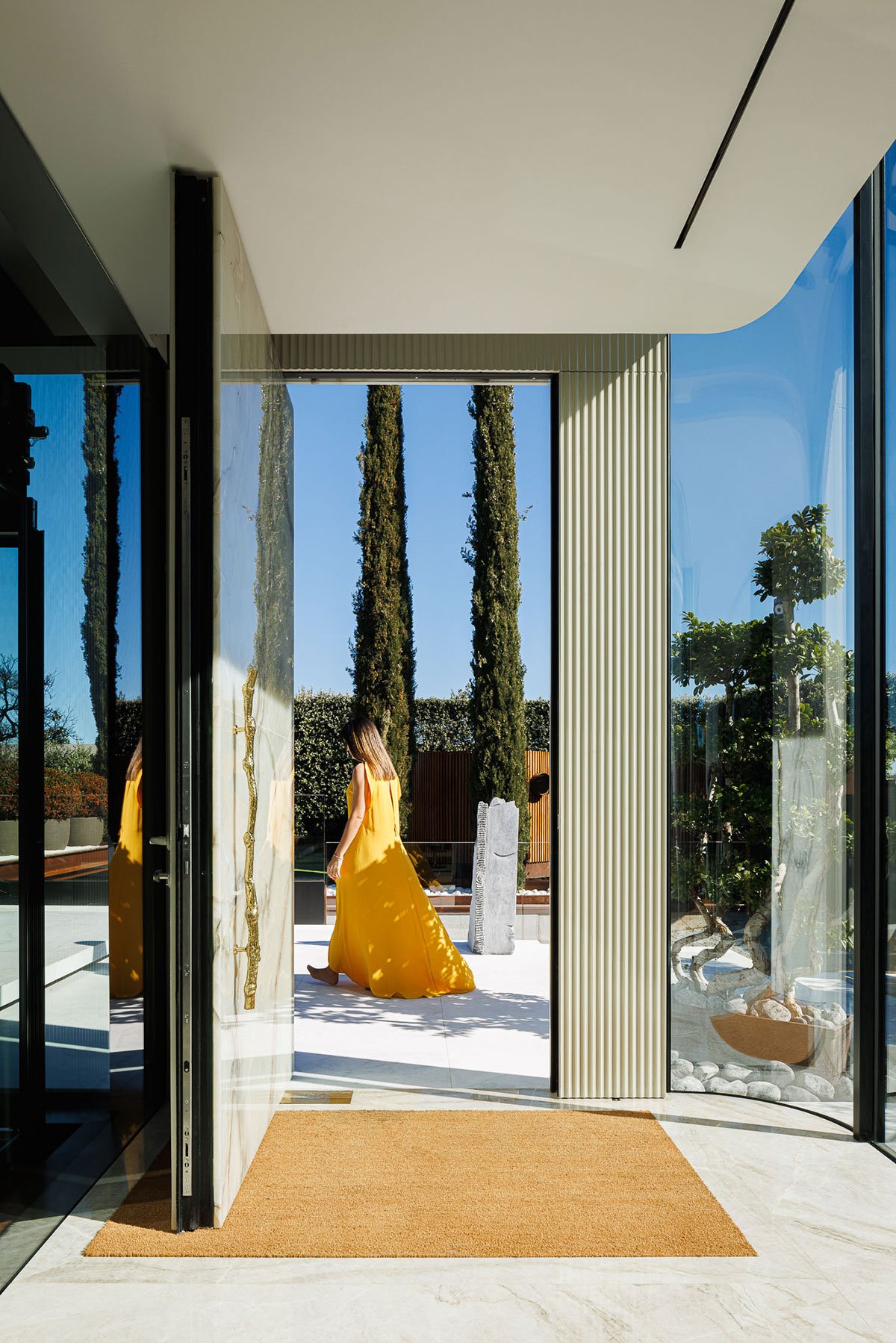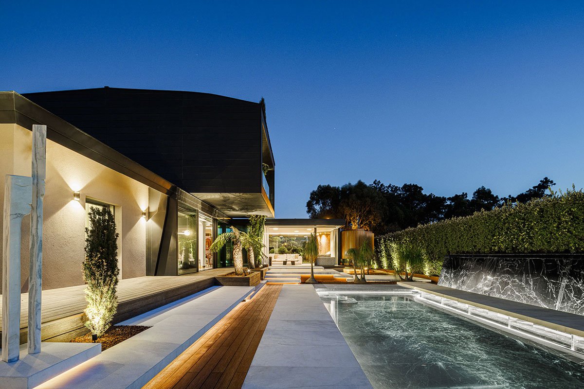 When it comes to the house distribution the strategy was to unify and gather all the program sections by order, the suites are given the sense of quiet and privacy needed, while the living rooms connect in harmony with the charming pool area, which unfolds in different levels, with exquisite materials and a wall which converts into a waterfall, providing a relaxing water sound.