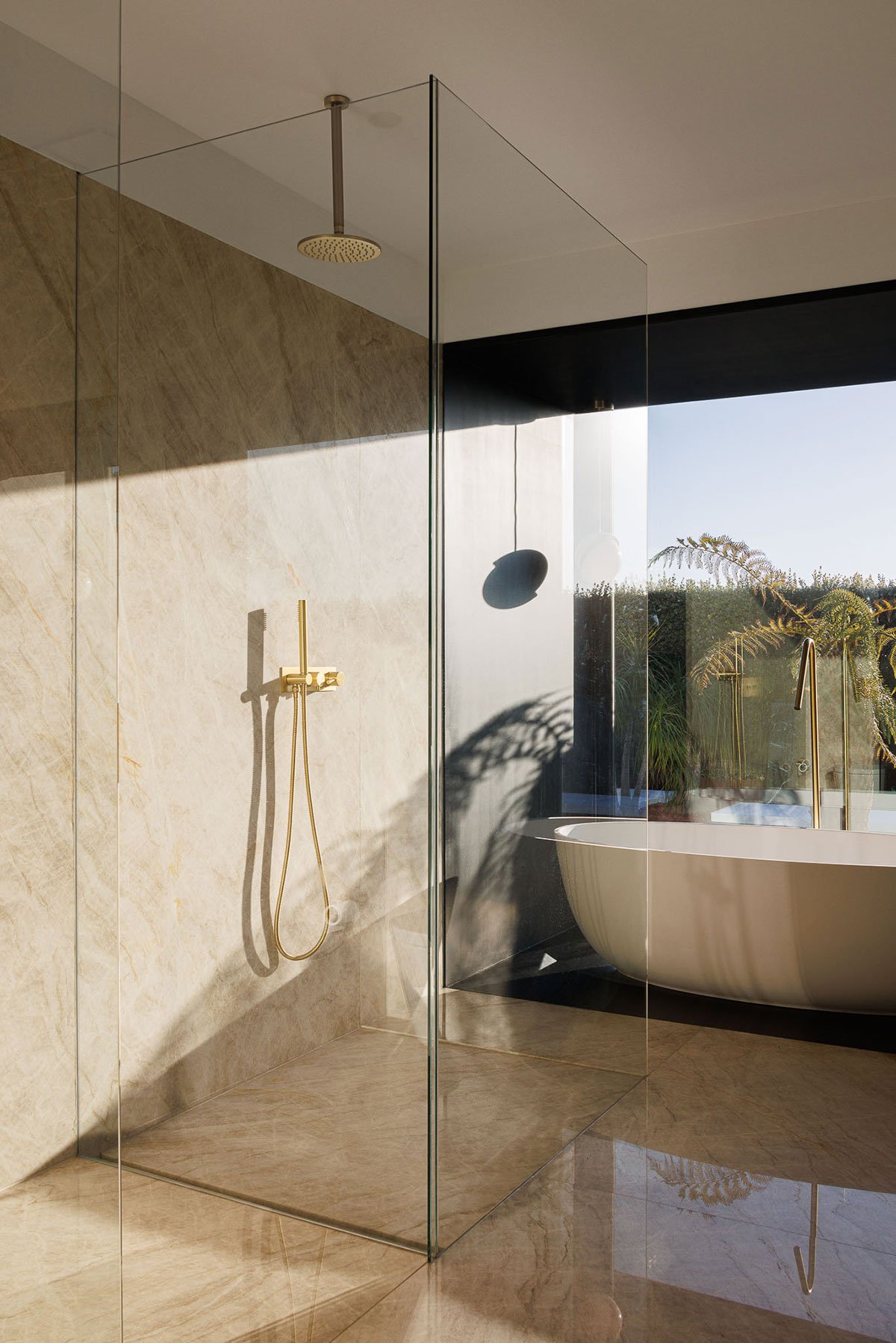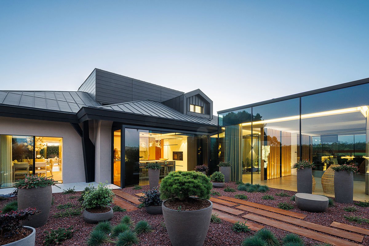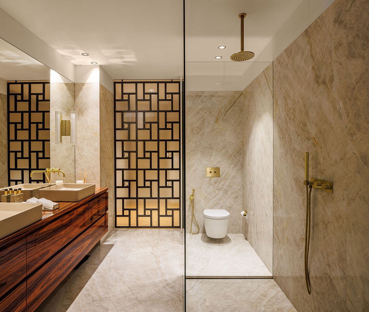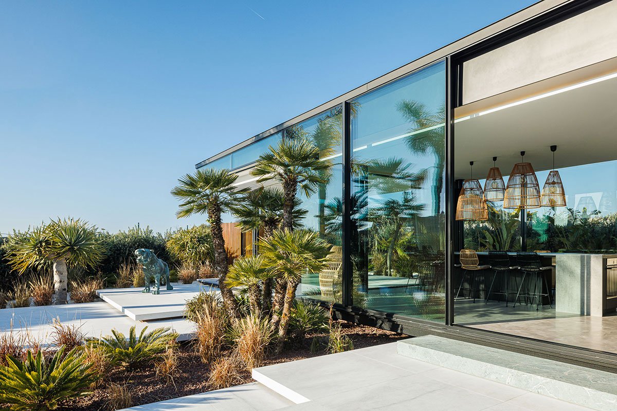 When it comes to the house distribution the strategy was to unify and gather all the program sections by order, the suites are given the sense of quiet and privacy needed, while the living rooms connect in harmony with the charming pool area, which unfolds in different levels, with exquisite materials and a wall which converts into a waterfall, providing a relaxing water sound.