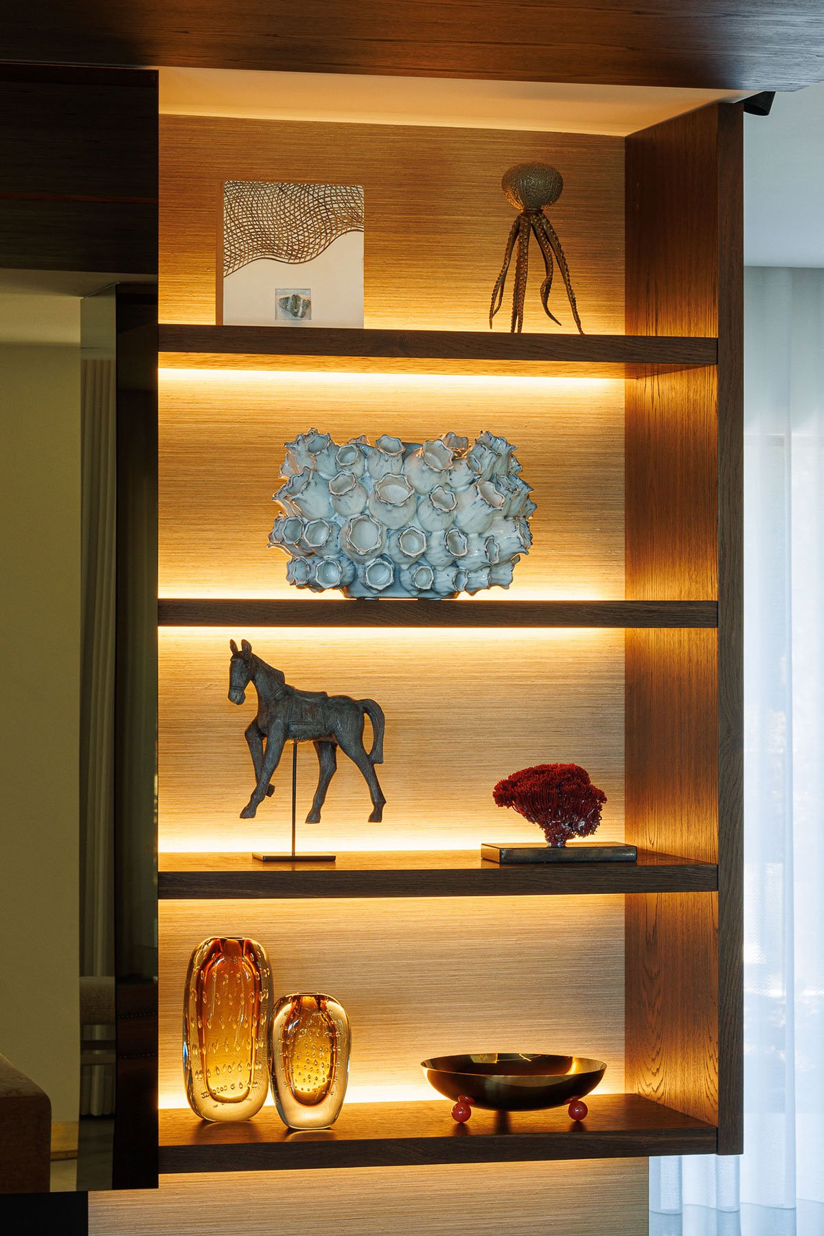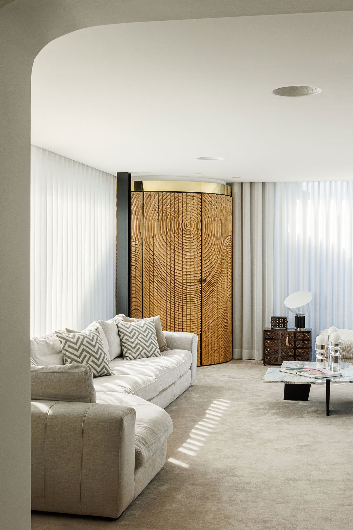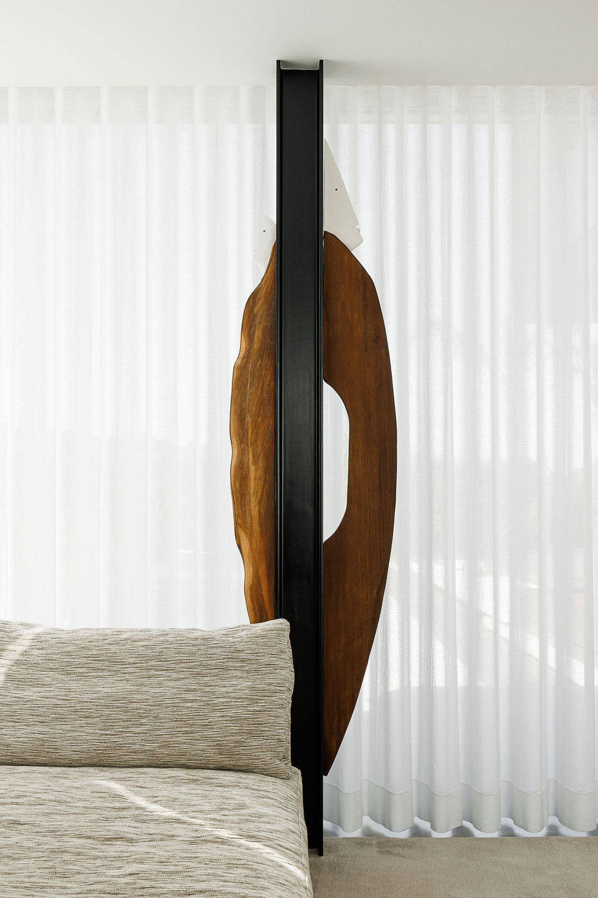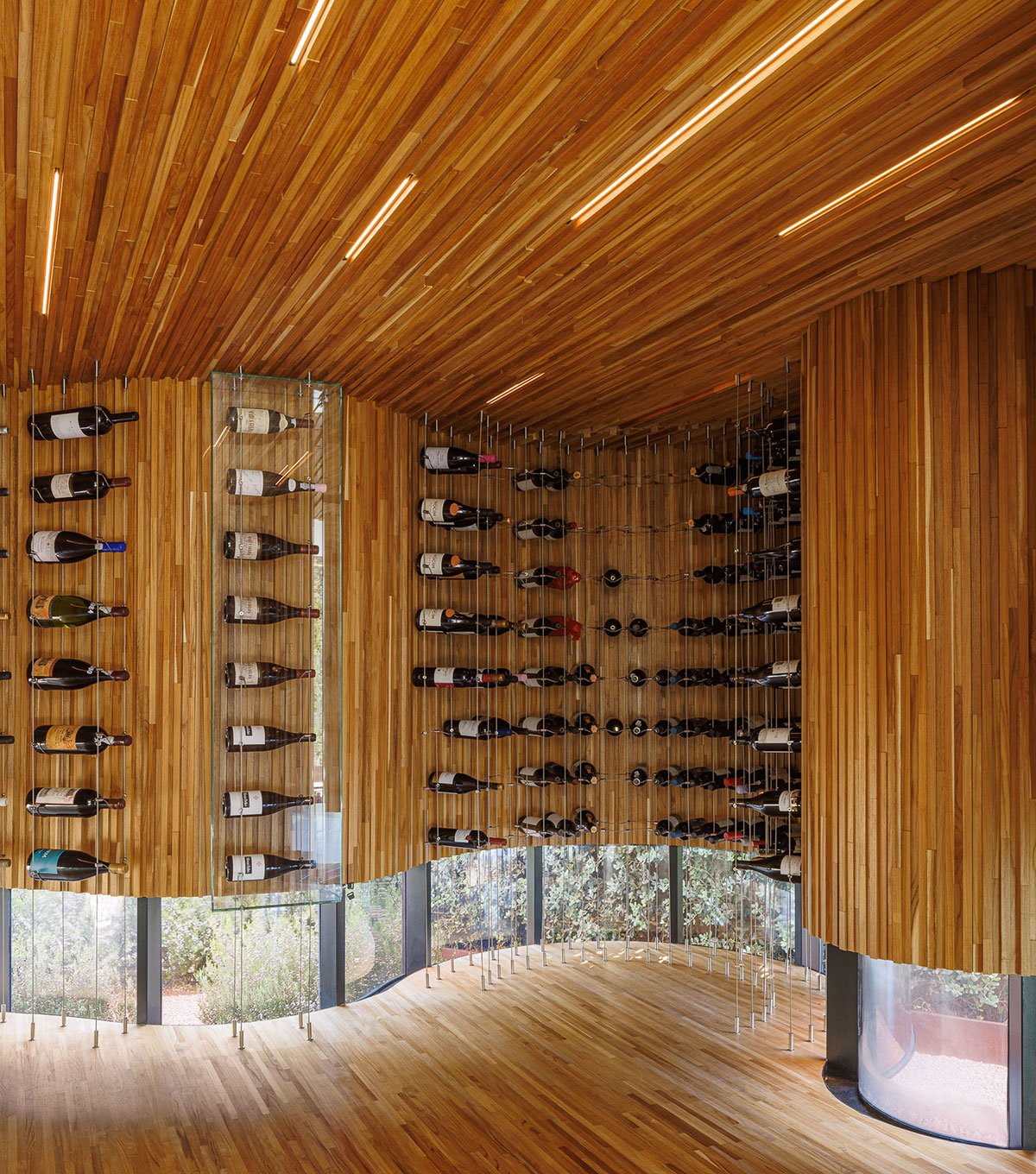 The exception to the rule is in the living room, which transforms itself into a porch. A sculpture by Paulo Neves when opened, gives us a wine tasting experience, a carved door, an organic feeling, which provides an amazing experience within the outside garden.