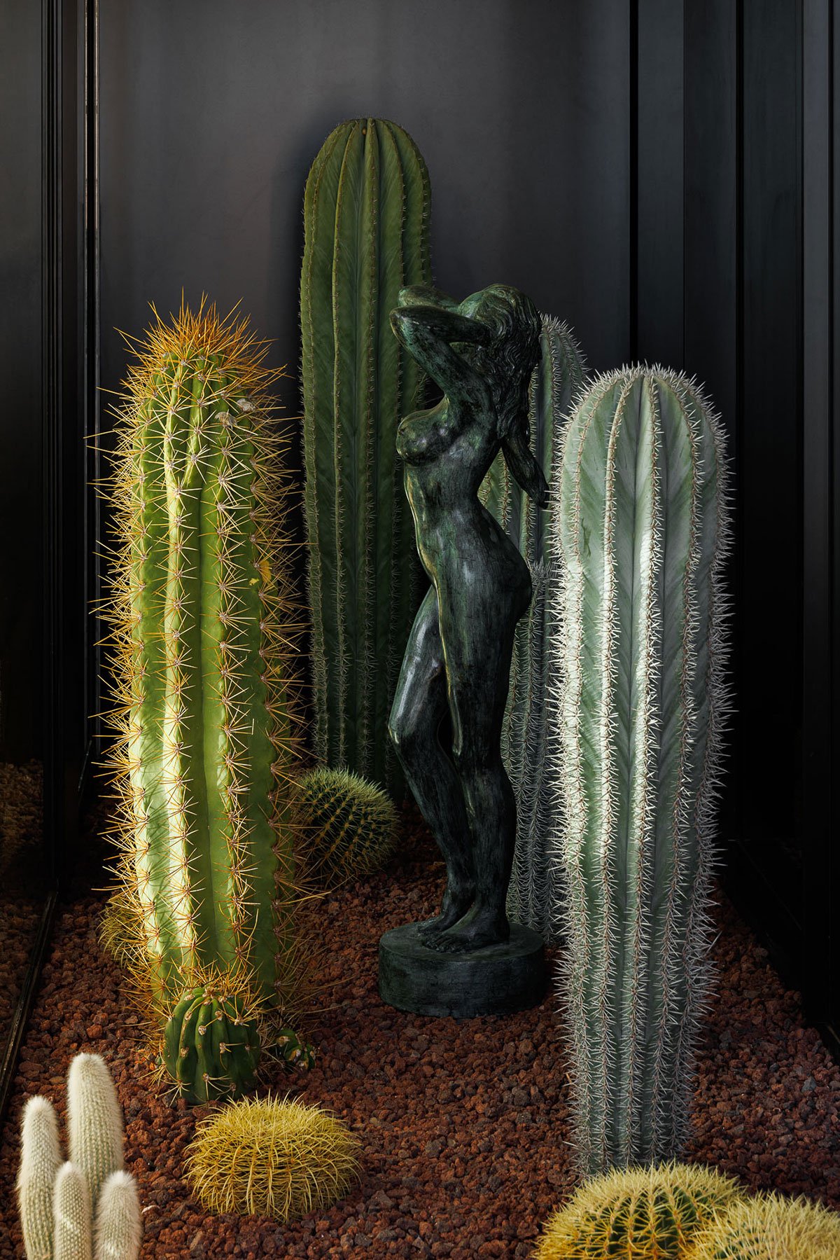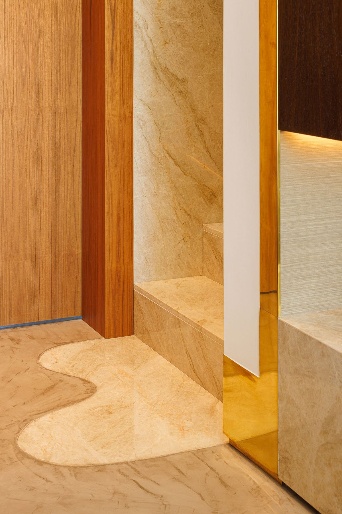 Thinking about nature brings one to a sensory game within the different spaces. Which one of them belongs to a specific environment, seen by the chosen species and its character. For instance one can see the social aspect surrounded by the tropical greenery and the grained marble, which gives the inside of the house a distinct atmosphere.