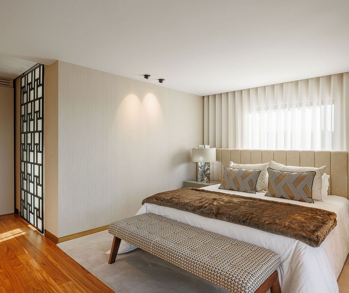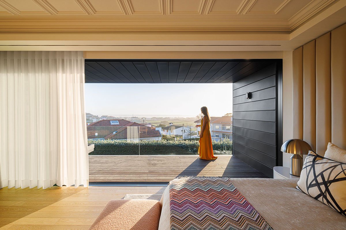 Even though the house was near the sea, until now there was no sight of it. Recalling the dichotomy of “separation of realities ”. To solve this constraint, a suite was built with a balcony, a second floor overlays, giving a closeness to the horizon. By the words of the architect Ricardo: “From now on, the house glimpses the sea. The sea was close by, but couldn’t be seen. Now the boats who wait at the Porto de Leixões are the background of a glass wall that opens up into the horizon.”