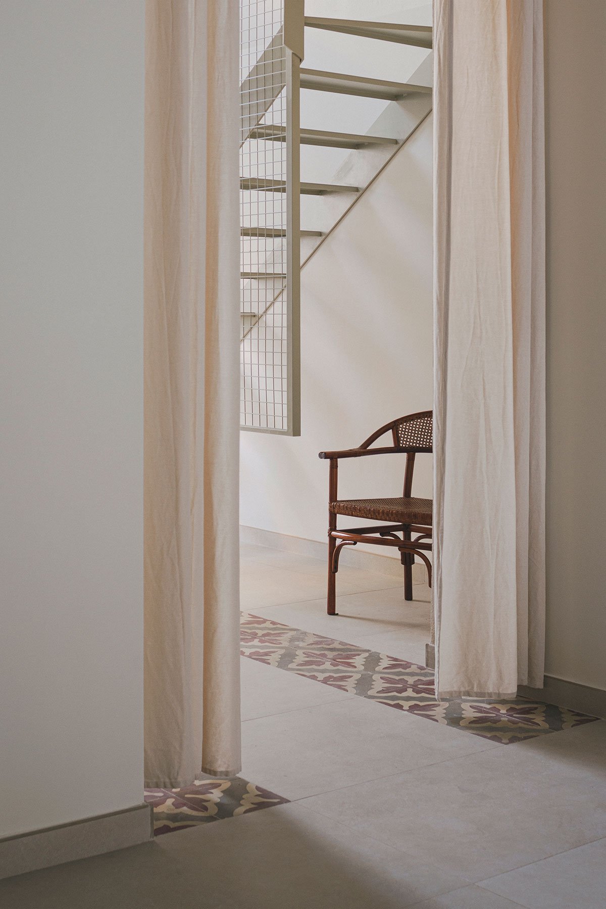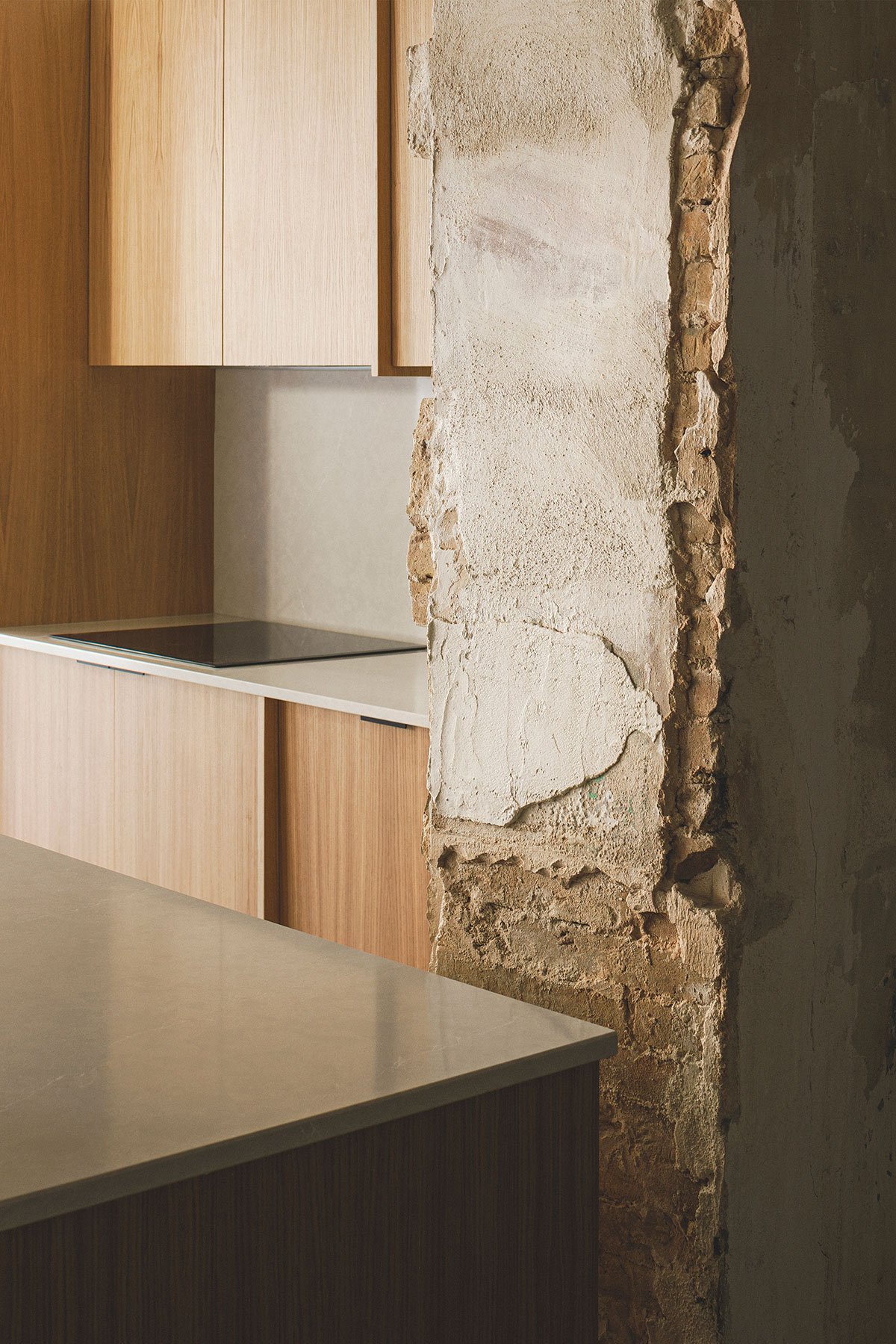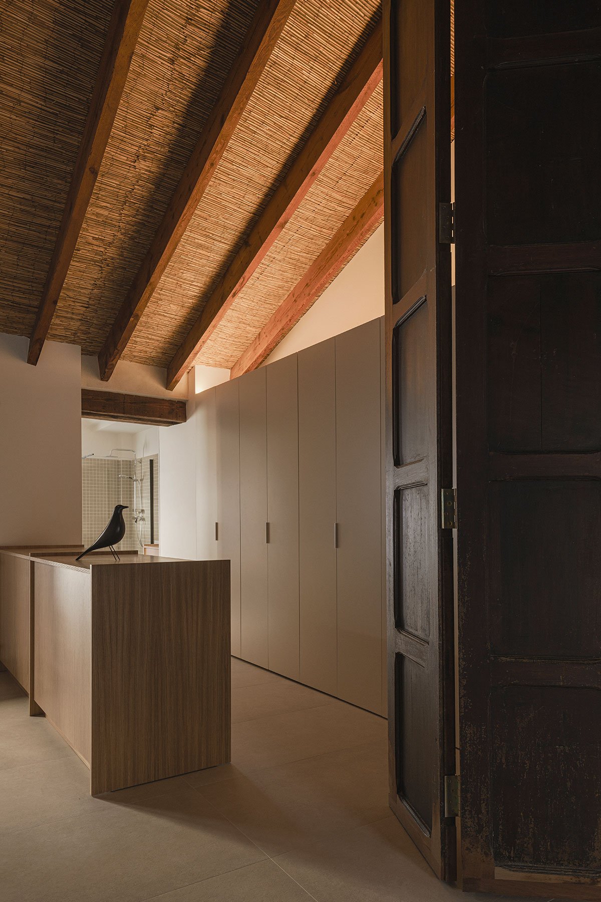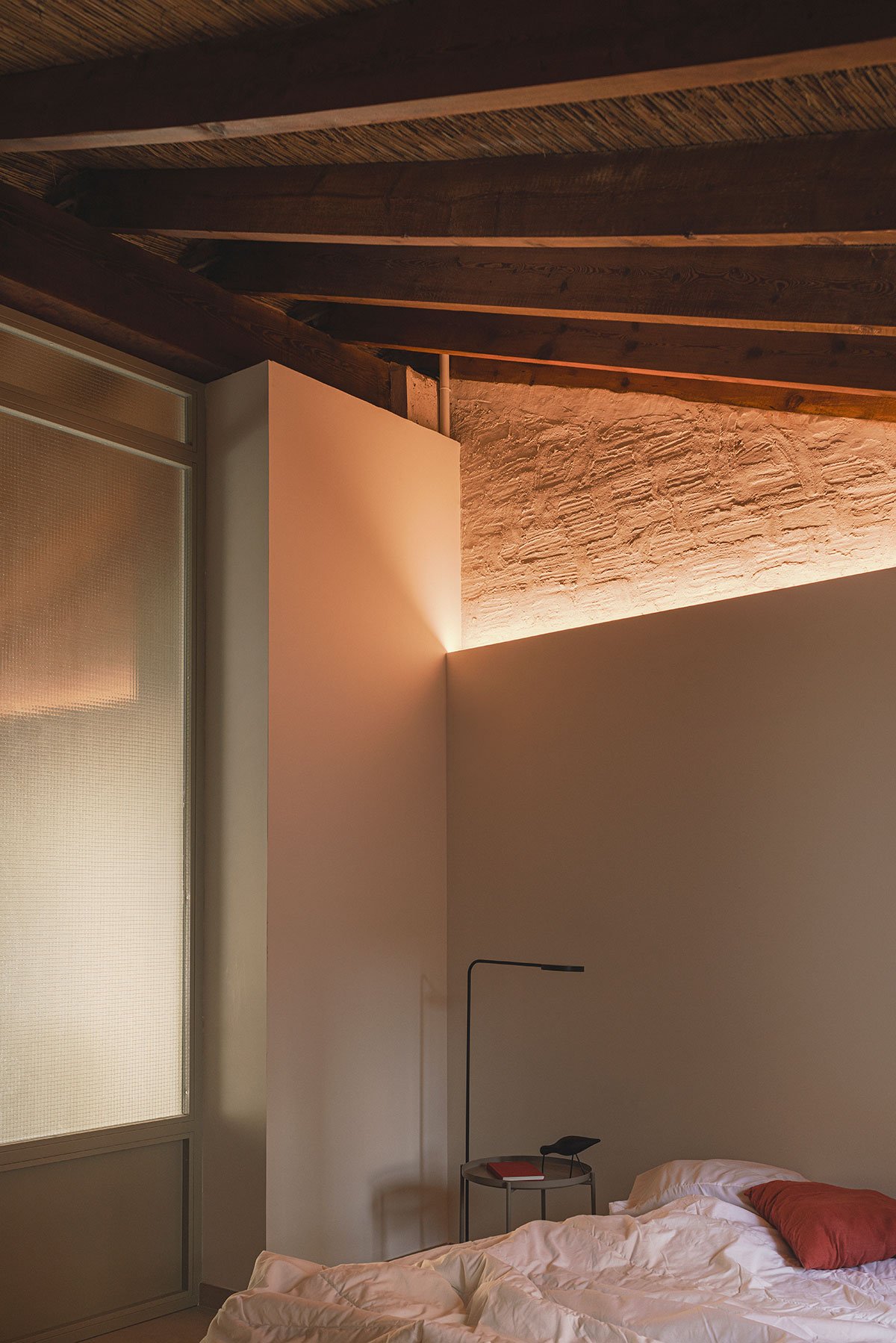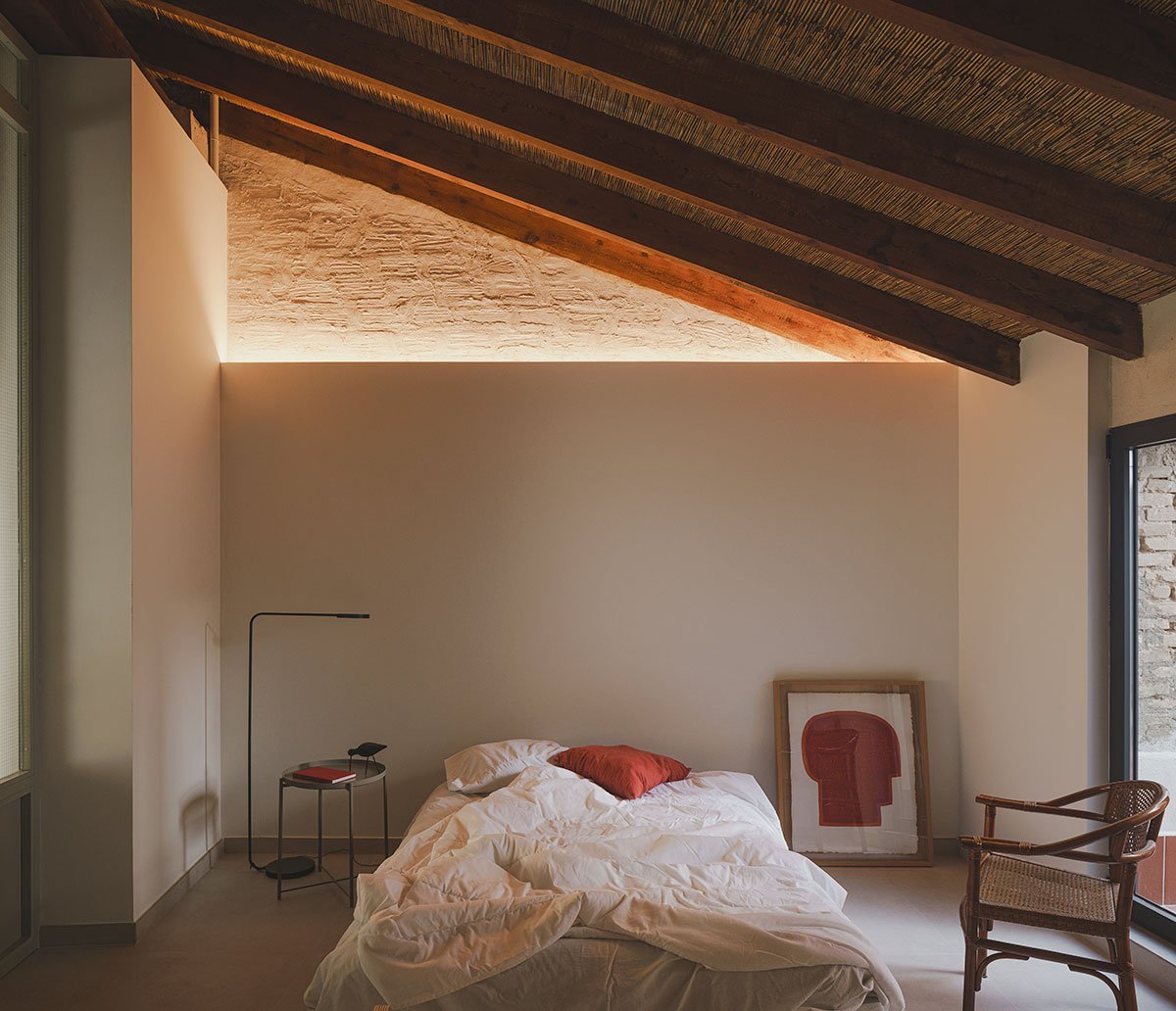 [Text as submitted by architect] The house of this project follows the typical scheme of the houses a una mà from l’Horta de València; a compact volume with a gabled roof followed by a rear extension with a flat roof, a patio and the pallissa at the end of it. To this longitudinal scheme, a reading is added in bands, leaving the rooms and closed spaces agglutinated in the dividing wall so that the central space is freed up, facilitating the passage of the cart and the animals through the house. The reading of this domestic longitudinal axis also has a second analysis as a sequential space, forming a set of concatenated spaces that, together with the intentions of any intervention in a historic building, represents the germ of the new project in the desire to assemble a new way of life in a house previously inhabited and lived in.