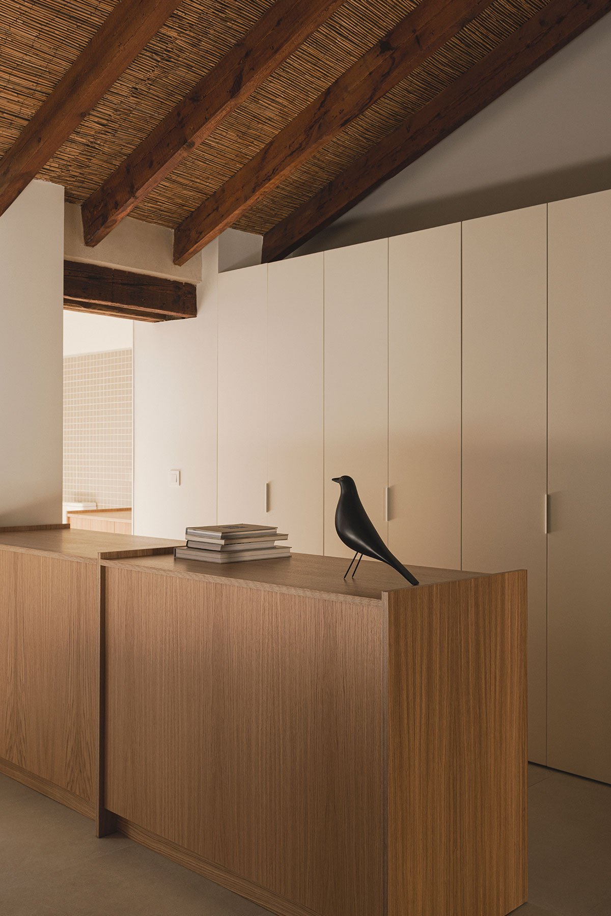 The second part of the house is configured using some shared-use furniture elements that help to integrate rooms and act as connectors between the different spaces of the house. This large shared room is directly linked to the heart of this type of housing: the corral (patio). The second part of the house is configured thanks to some shared-use furniture elements that help to integrate rooms and act as connectors between the different uses of the house. This large shared room is directly linked to the heart of this type of housing, the corral. A work space, a living space; a space of recreation and connection with nature that was often shared with animals and where it was customary to hold all kinds of family events.