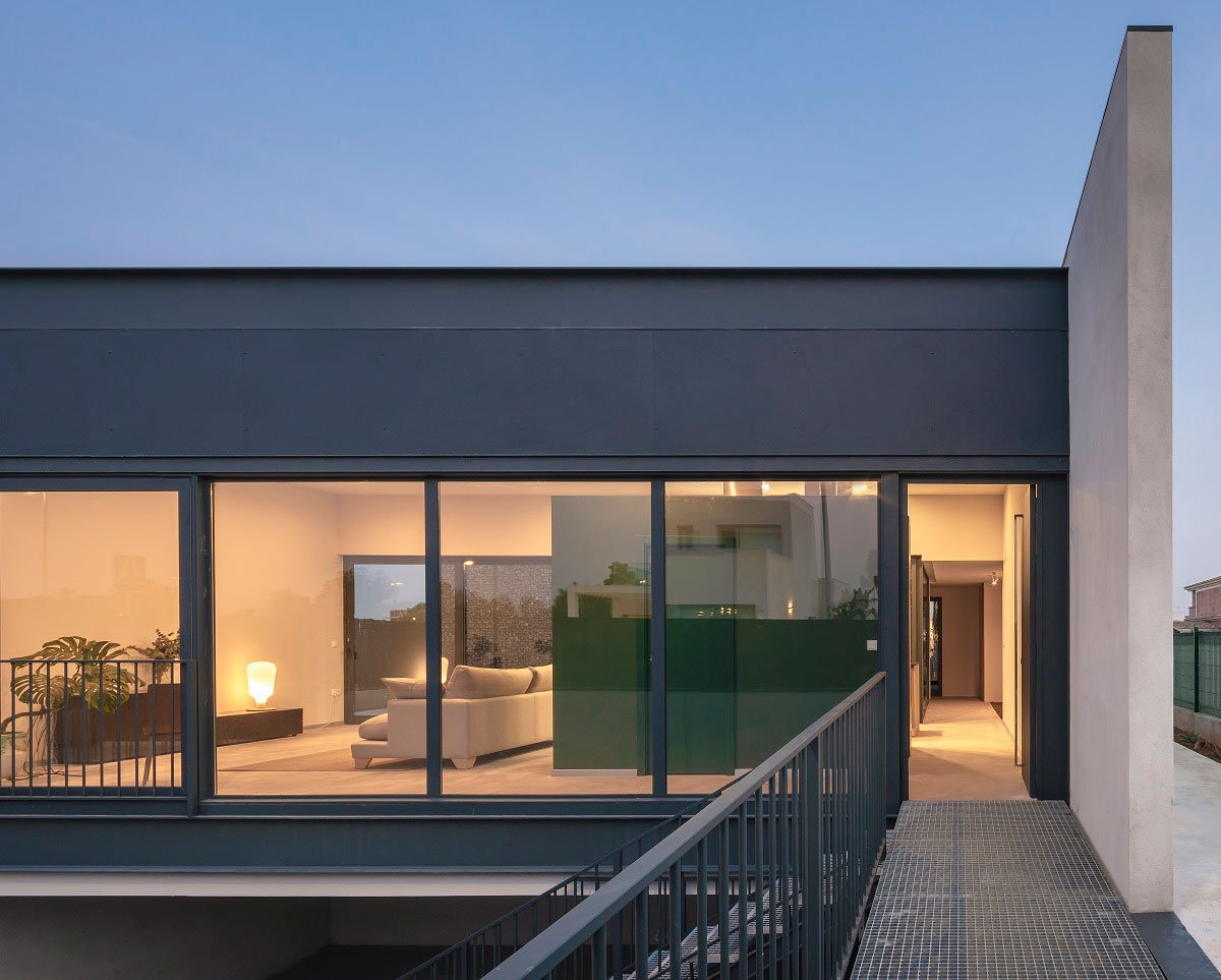The orientation of the plot to the north is another great challenge. The logical thought is to adjoin the day area to the facade of the house, however this requires a north orientation of . That arrangement of the central patio, which is linked to the day-area since it is located at the same level, provides the day-area with correct lighting and a more optimal orientation, allowing also for the bedrooms to be placed at the rear of the house, improving privacy.
