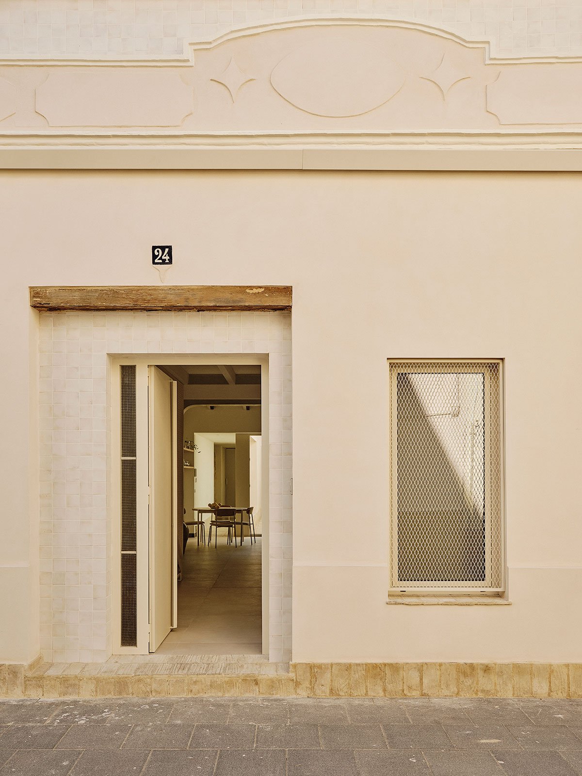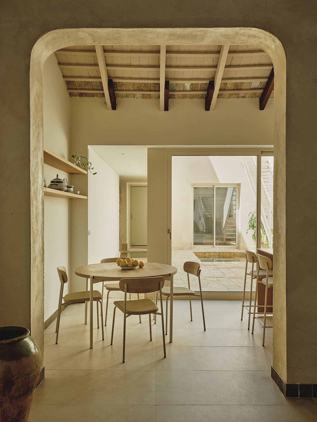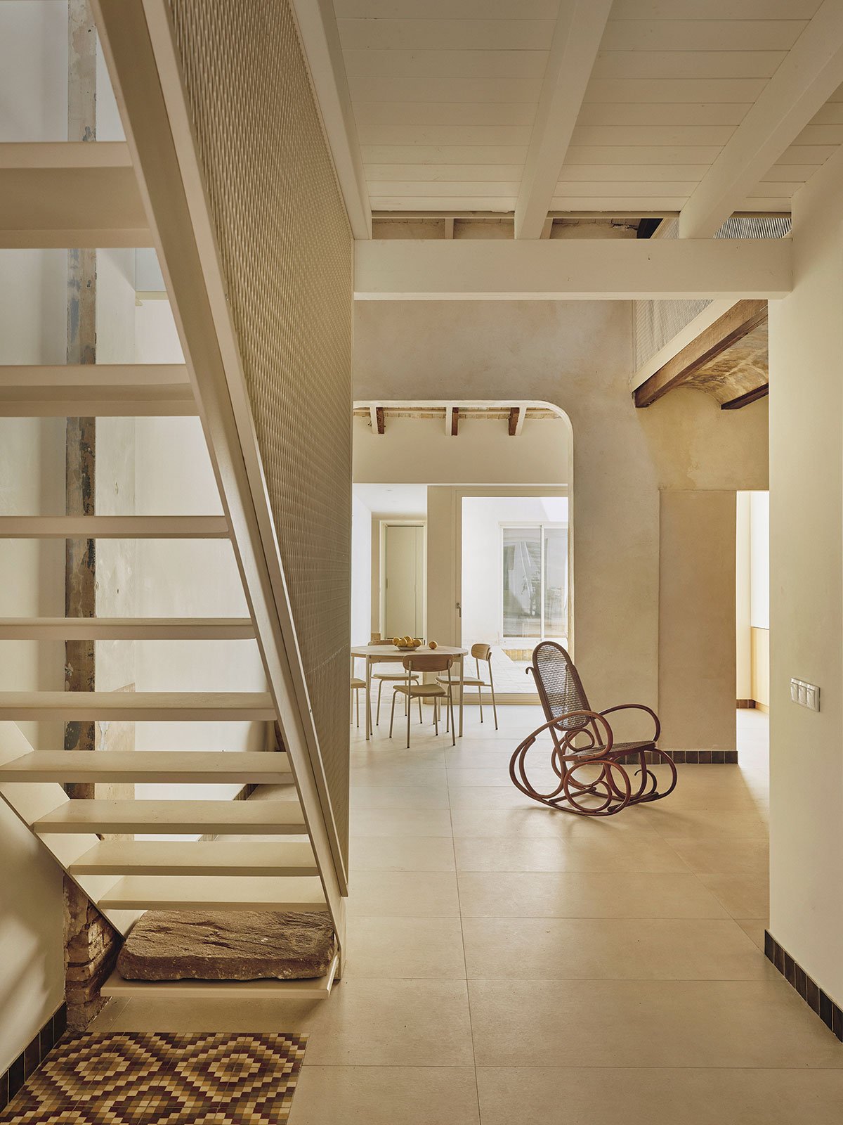[Text as submitted by architect] Casa dels Estels is a renovation project located in Albal, in the region of l’Horta Sud, near Valencia. It is a traditional rural dwelling of the “a una mano” typology, featuring a longitudinal layout with double bay structure, a central staircase with a half-andana, a courtyard, and an old pallissa. Its composition follows the construction and lifestyle principles of the region: simplicity, functionality for rural life, and adaptation to the climate and available resources. Rammed earth walls, solid brick, gable roof, wooden beams, and lime plaster define its original material character.