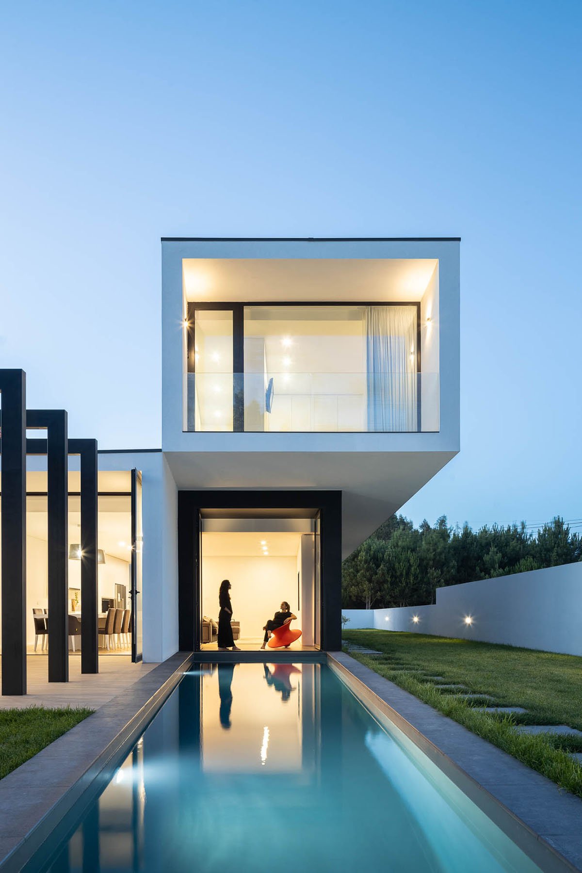 [Text as submitted by architect] This villa, located on the surroundings of the city of Aveiro, is part of a consolidated residential area, but with low occupancy density, being part of a housing complex of allotment, with some lots already built. The proposed building is a non-homogeneous piece, composed of different volumes that form a single body.