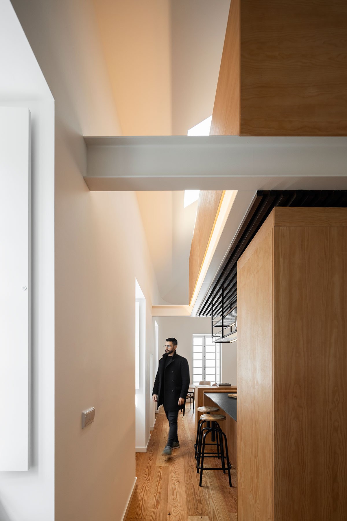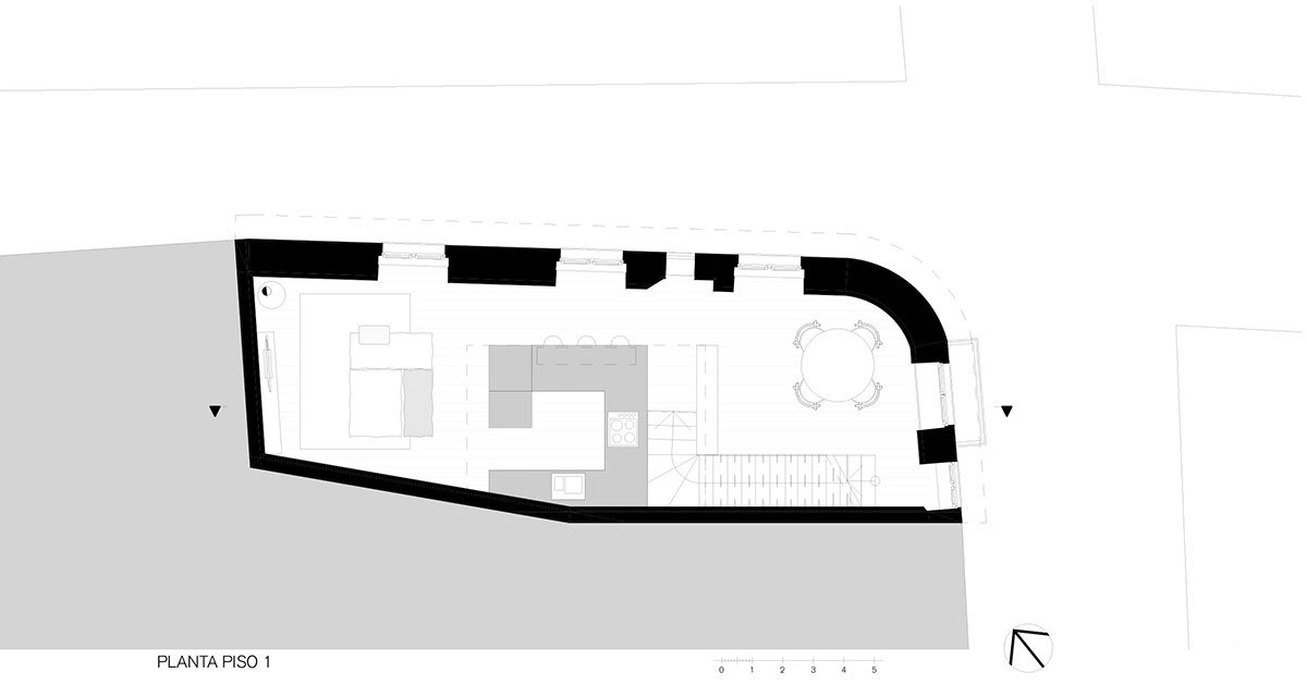[Text as submitted by architect] This house is located in Castelo Branco, in the old part of the city, which has been in an increasing state of decline in recent years. In response to this trend, this project was aimed at taking on the contours of an archetype, in an attempt to establish a trend in the urban occupancy of the city: urban revitalisation of the historic centre and its occupancy by younger age groups, making this part of the city more dynamic once more.