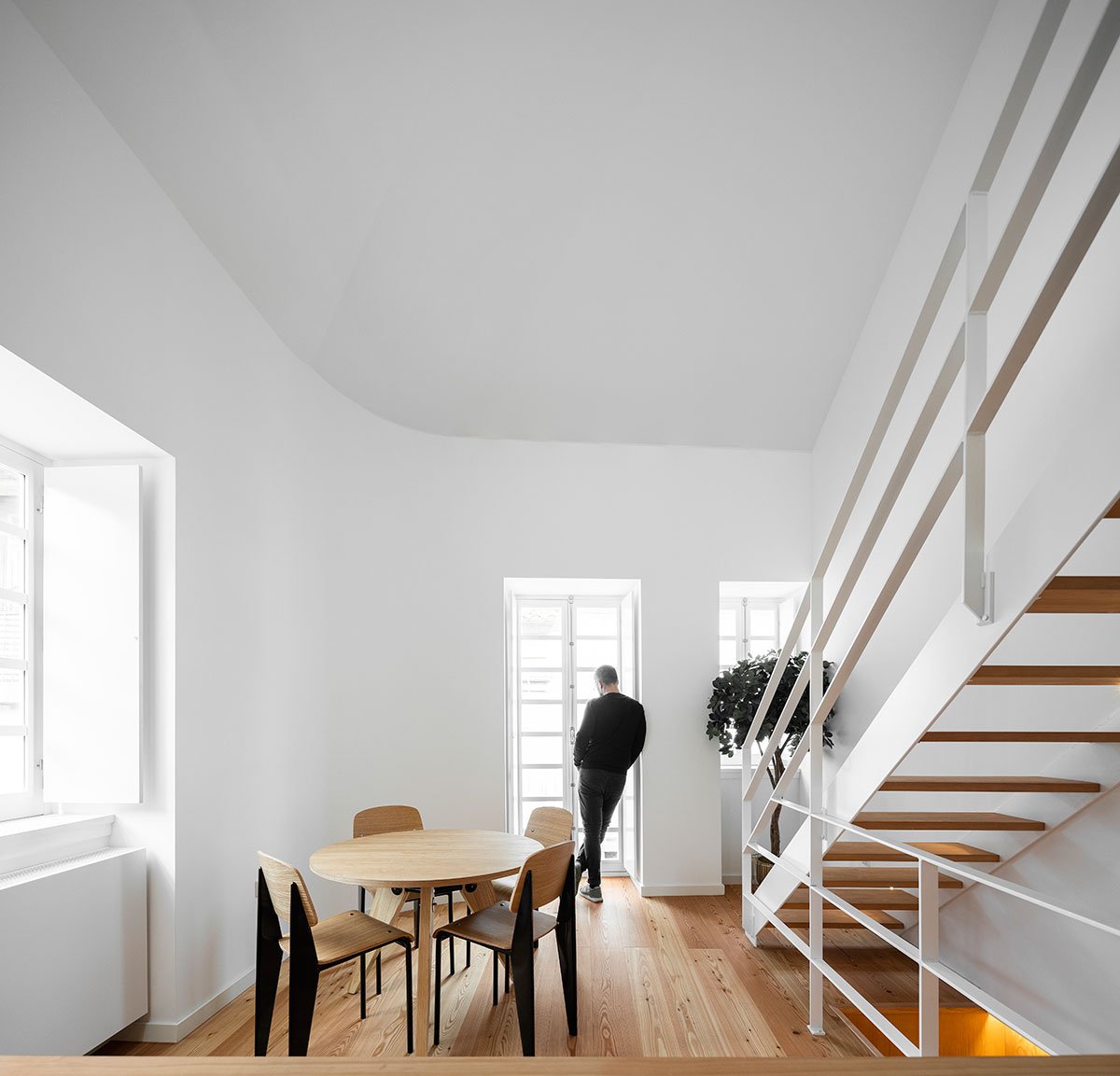 Excerpt: Casa Dos Oleiros, a home interior project by Paulo Martins Arquitectura, features a redesign of spaces marked by contemporary minimalism. The house consists of two floors and a mezzanine, with the ground floor designated for rest and lighting and the upper floors for social areas. The refurbishment aimed at creating a light, casual, and welcoming design using simple yet high-quality materials.