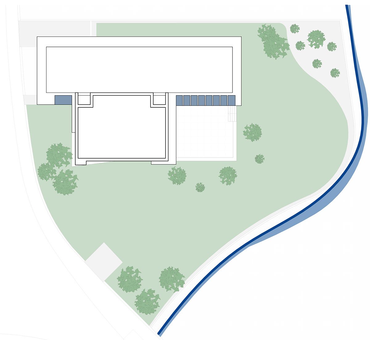 [Text as submitted by architect] The house was intended to be only a single floor. The land is almost flat and has a timid water line that borders the property to the west. The surroundings are marked to the south by a natural, continuous space as if it served as a backdrop for a long lawn.