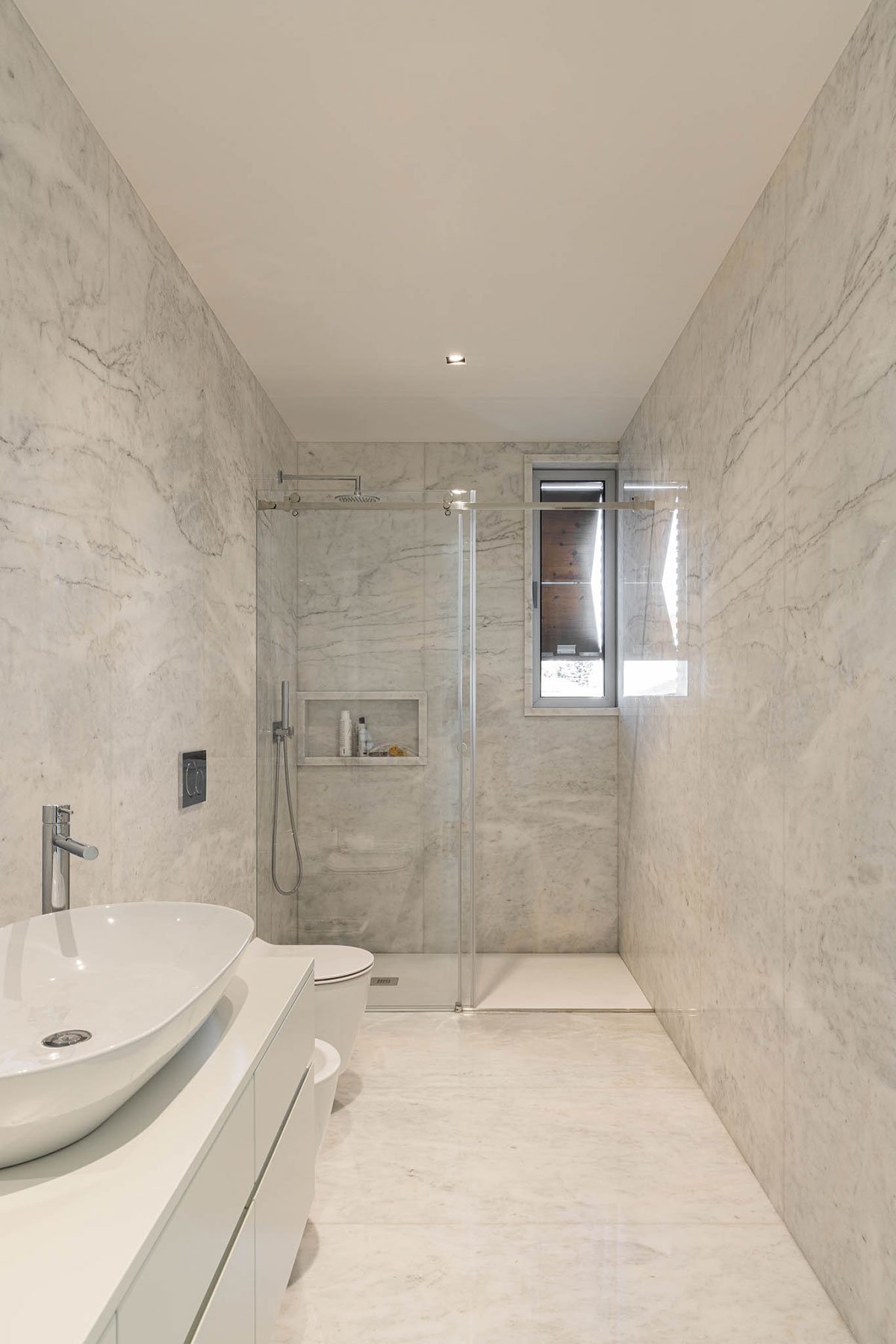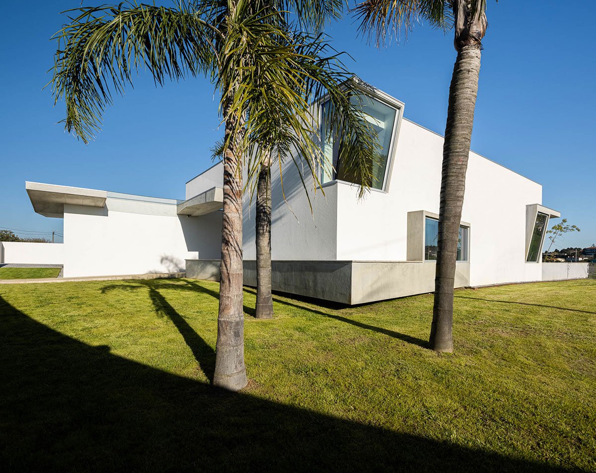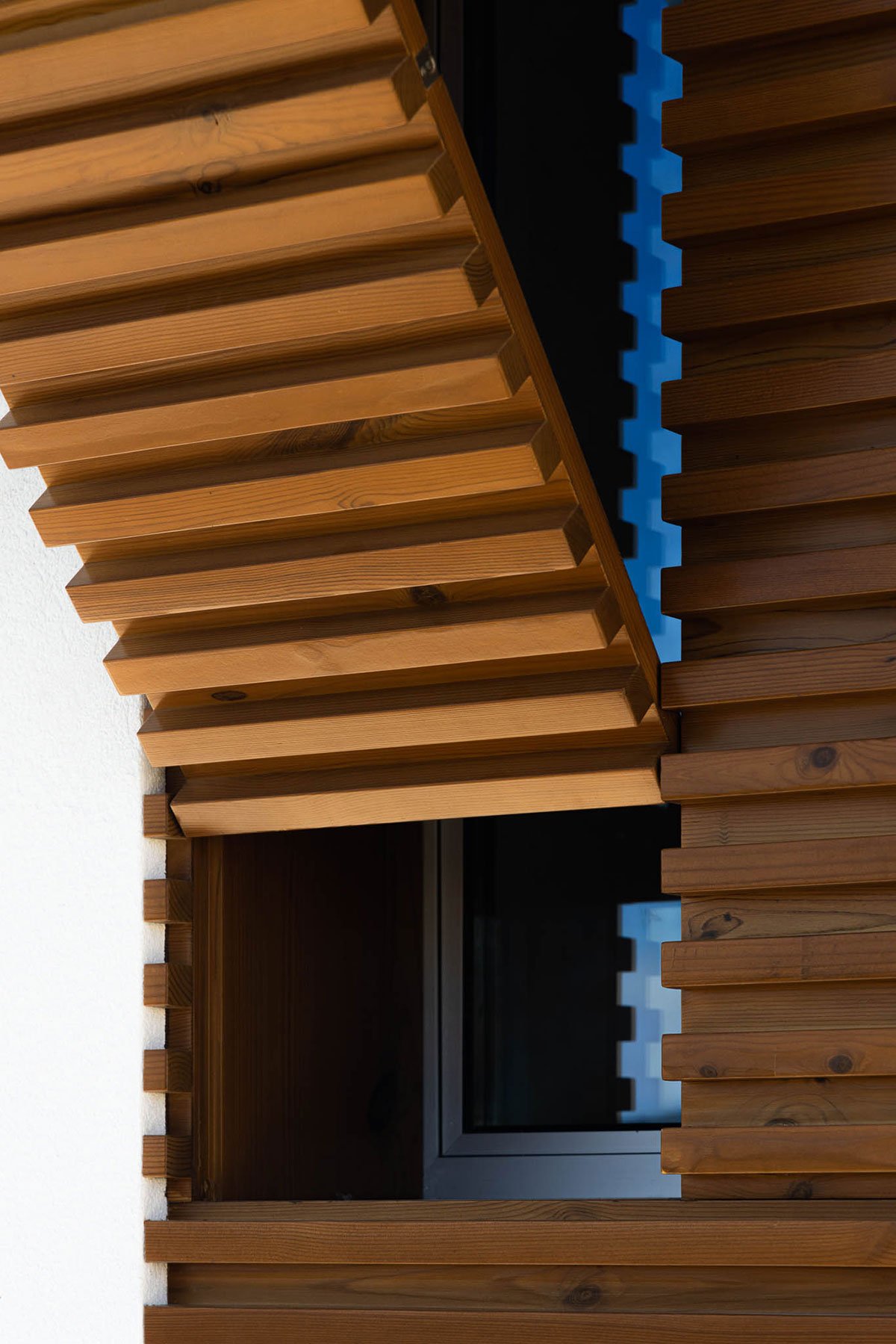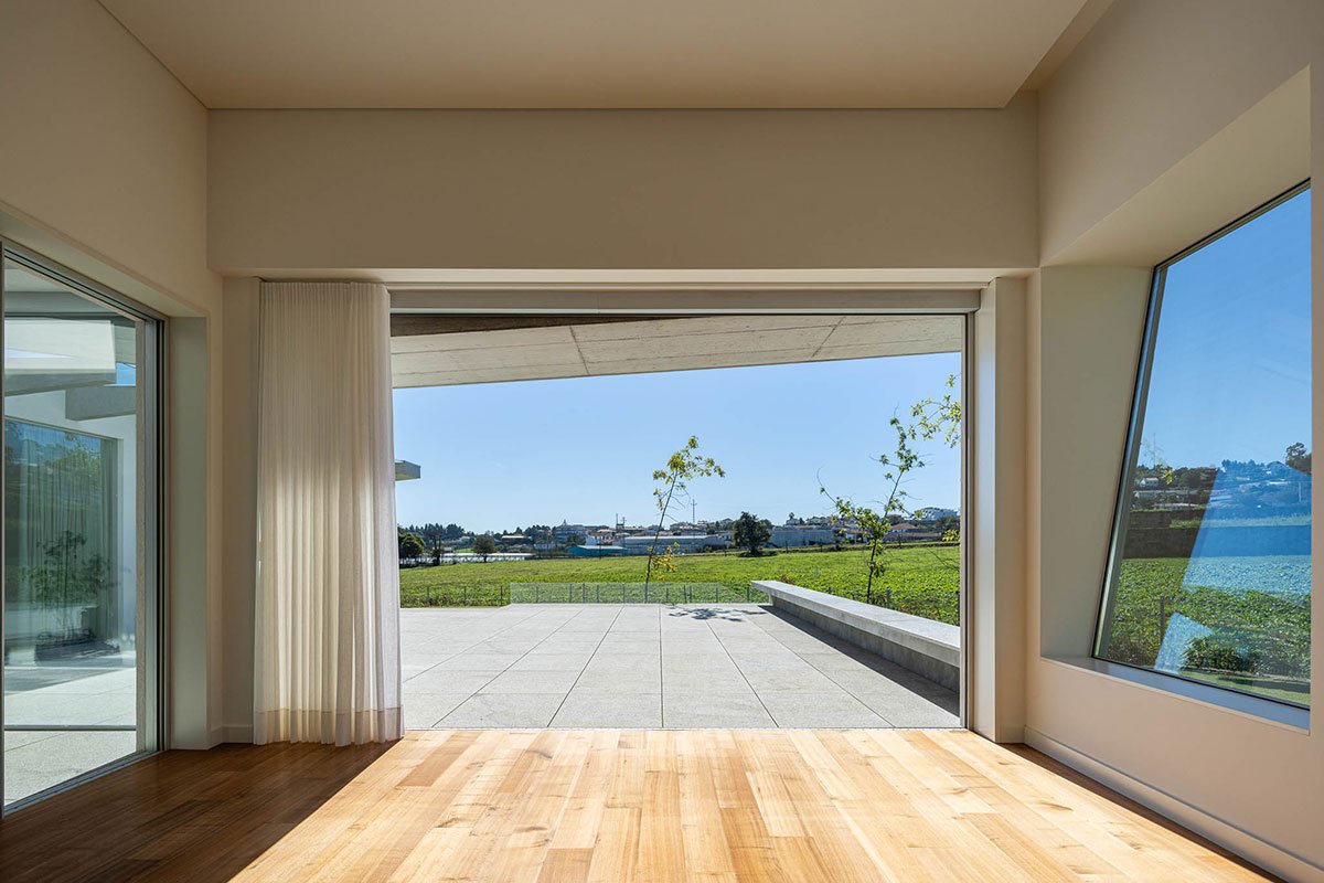 All the openings of the volumes seek a language in which the notion of the window as an element of the interior-exterior relationship is assumed. In the bedrooms, the need for seclusion led to the creation of a horizontalized wooden skin, which reinforces the grammatical exercise of a house that intends to be modern but contaminated by a search for fluidity and coherence in the architectural language.