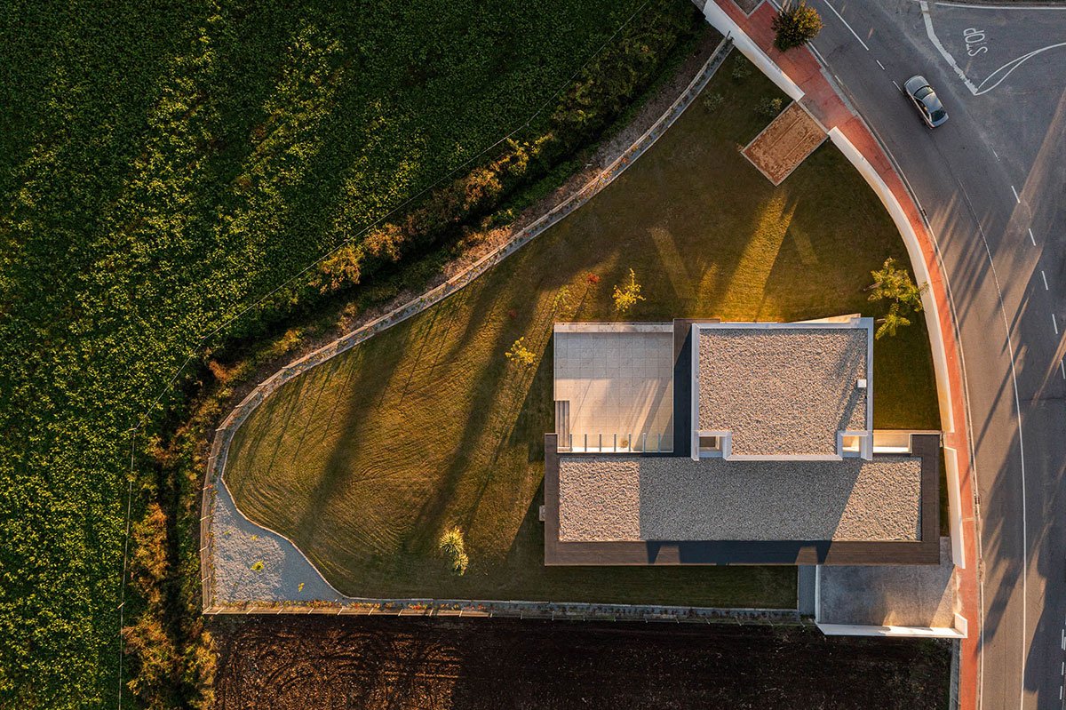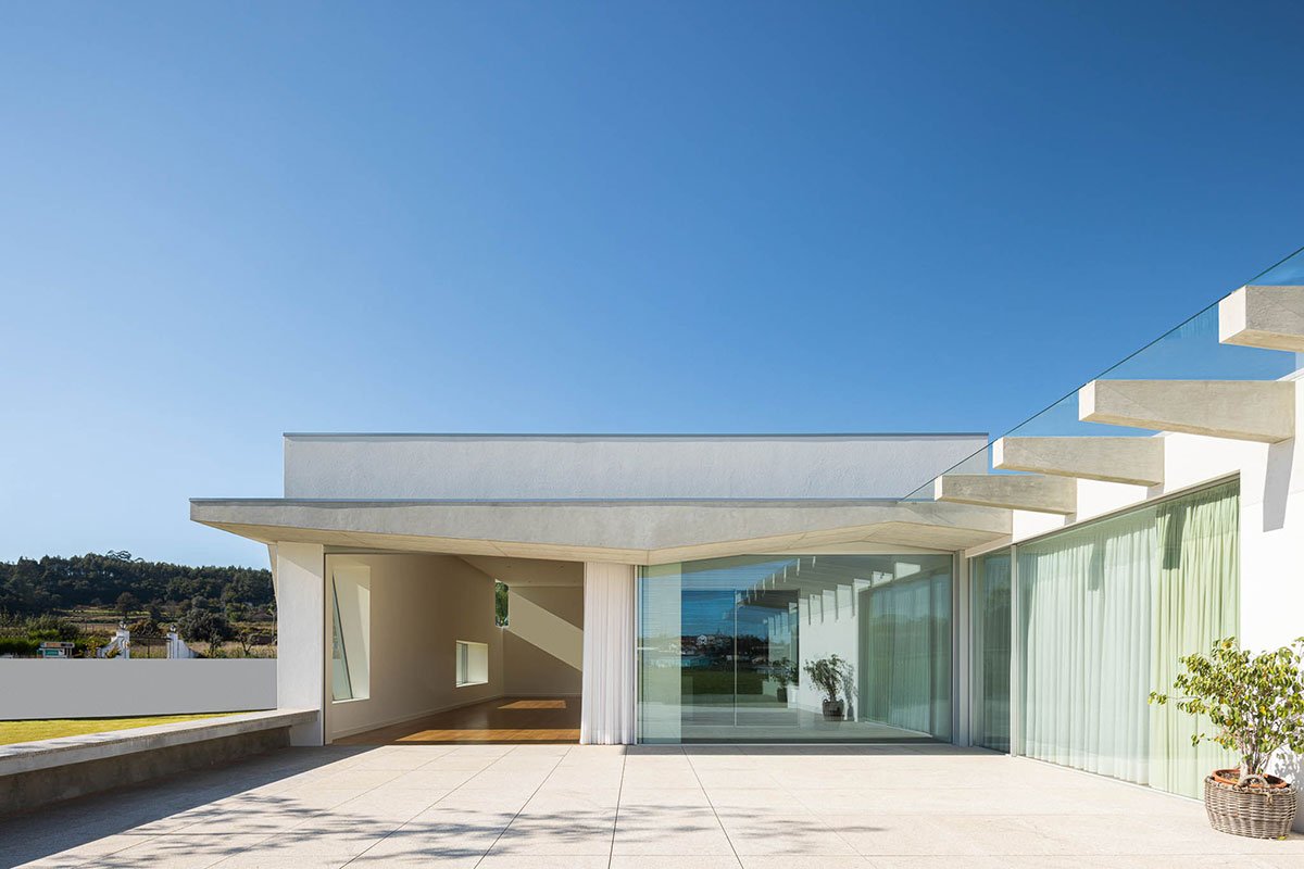 Excerpt: Casa Em Brufe designed by OVAL was intended to be only a Single Floor Residence. The House is Basically, like a piece by Giacometti, there are two boxes connected by an empty space in which each one represents its home, one more open and public and the other more domestic and private.