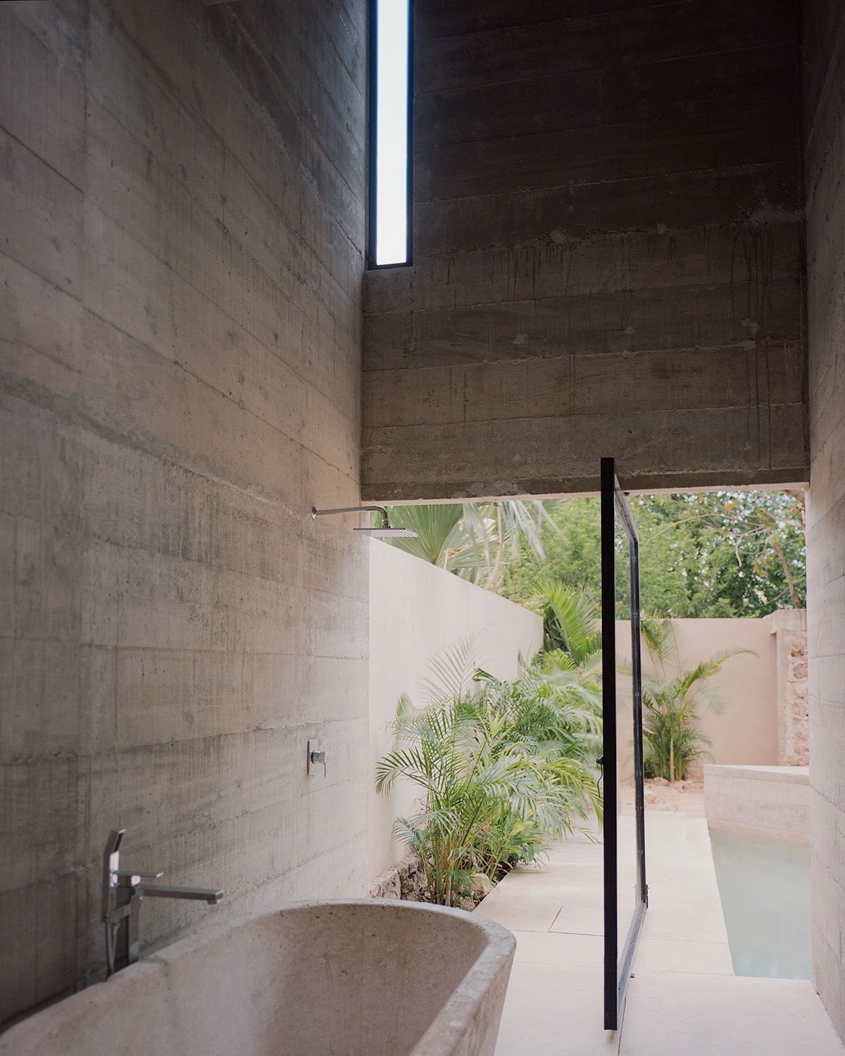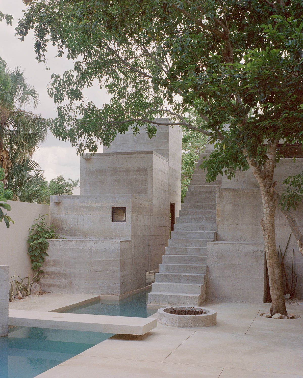[Text as submitted by architect] Casa en los Cocos is located in the south of the historic center of Mérida – Yucatán, in Mexico. The design of the project comes from the proportion of the land itself, 70 mts long x 8 mts wide. The narrow proportion of the land creates a strong vanishing point effect entering the site. The project responds to this perspective crossing from side to side, materializing it with water guiding everywhere through the whole house.