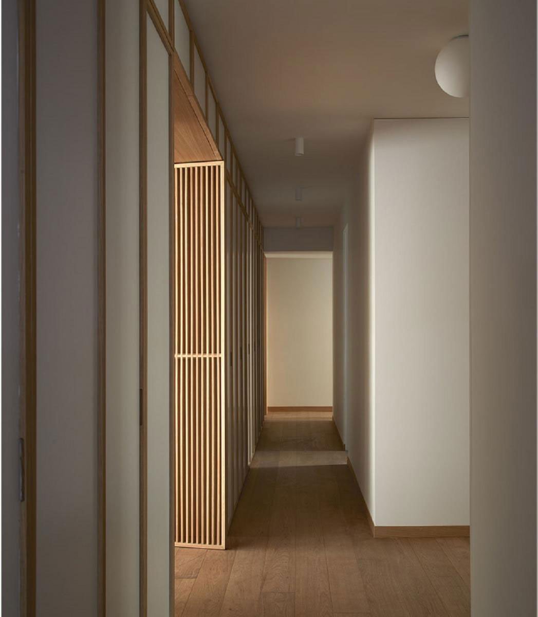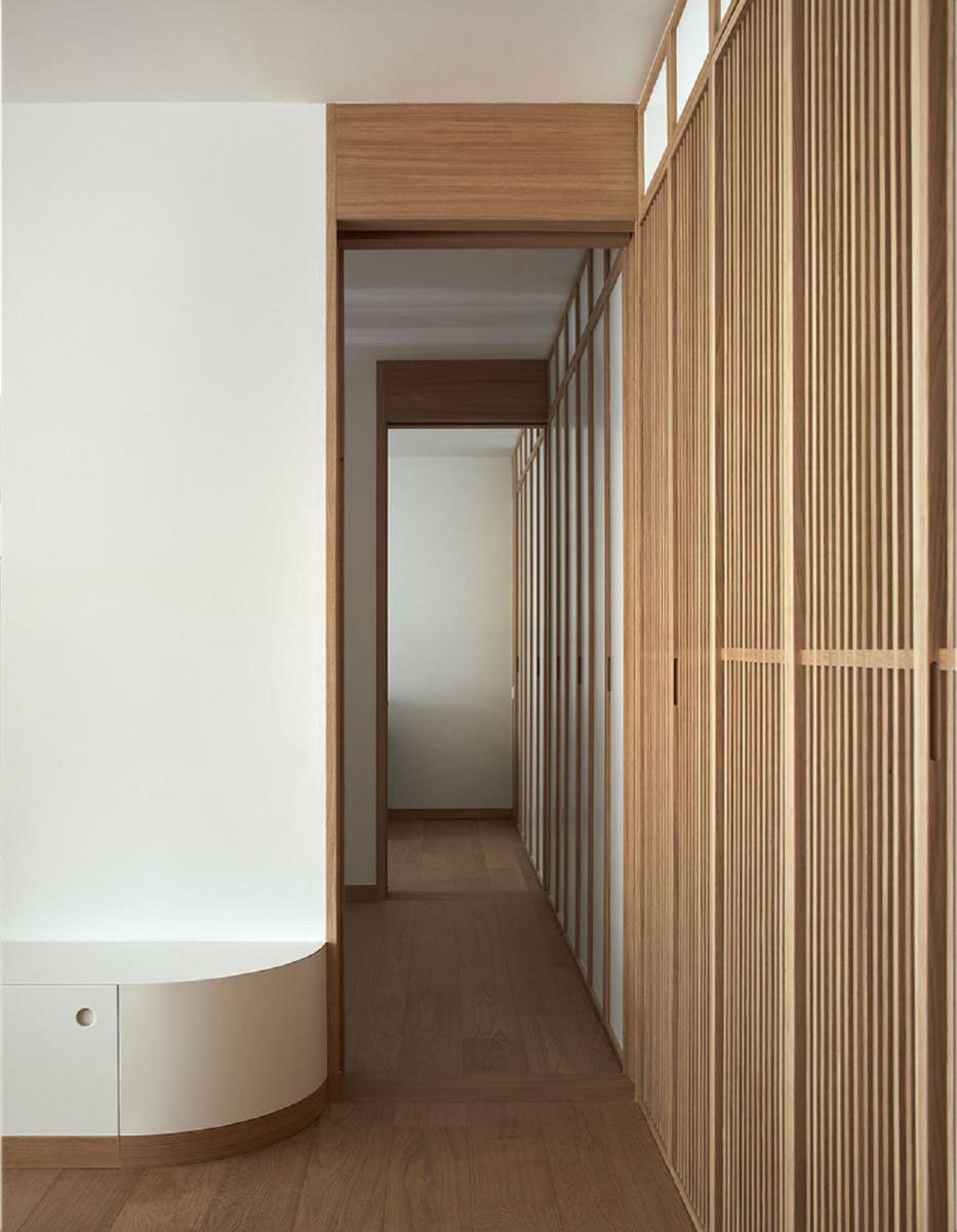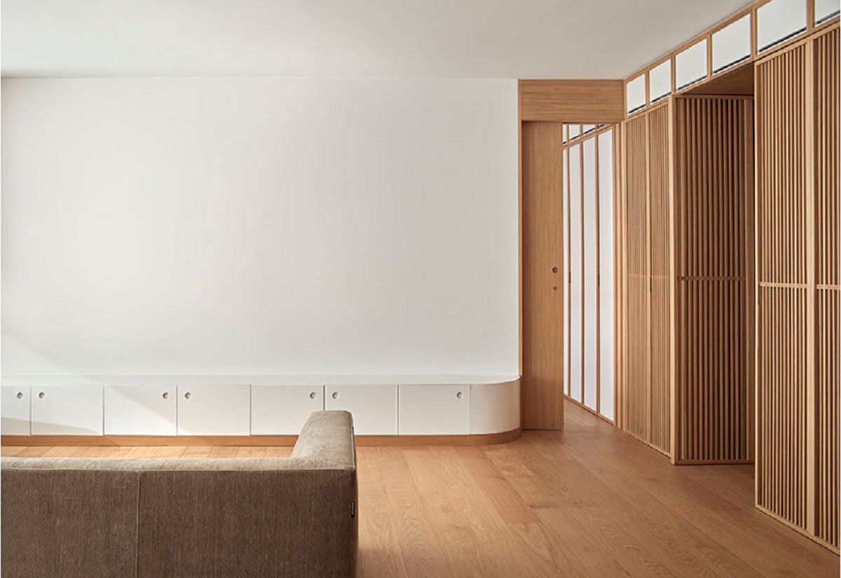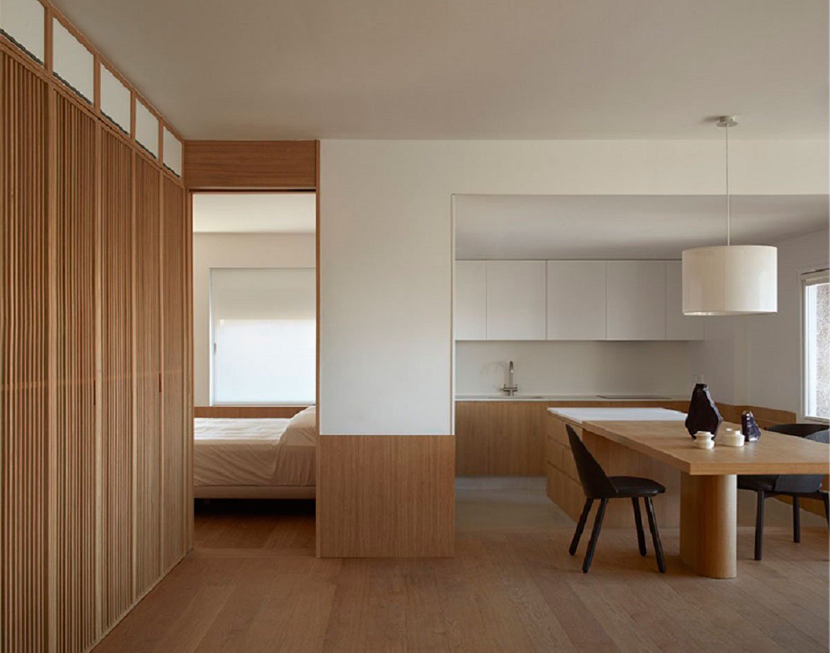 A calm, precise and orderly atmosphere in which light and material interact with the objective of creating a peaceful home.