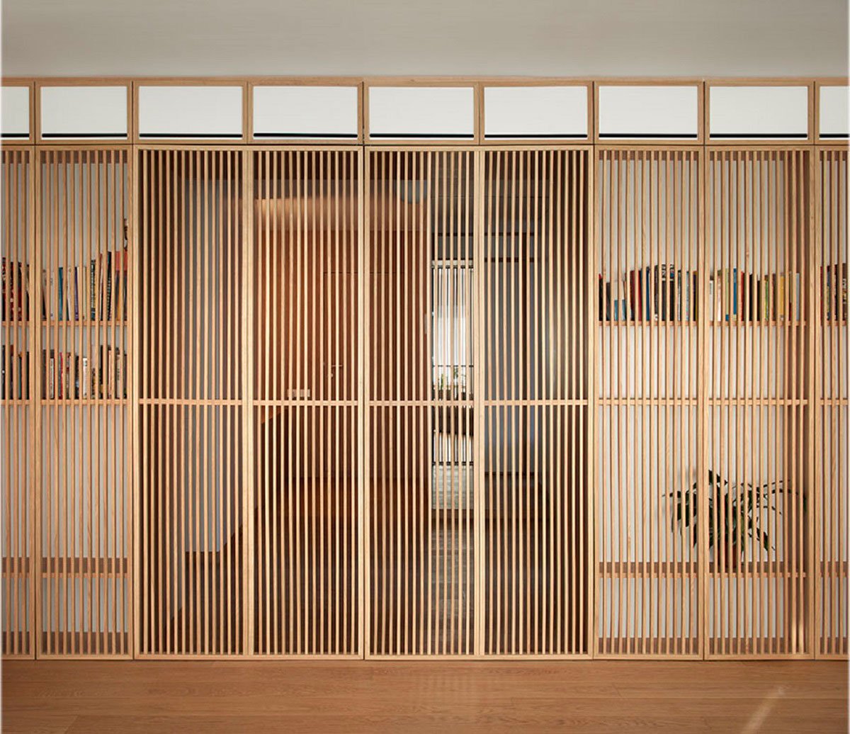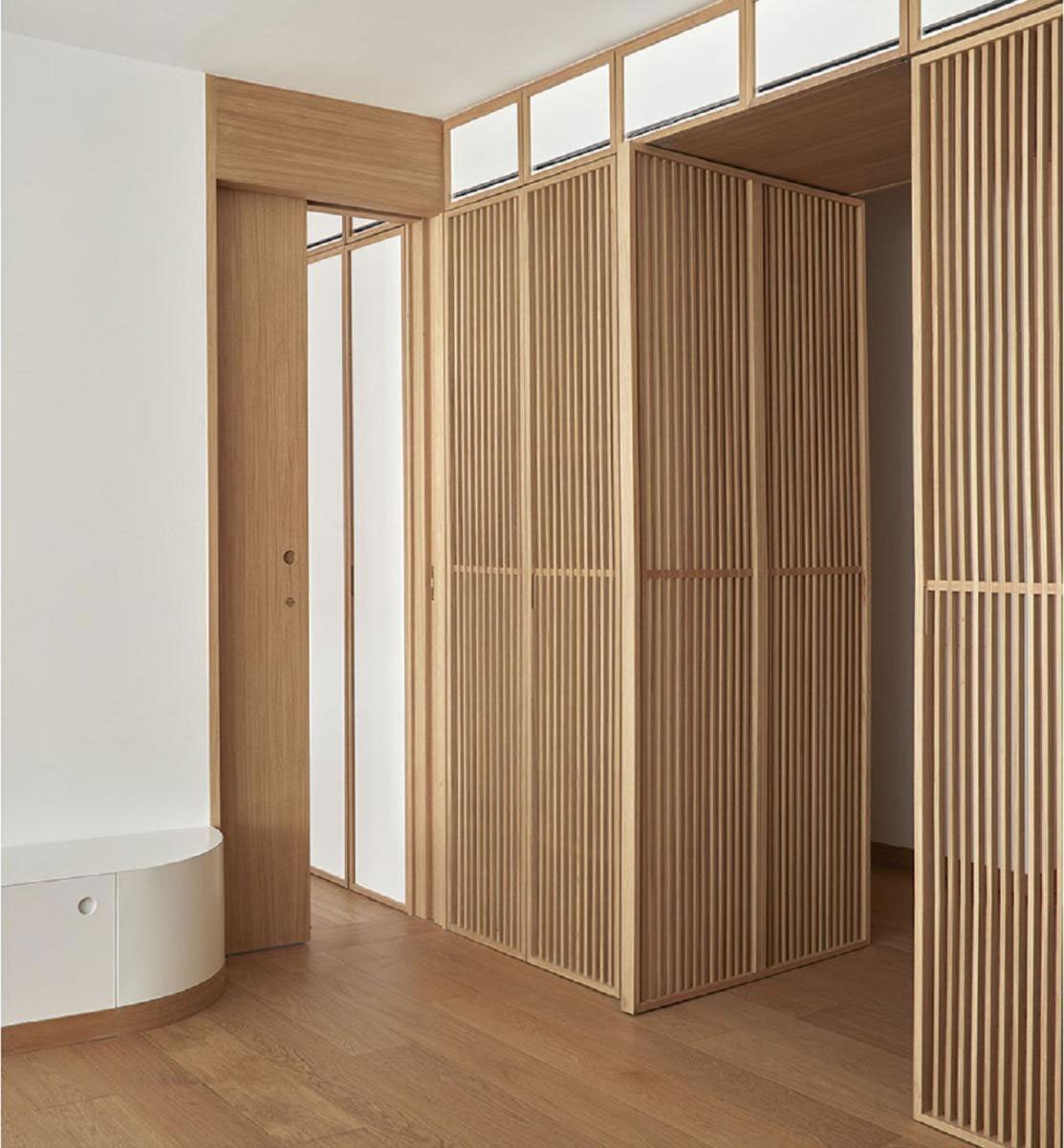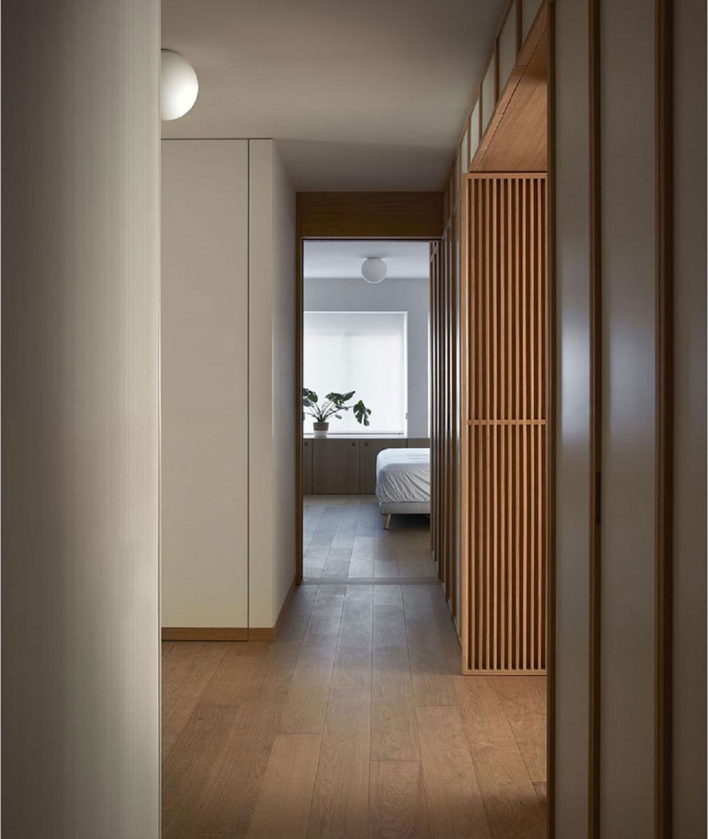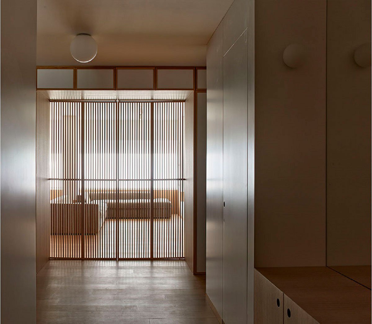 A calm, precise and orderly atmosphere in which light and material interact with the objective of creating a peaceful home.