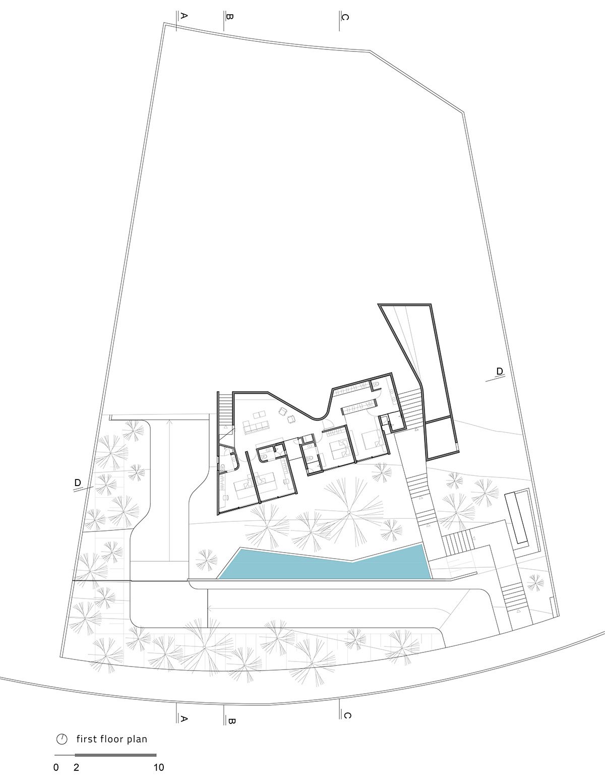 The site has a steep slope terrain and the program in the house requested was relatively small concerning the site area.