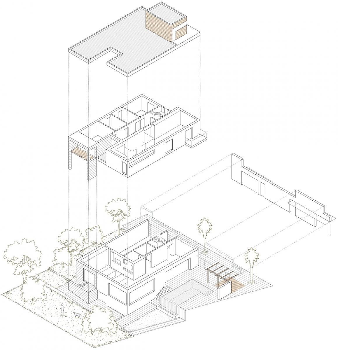 A different activity is set for each space. The day program is developed in the lower level and the night one, in the second level. Otherwise, the living room and the main room are set in the south part, meanwhile, the north part takes in supporting spaces such as a garage, pantry, bathrooms and guests’ bedrooms.