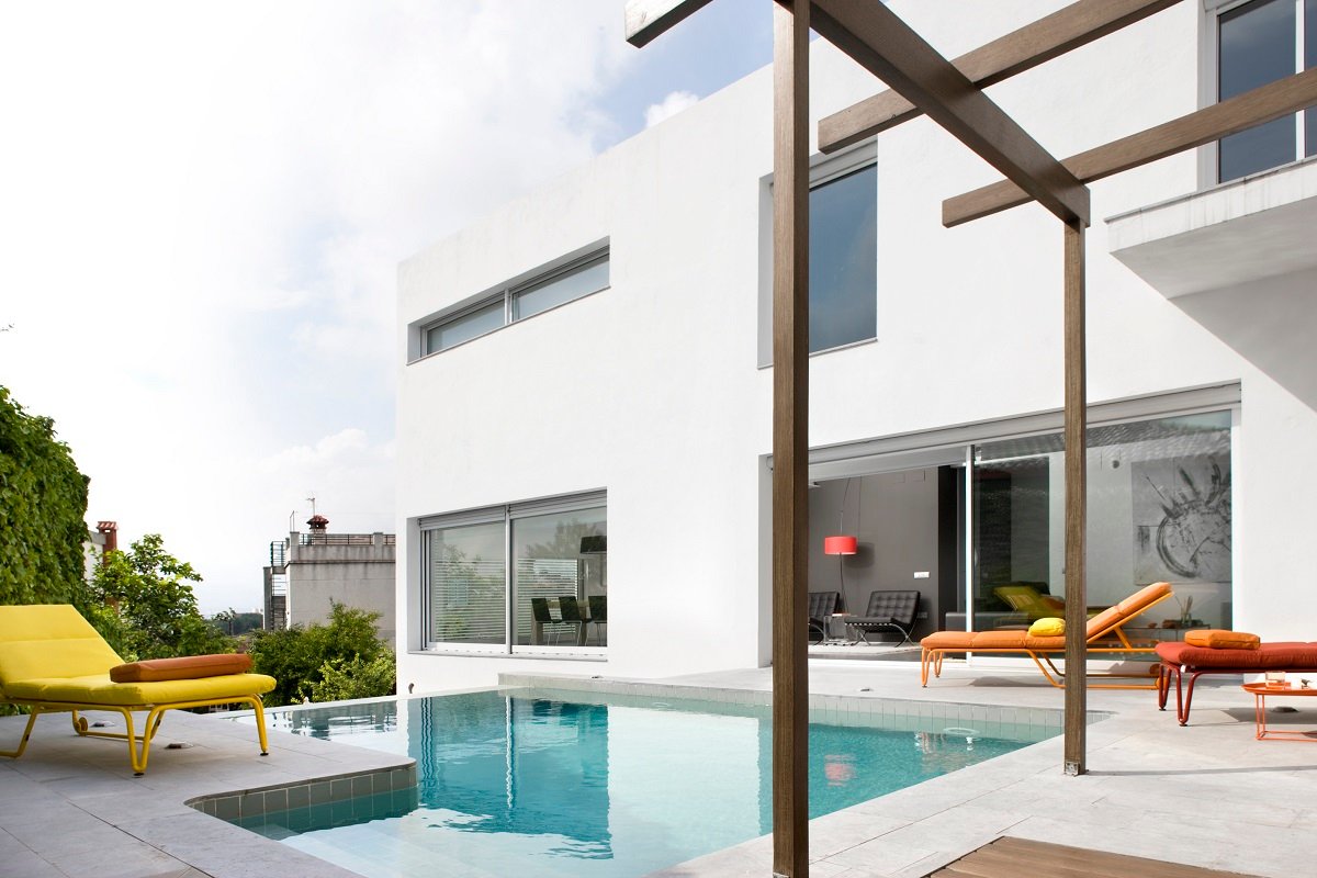 It is a search to create an illuminated dwelling, with a united style and a minimalist decoration. To solve the illumination there is white the predominant colour in the whole building, which strengthens a space sensation, as well as large windows open to the south which on the main floor permits the relation between the pool and the living room.