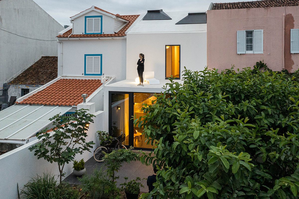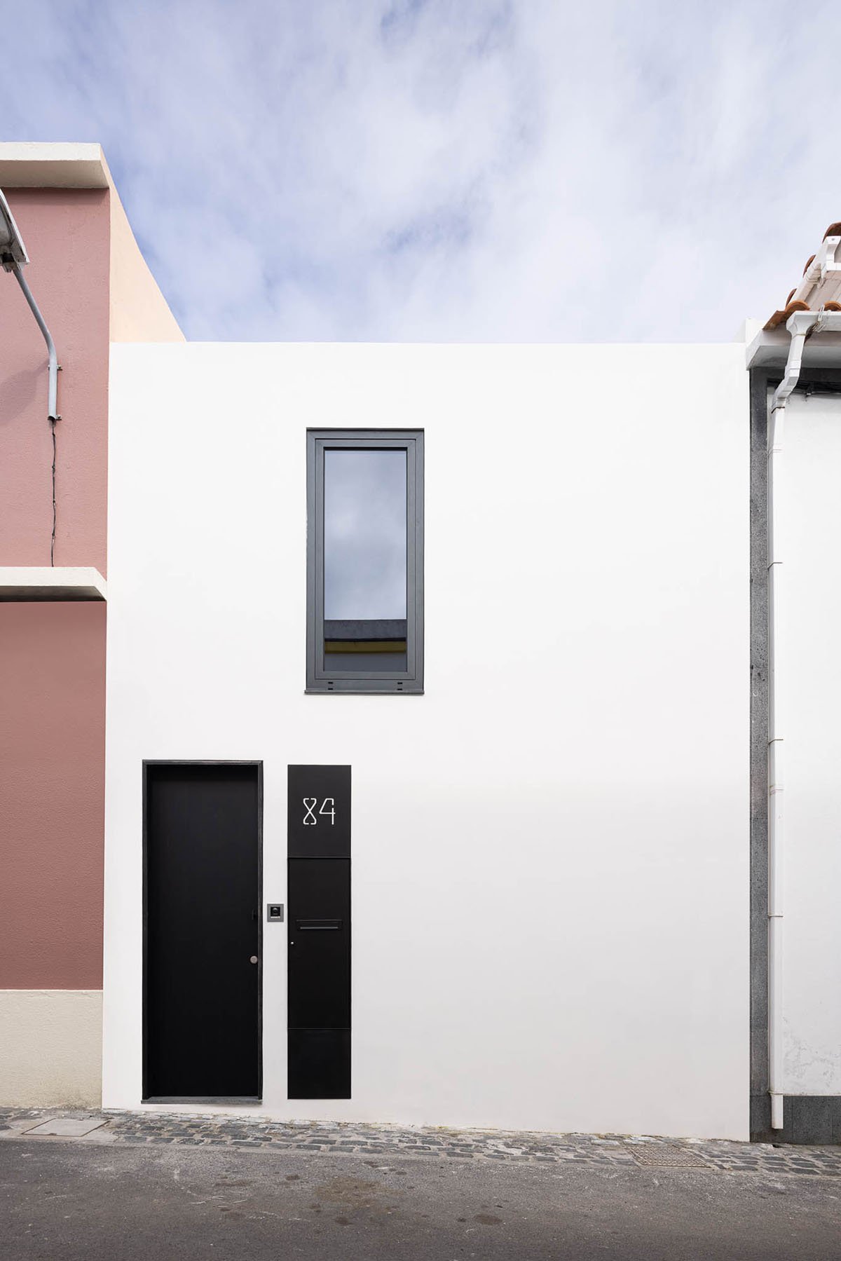 [Text as submitted by architect] In a consolidated urban mesh, at the center of Ponta Delgada, the approach answers to a program of an extremely small single family house with two flights, where the lower floor accommodates a single social area, while the two small bedrooms are located at the upper floor. With only 4.20 meters at the front, with no space for urban pediatrician circulation space, the facade results in the child’s imaginary of a house drawing… one door and one window.