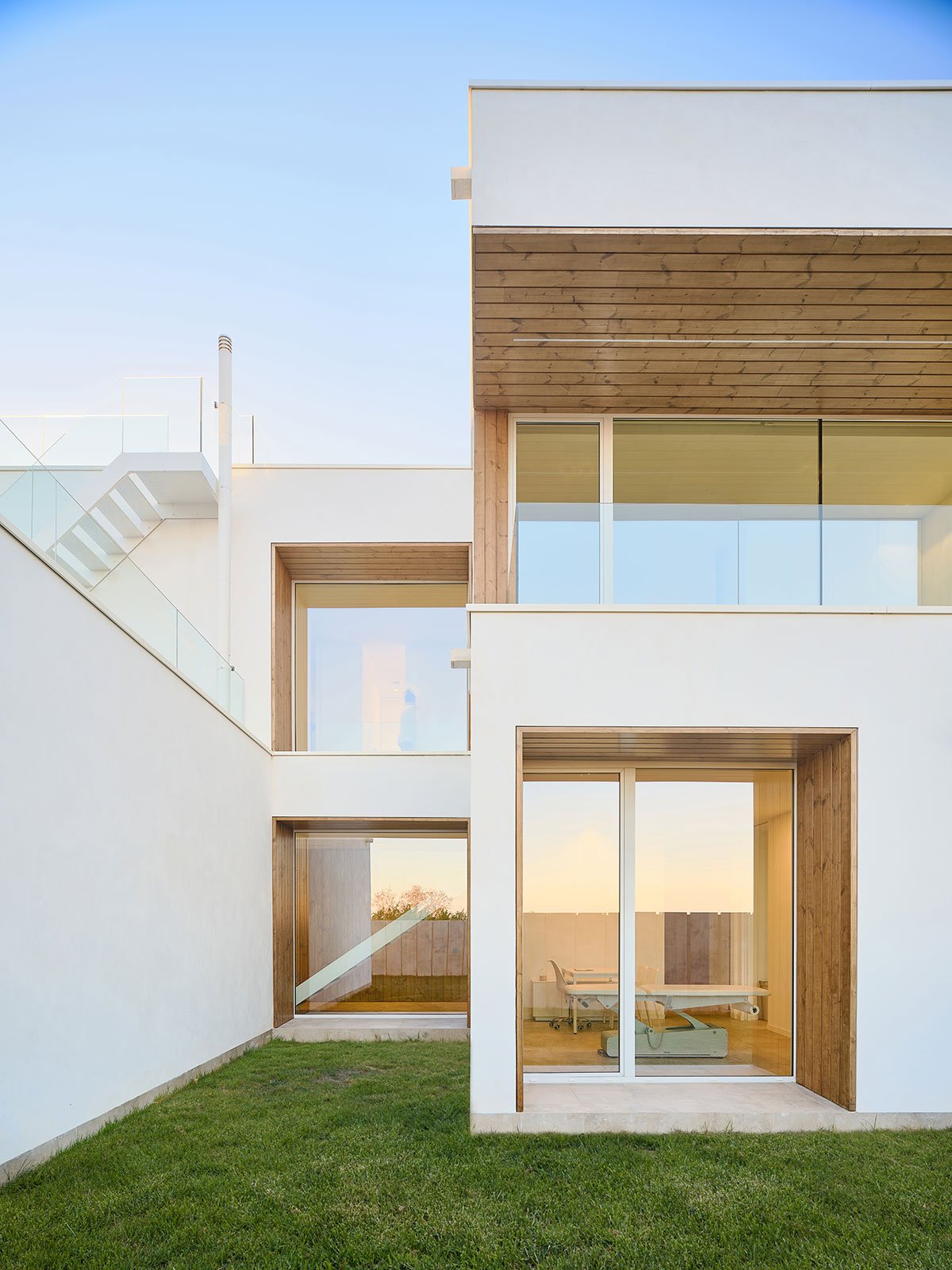 The plot where the Casa ON is located is situated at the southernmost edge of the urbanization, in an area at the beginning of one of the streets, which initially had two undeveloped plots, noticeably detached from the residential fabric and visually well connected to the surrounding environment. Especially free from neighbouring buildings, the plot in question for this project has three of its four sides connected to an undeveloped green or agriculturally cultivated area, mostly oriented southeast / southwest. In contrast, the trapezoidal shape of the land and urban planning regulations limit the area where the building can be placed.