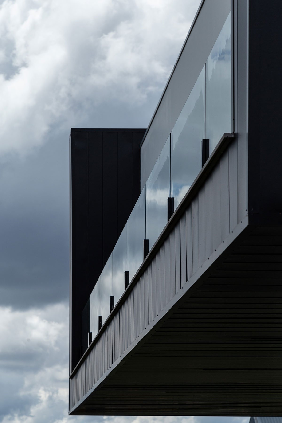 Covered in vertical sheets of aluminum, sometimes perforated and sometimes plated, which serve to protect the vertical masonry panels and as a muxarabi for the upper garden terrace. This hollow screen creates a veil of privacy for residents as well as filtering light and protecting from the wind. It also hides the view of bathroom openings. The cladding evokes the industrial vocation of the city, a metal-mechanical hub.
