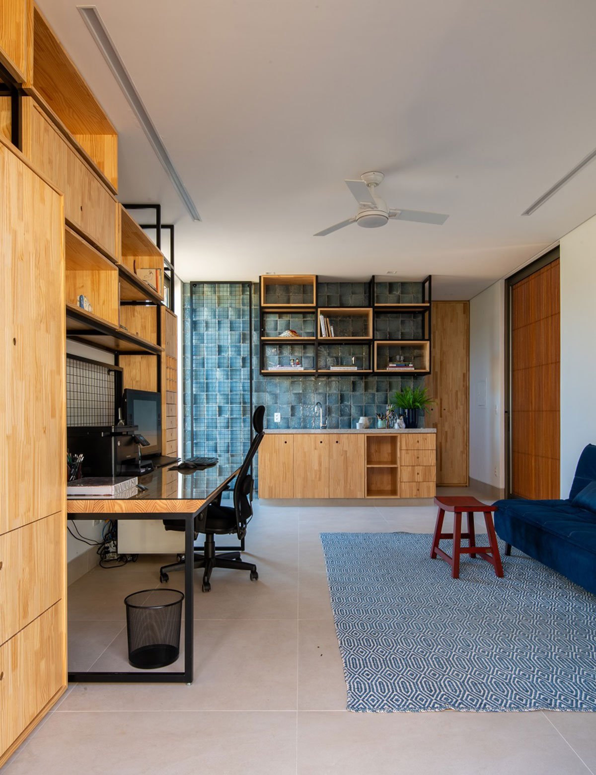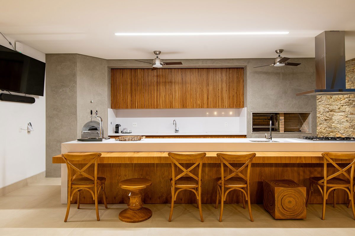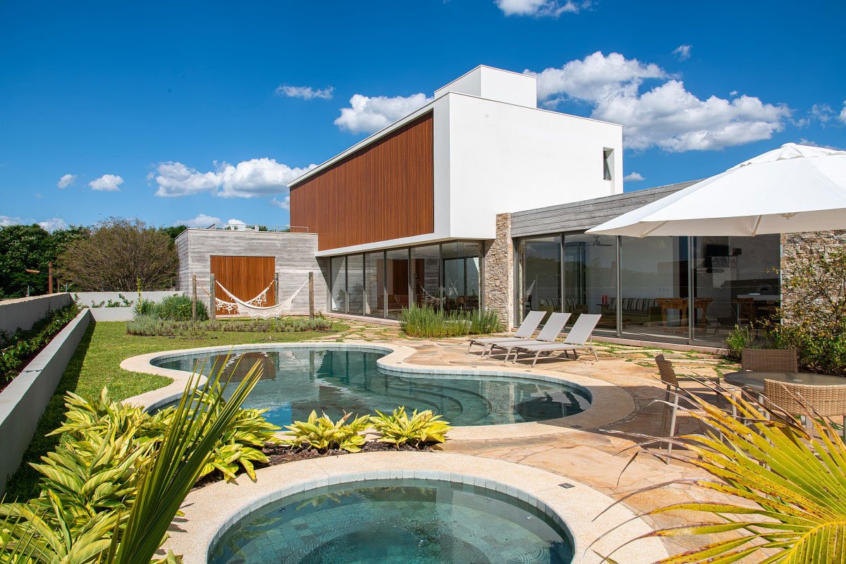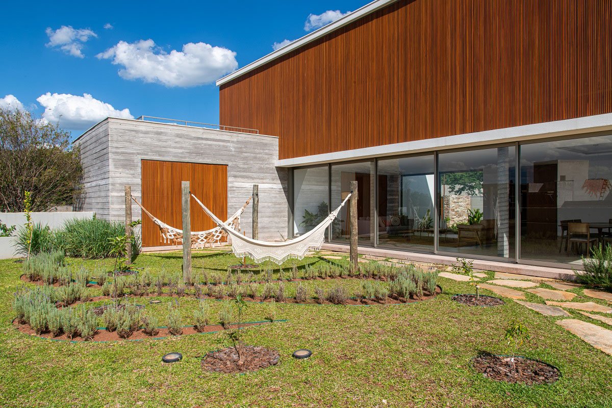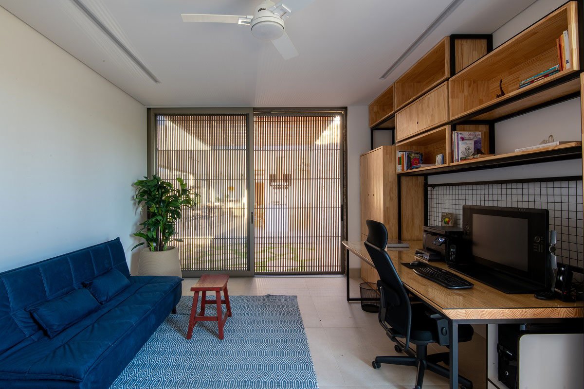 On the second floor are the other rooms camouflaged by brises, in addition to an intimate room, a small office and a balcony over the volume of the couple's bedroom taking advantage of the beautiful view of the surroundings. Once again, privacy is present.