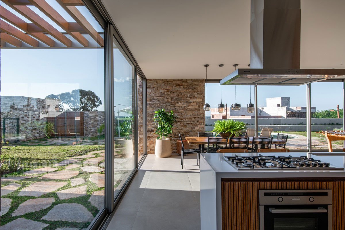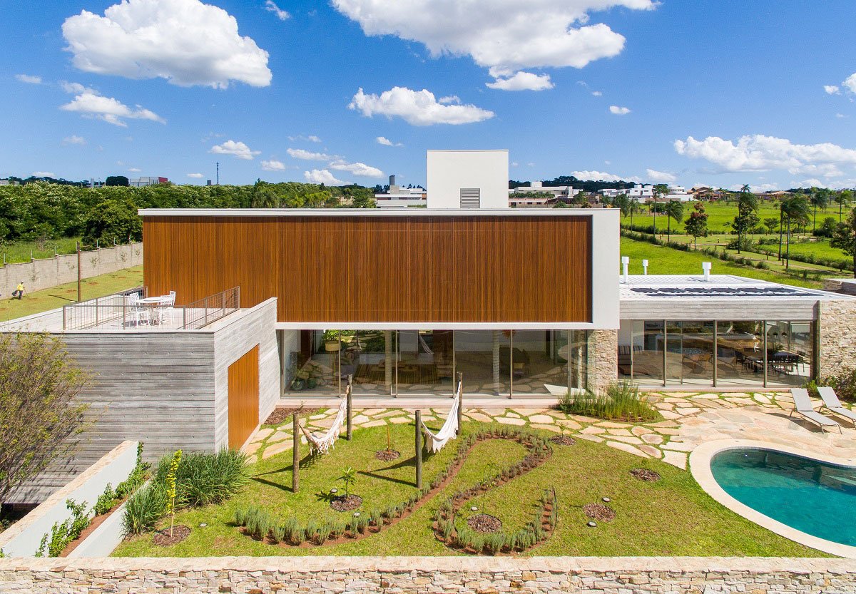 [Text as submitted by the Architects] The house was designed from clear volumes and natural materials, always seeking cross ventilation, natural lighting and a delicate fit into the building site.