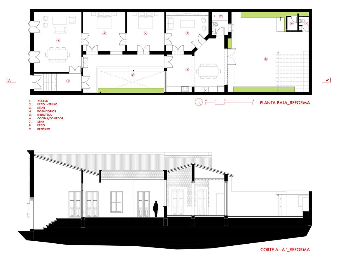 [Text as submitted by the Architects] A large house in the centre of Asunción that has gone through different phases and reforms and that once again will be converted into a home. The assignment requires the integration of some spaces and the improvement of the general conditions of the building without modifying the typology. This is done very simply: removing the surplus constructions accumulated in previous renovations, favouring the entry of light and natural ventilation, repairing the construction where necessary and reusing the materials from the demolitions where possible.