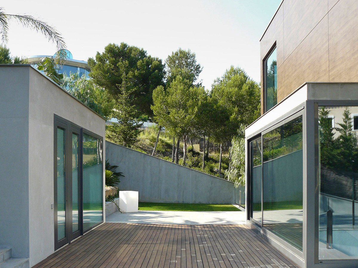 The building has been built according to passive architecture criteria: different spaces are pointed to the surrounding views, and the light control is worked in detail by openings, corbels, solar protection elements and skylights. We also use a buried tank to take advantage of the rainwater for irrigation. At the same time, a significant part of the vegetation in the Mediterranean and local means a big energy and maintenance savings. Every building space has the chance to cross ventilation, considering that all rooms have openings to both the exterior facade and patio.
