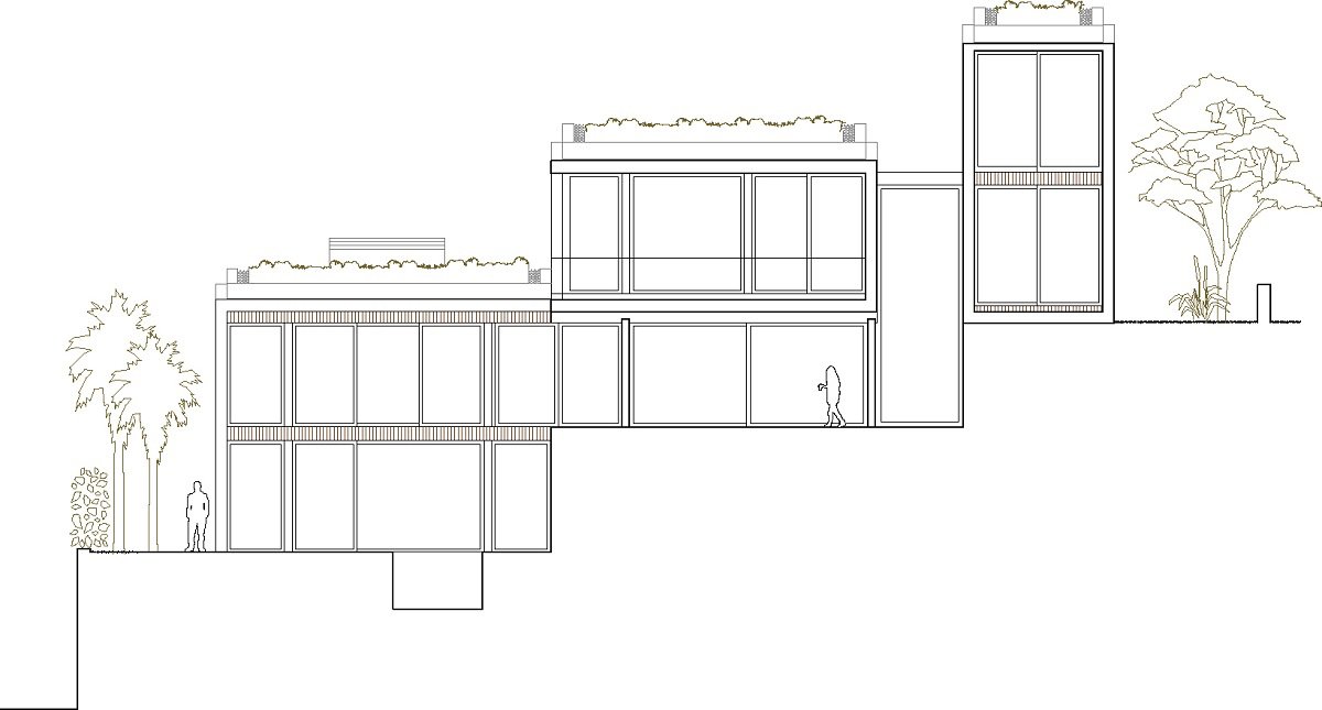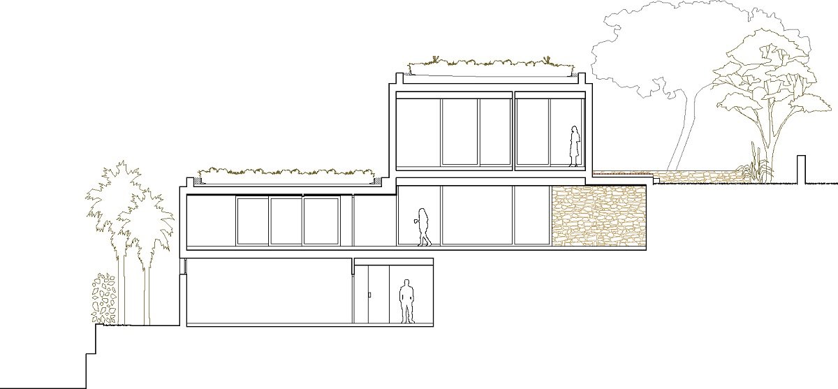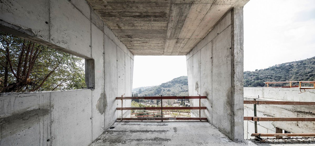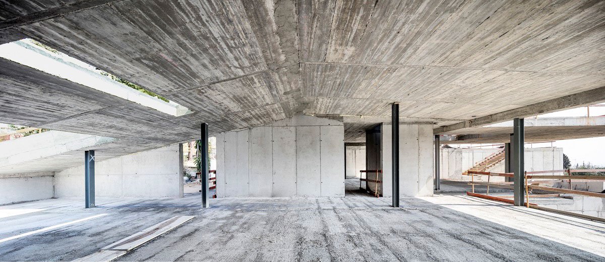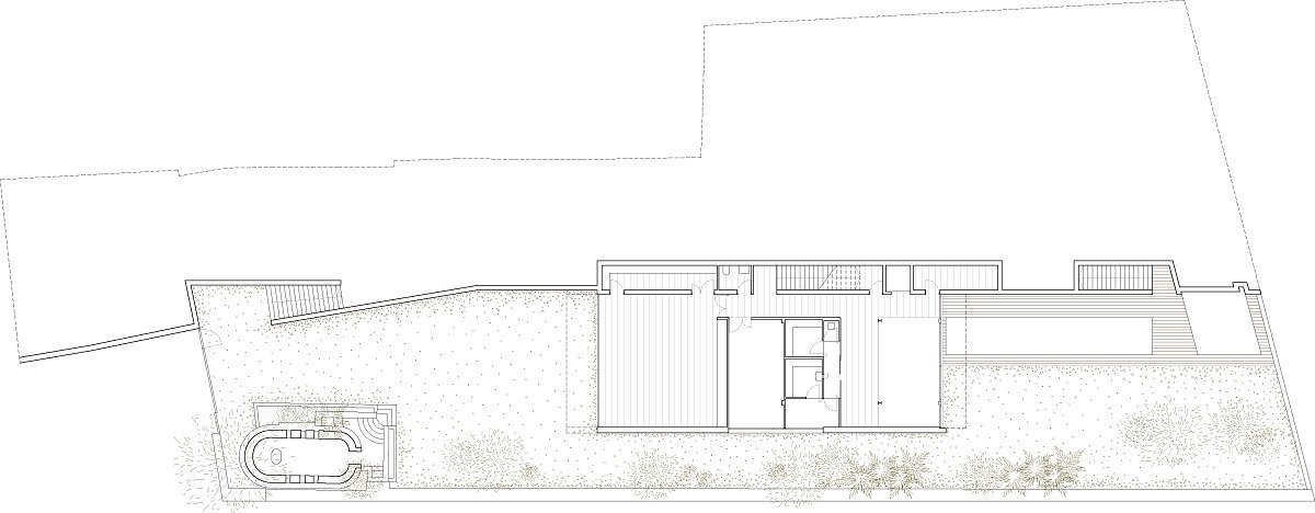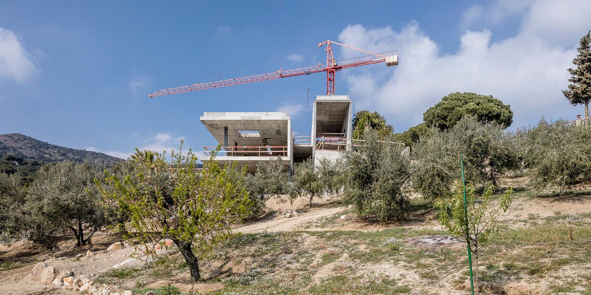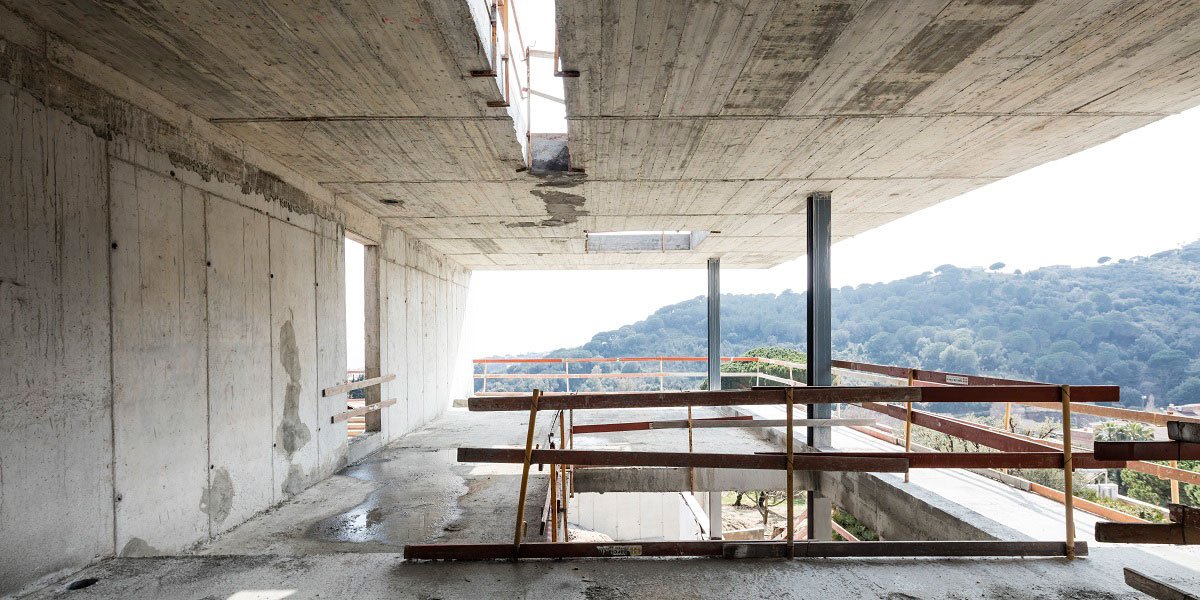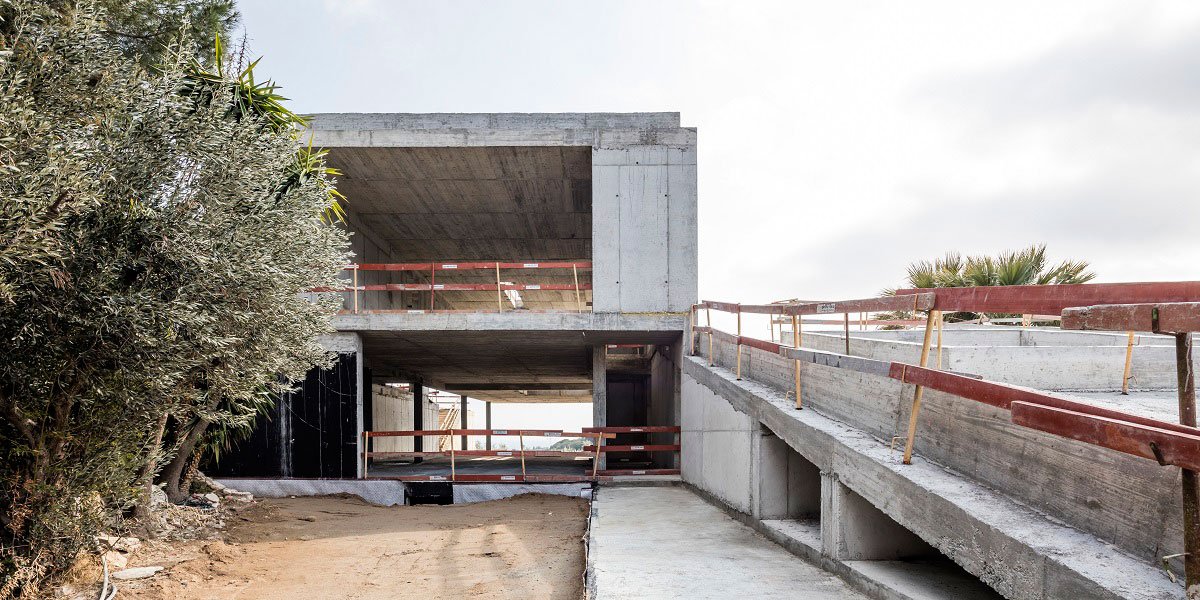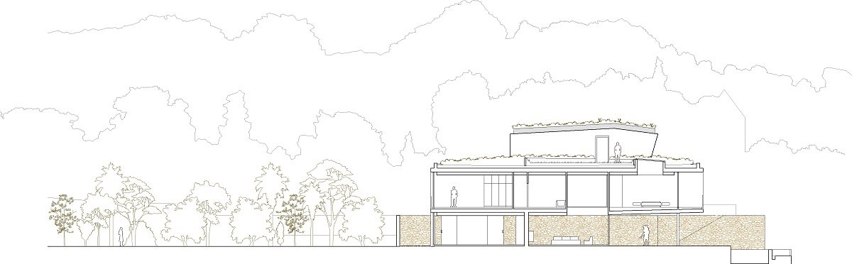 The housing program consists of a living room, dining room, kitchen, rooms, studios, bathrooms, cinema, wellness area, parking for vehicles and spaces for storage, services and facilities; with a constructed surface resulting from 869m2, and therefore, a size more typical of the old stately houses existing in the municipality of Alella than of the houses built in the last half-century. Due to the dimensions of the program, a strategy of implementation and hybrid landscape integration is included which includes two concepts: harmonization and monumentalization. The harmonization in terms of using the same stone in the area with which the chapel is made to finish pre-existing retaining walls, plant new Mediterranean vegetation in line with the existing one and place wood and stone together with elements of water. And the monumentalization to create a monolithic structure of reinforced concrete, punctually supported by steel pillars and lime mortar lined with the will to be a Mediterranean sculpture that emerges from a natural field that maintains its historical roots.