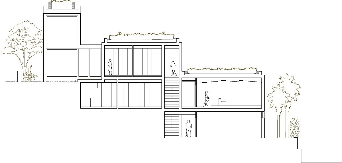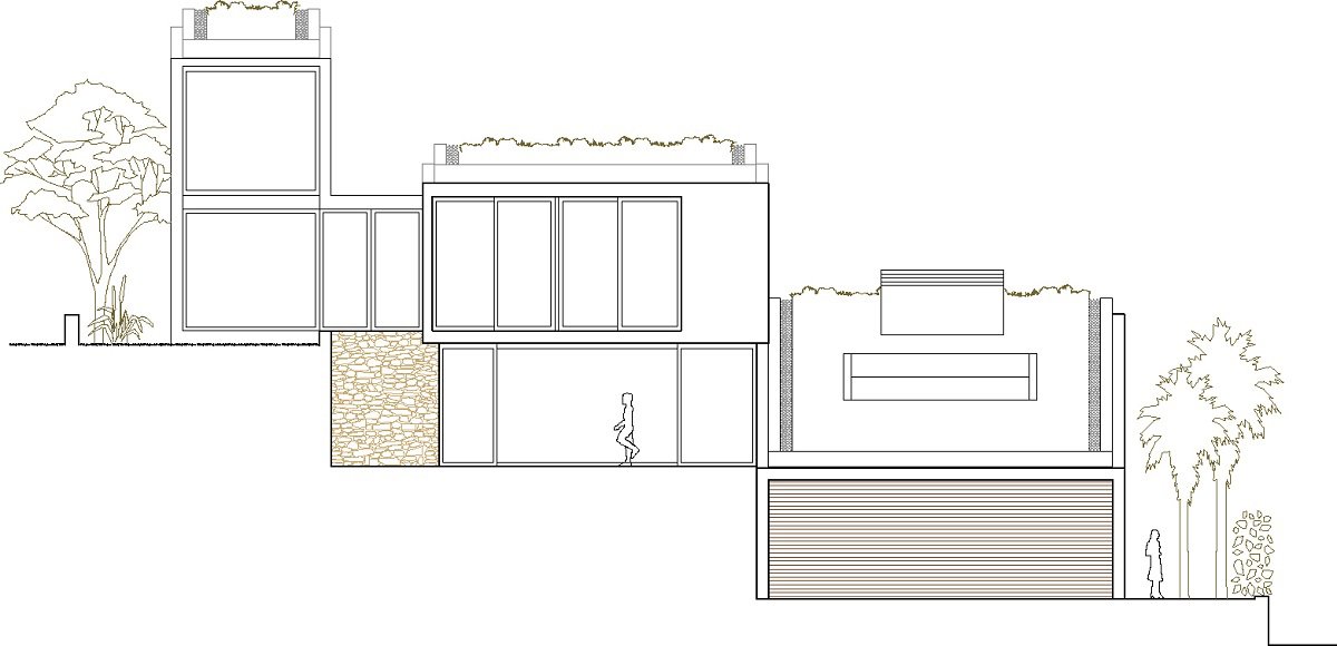 The housing lot is located in an enclave between a fragmented and consolidated area with recently built buildings and another area occupied by a historical estate of the ones described above. So that it transitions between a landscape before the 20th century and another one of the present century. In its initial state, the lot presents a composition more typical of the historical landscape than fragmented. Being stabilized horizontally by means of three longitudinal containment walls – north/south direction – of three meters of height each, that structure the terrain on three terraces. It also contains an old dry stone chapel and a series of vegetation and consolidated own trees, with an interest in being conserved.