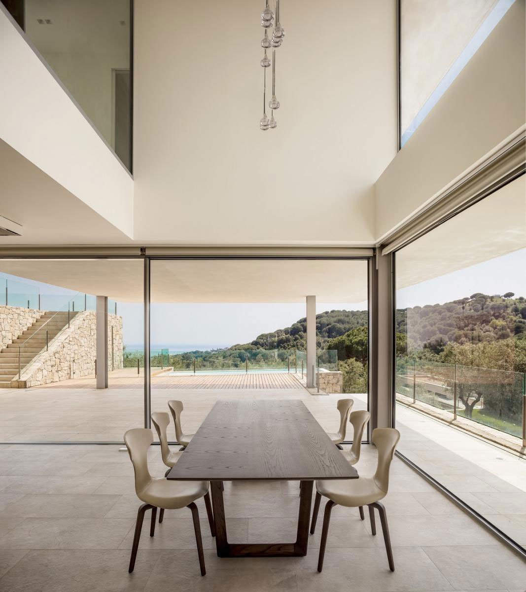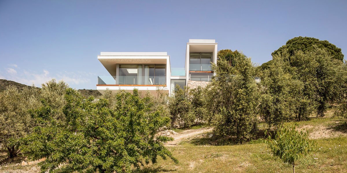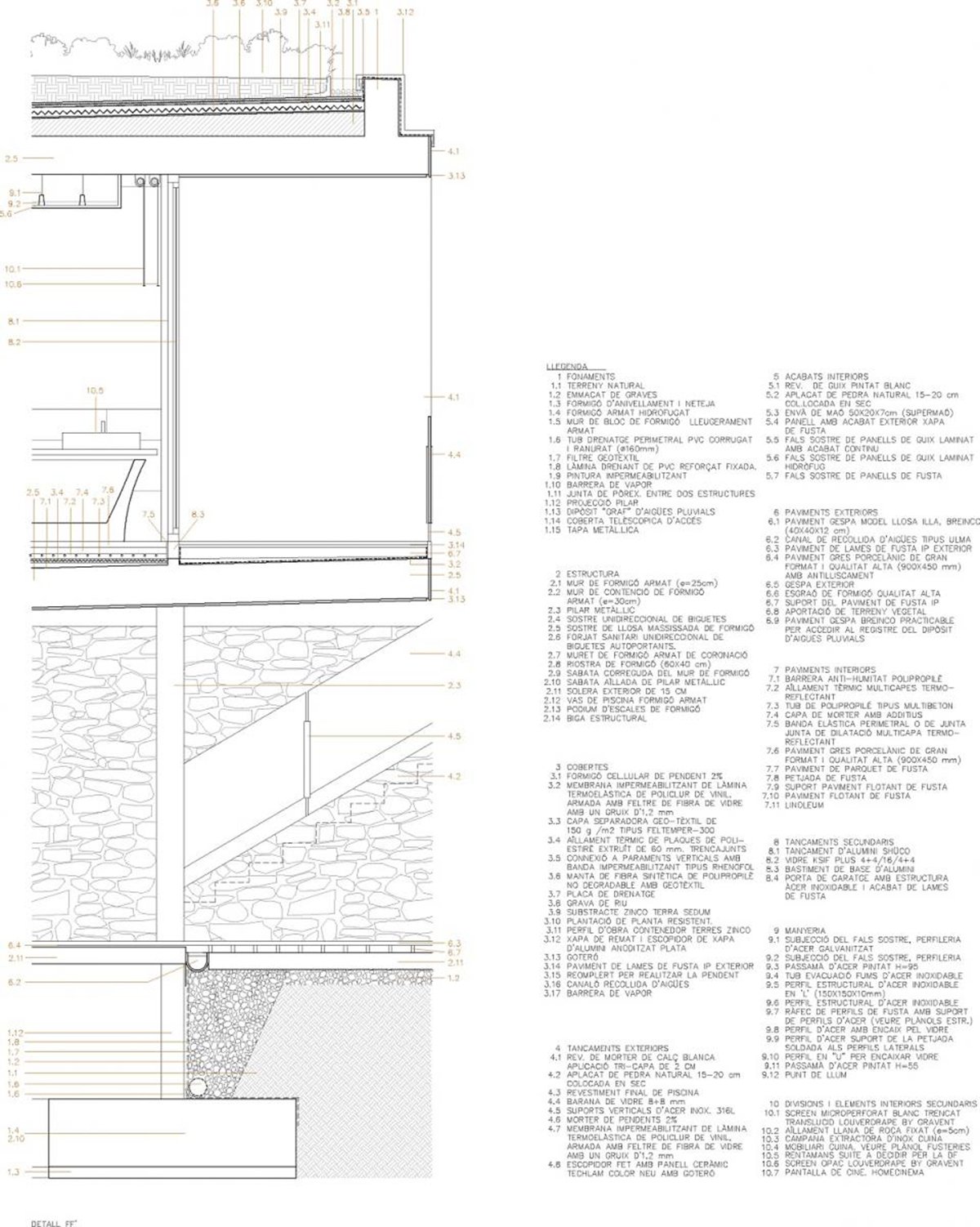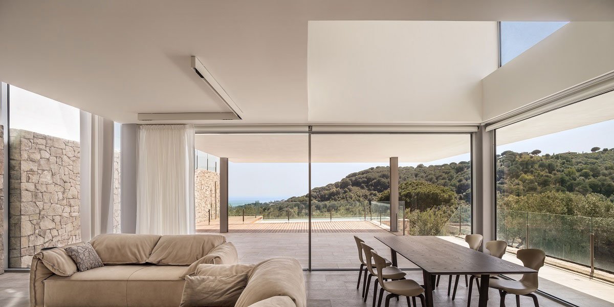 The housing structure itself provides solutions of passive solar architecture, through porches of different dimensions and pergolas of wooden beams on the southern facade. Rainwater from landscaped covers is collected in buried deposits and reused for irrigation of the unbuilt garden area. In addition, the house integrates a system of air conditioning through aerothermal technology and double-flow ventilation, which, together with the natural thermal insulation of the covers, the home automation installation, the construction system itself and the exhaustive study of the composition of the different skins of the building; they have made this house to have obtained an energy certification A.